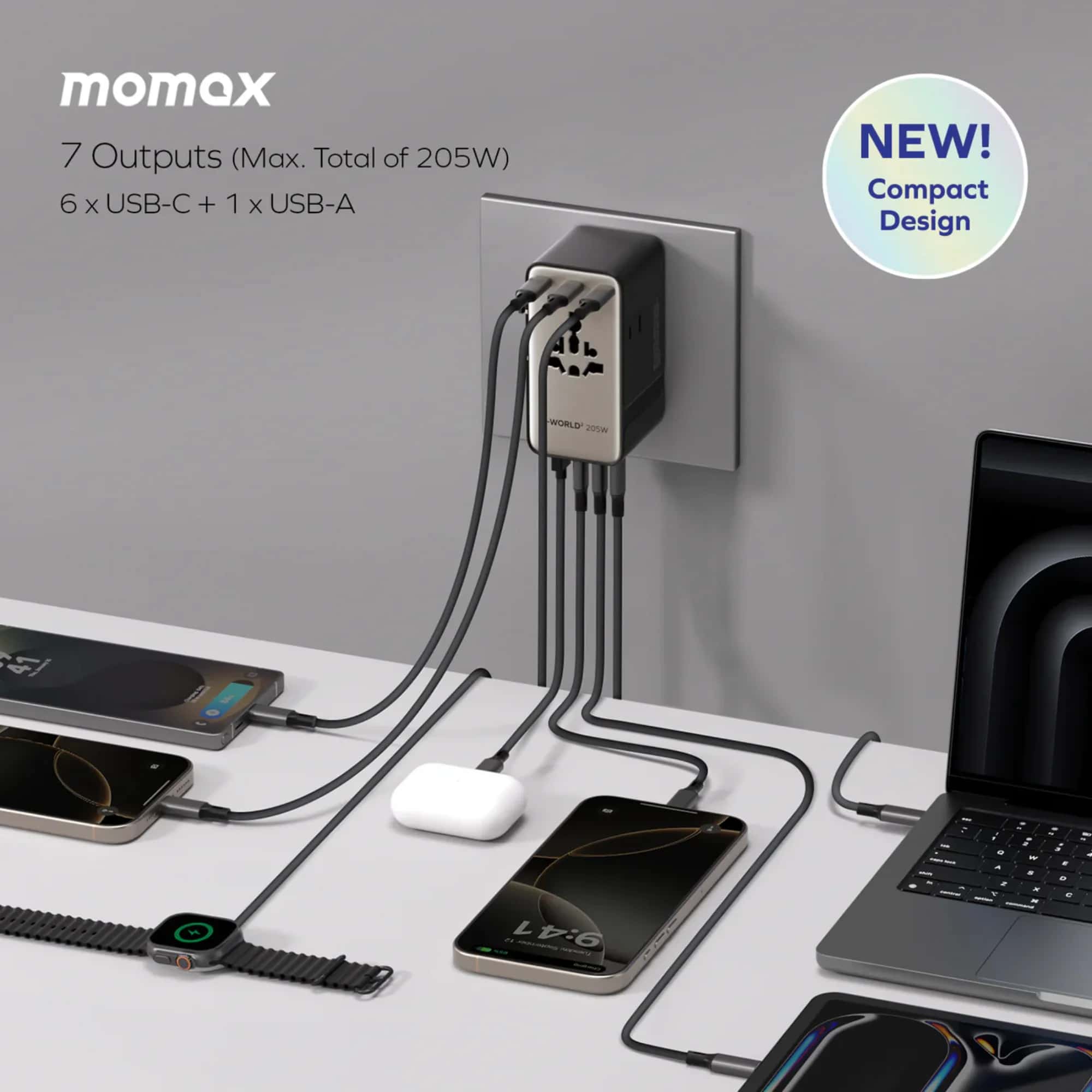 - 7 + 2 charging design delivers up to 140W from a single port with a total power of 205W