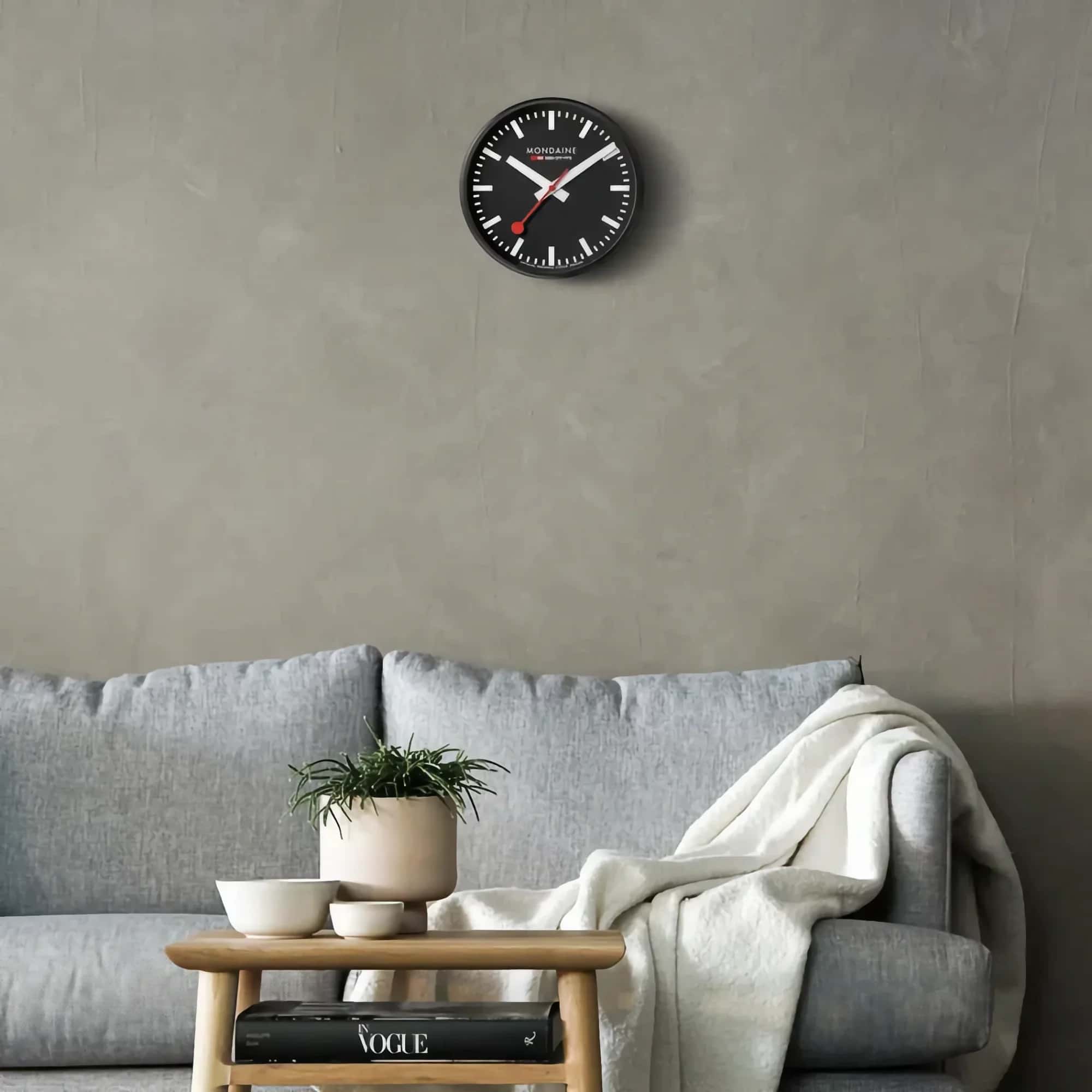 In its aluminum version, the Mondaine Official Swiss Railways Clock impresses with its puristic and simple design. And yet this wall clock adorns every room with its 40 cm large, unmistakable face and the distinctive red seconds hand.