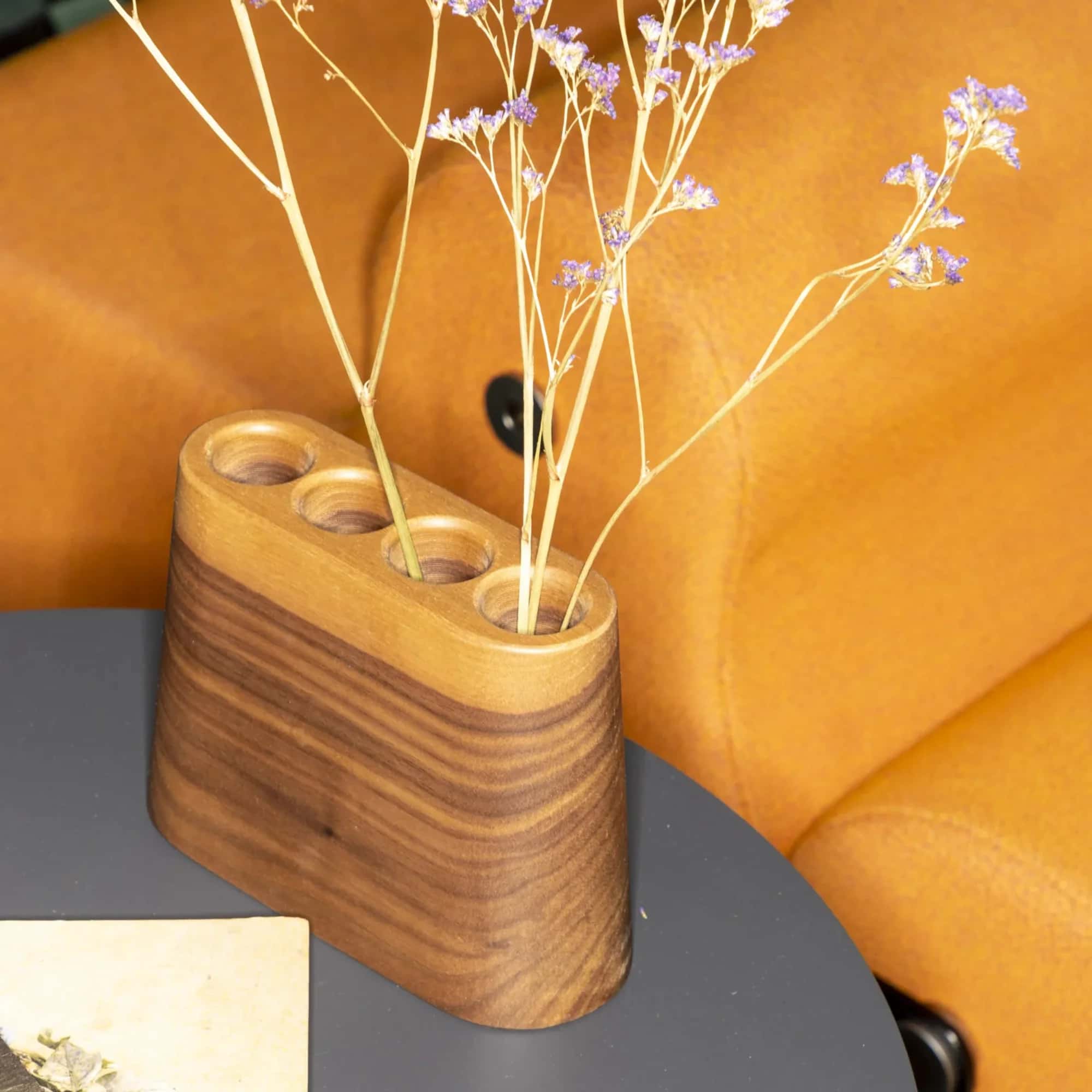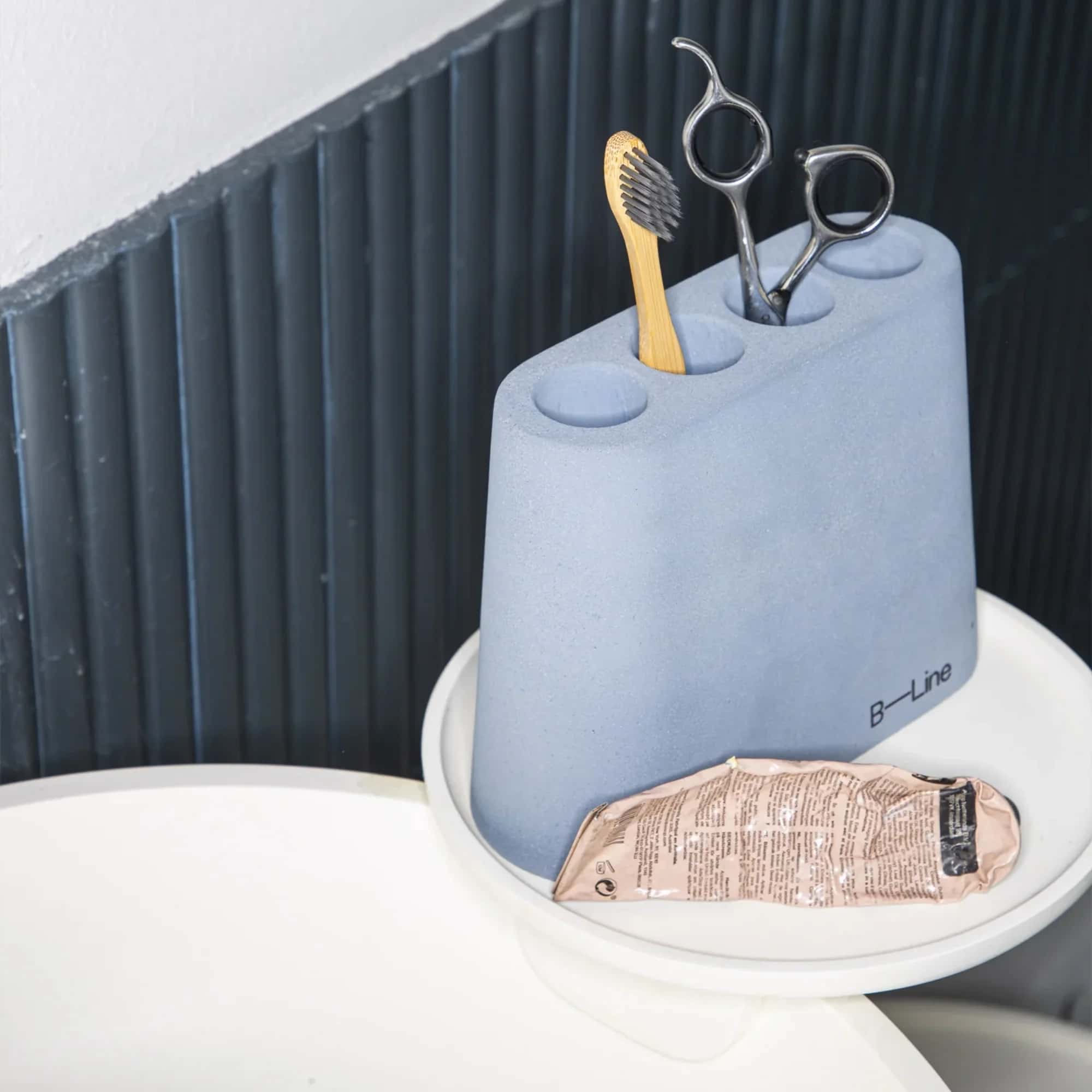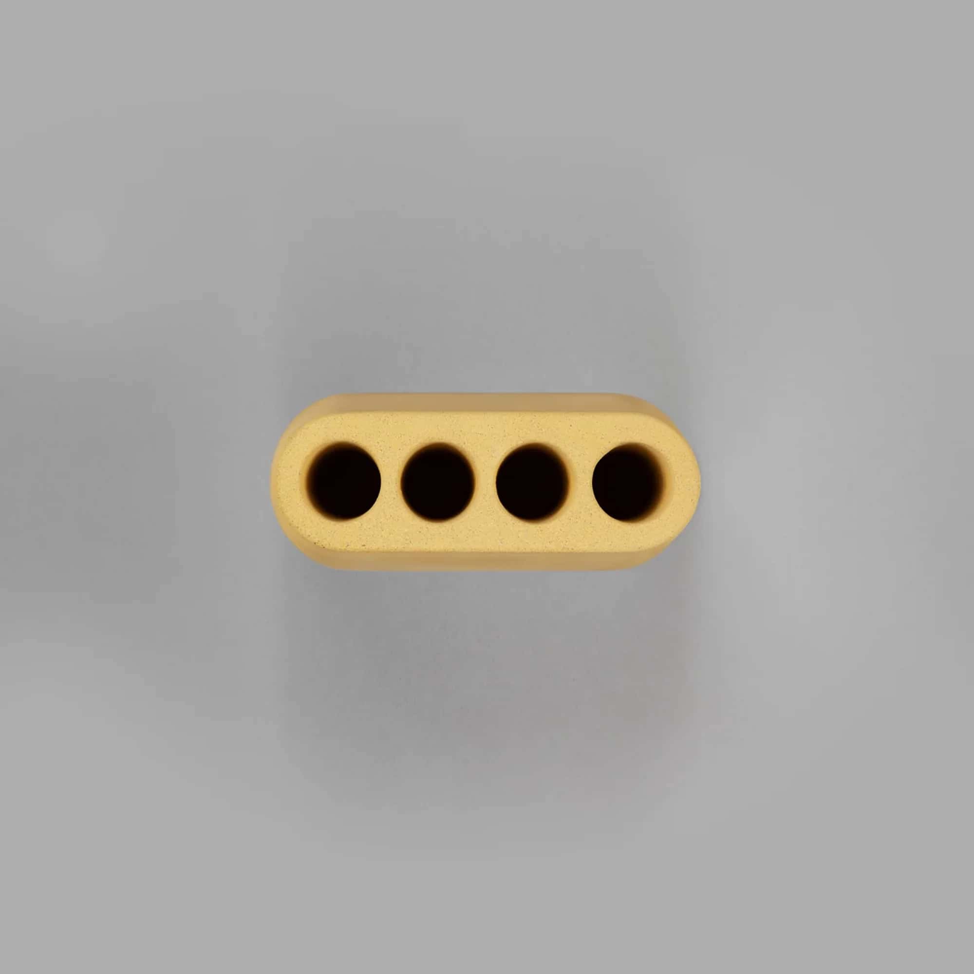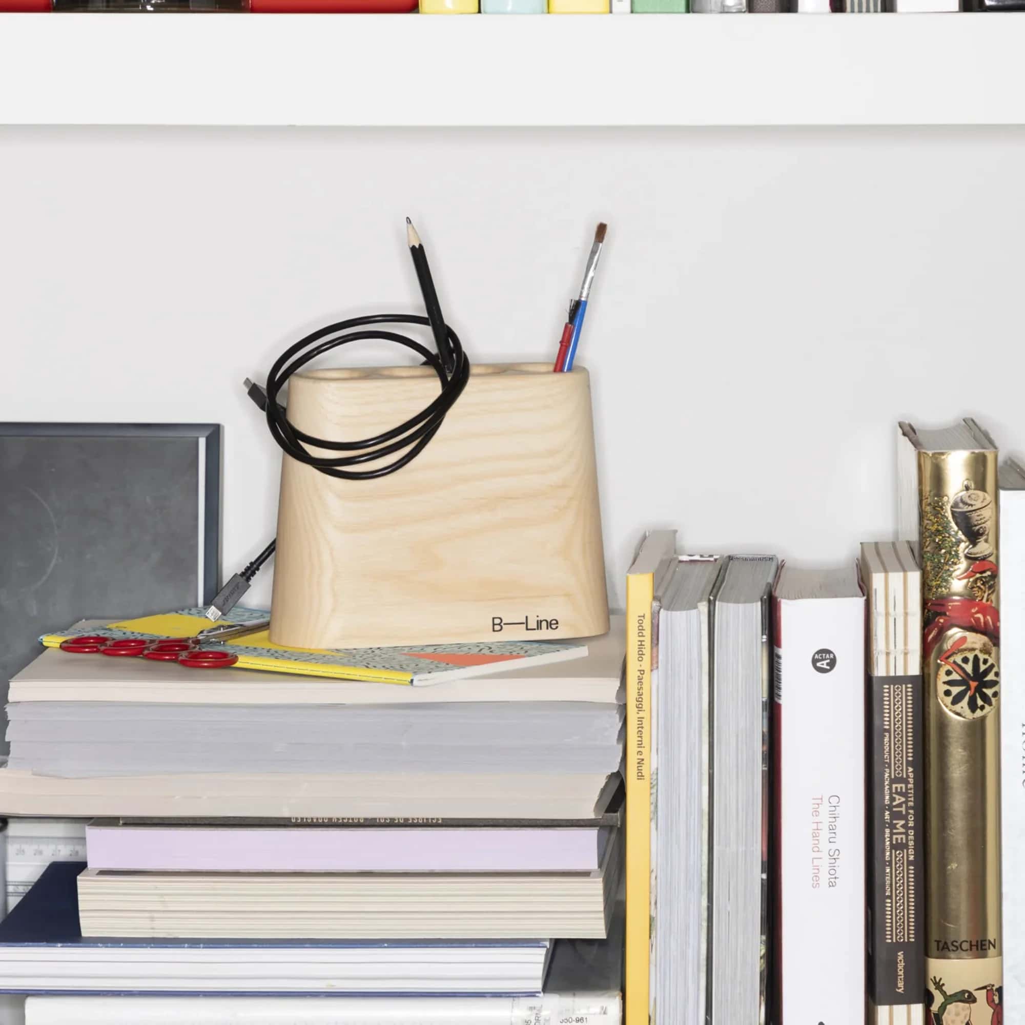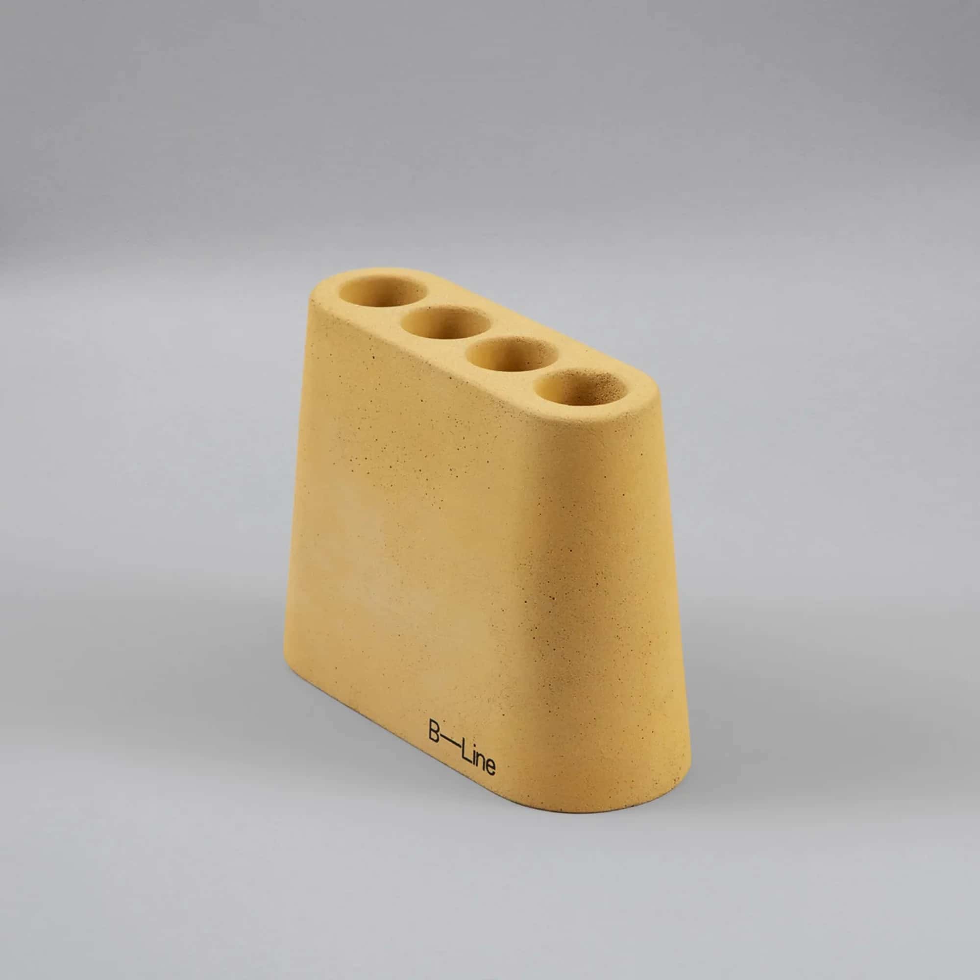 Aki Jr, the junior version of Aki, retains exactly the same design. In this mini-variant, it becomes a practical pen stand/object holder made in two different materials: coloured-in-the-mass concrete and solid wood.