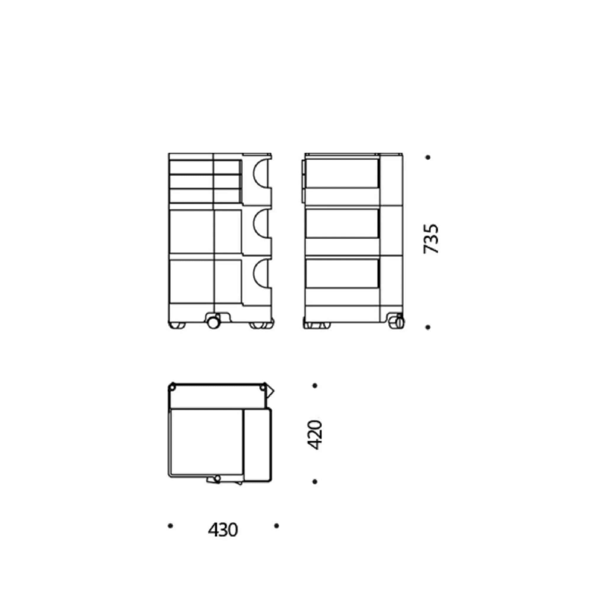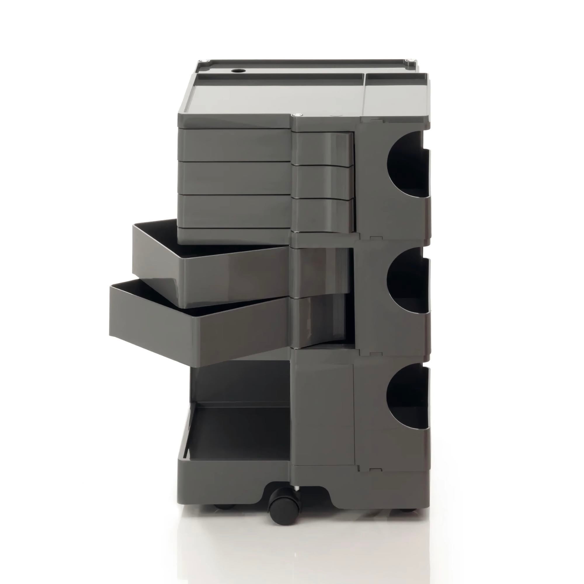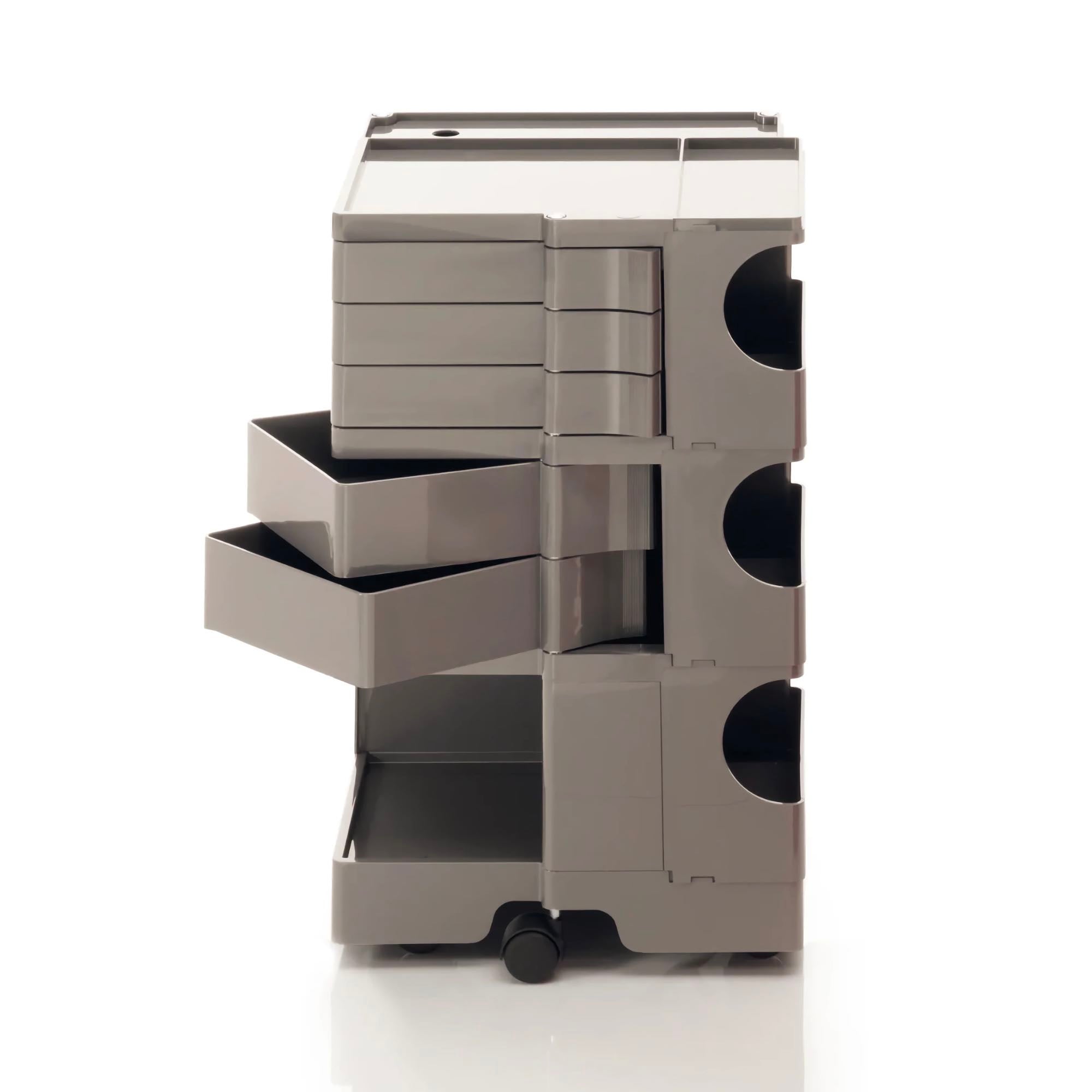 Boby is a trolley case and storage system that made history, characterized by its high versatility. Designed to ensure ease of vertical modularity, allows to obtain custom capacities. The structure and the drawers are made of injection-molded ABS, while the wheels are made of polypropylene. First prize at SMAU in 1971. Part of the permanent collection of the Museum of Modern Art in New York and the "Triennale" in Milan.