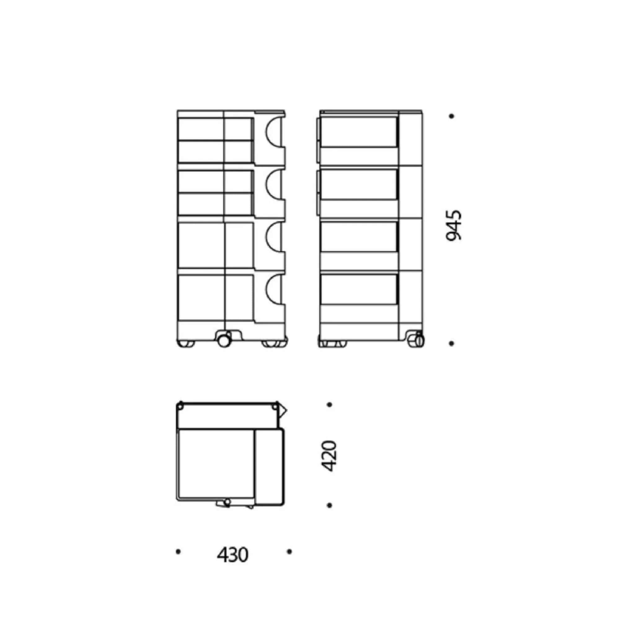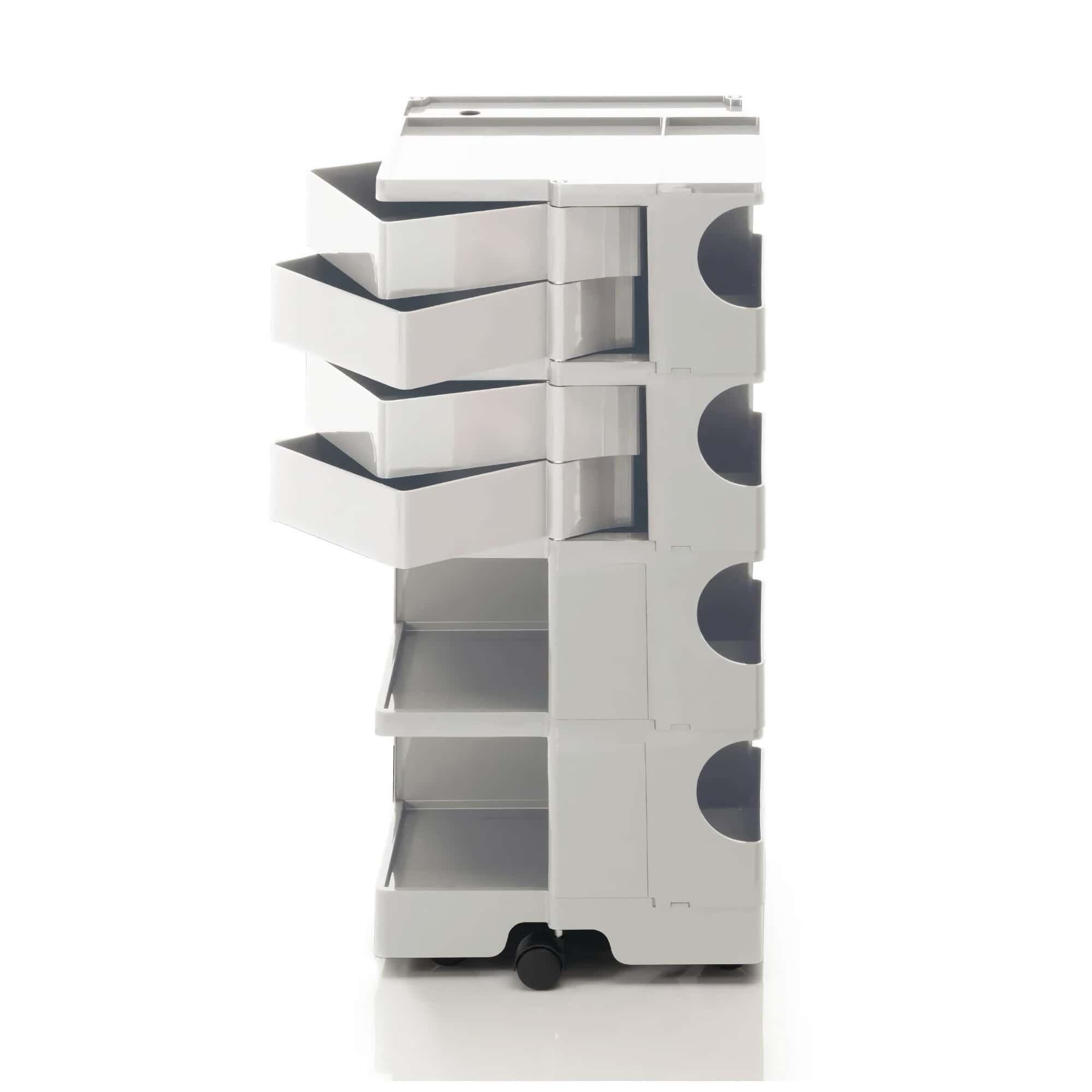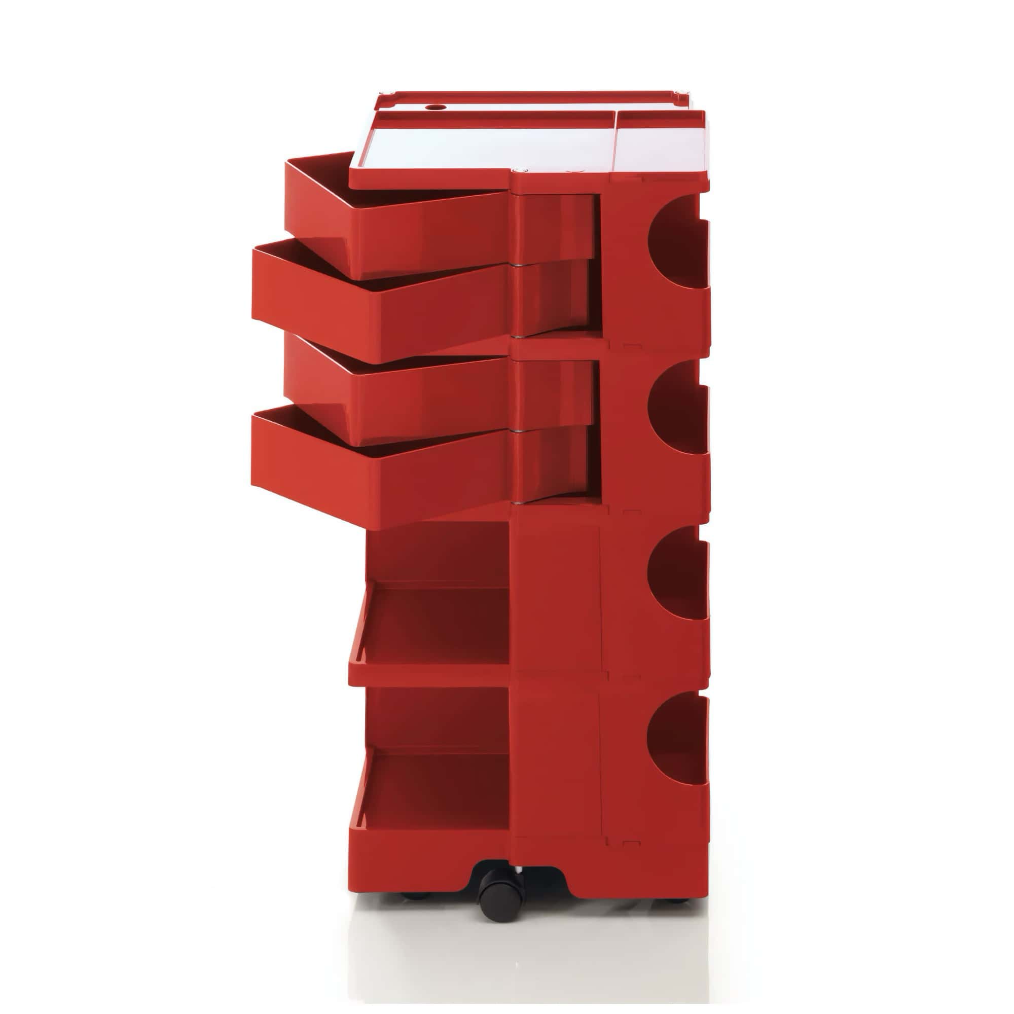 Boby is a trolley case and storage system that made history, characterized by its high versatility. Designed to ensure ease of vertical modularity, allows to obtain custom capacities. The structure and the drawers are made of injection-molded ABS, while the wheels are made of polypropylene. First prize at SMAU in 1971. Part of the permanent collection of the Museum of Modern Art in New York and the "Triennale" in Milan.