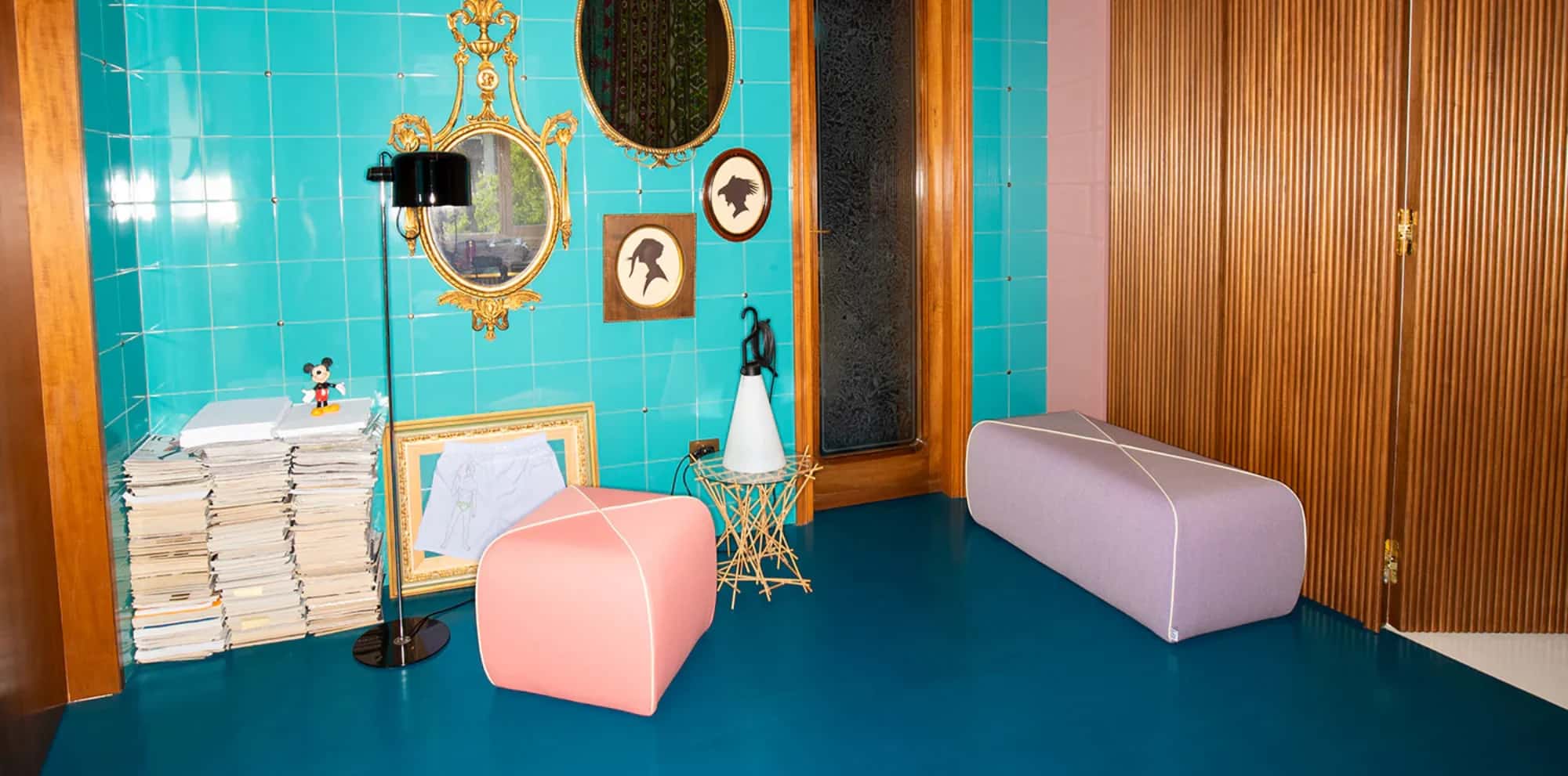 Soft padded pouf with contrasting cross stitching available in two versions with square and rectangular bases that can be mixed and matched to create various shape and colour arrangements. Made of polyurethane foam upholstered in fabric.