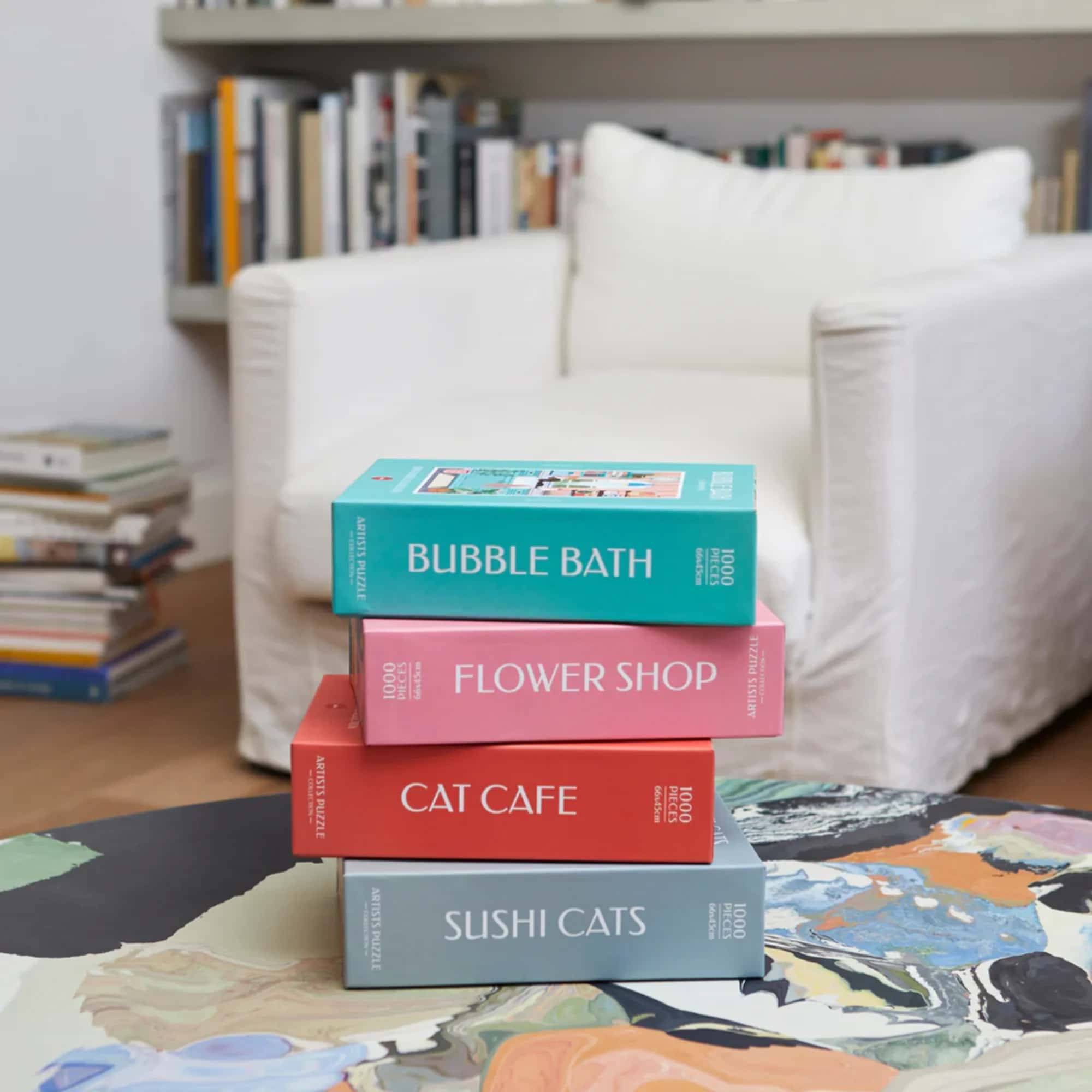 Love puzzles and blooming scenes? This 1000-piece puzzle by Yuna Moona features adorable dogs in a colorful flower shop — a charming, heartwarming scene to enjoy and display once complete.