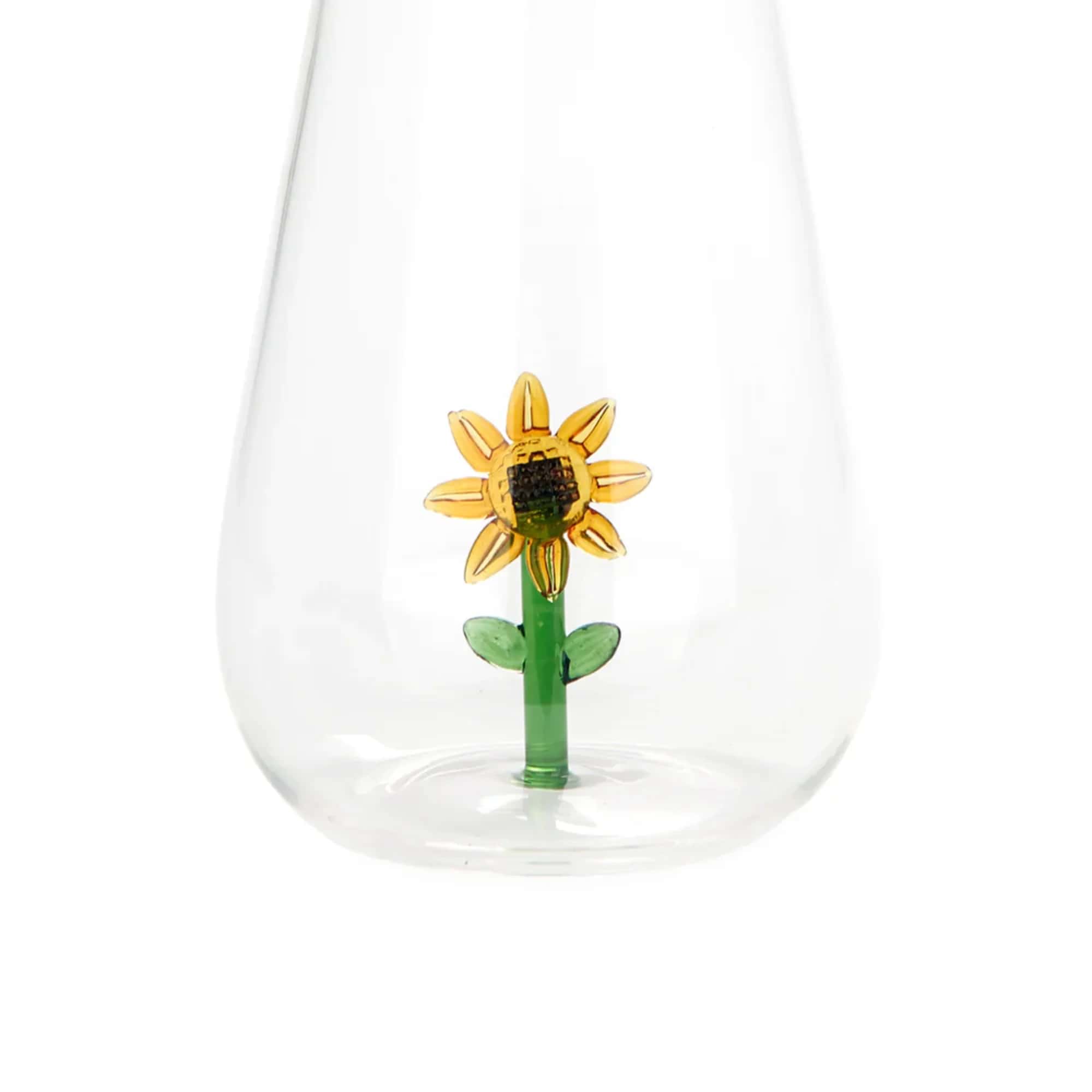 Turn every drink into a floral moment! This glass bottle, featuring a blooming yellow sunflower inside, adds a fresh, colourful accent to any table — practical, pretty, and totally giftable.