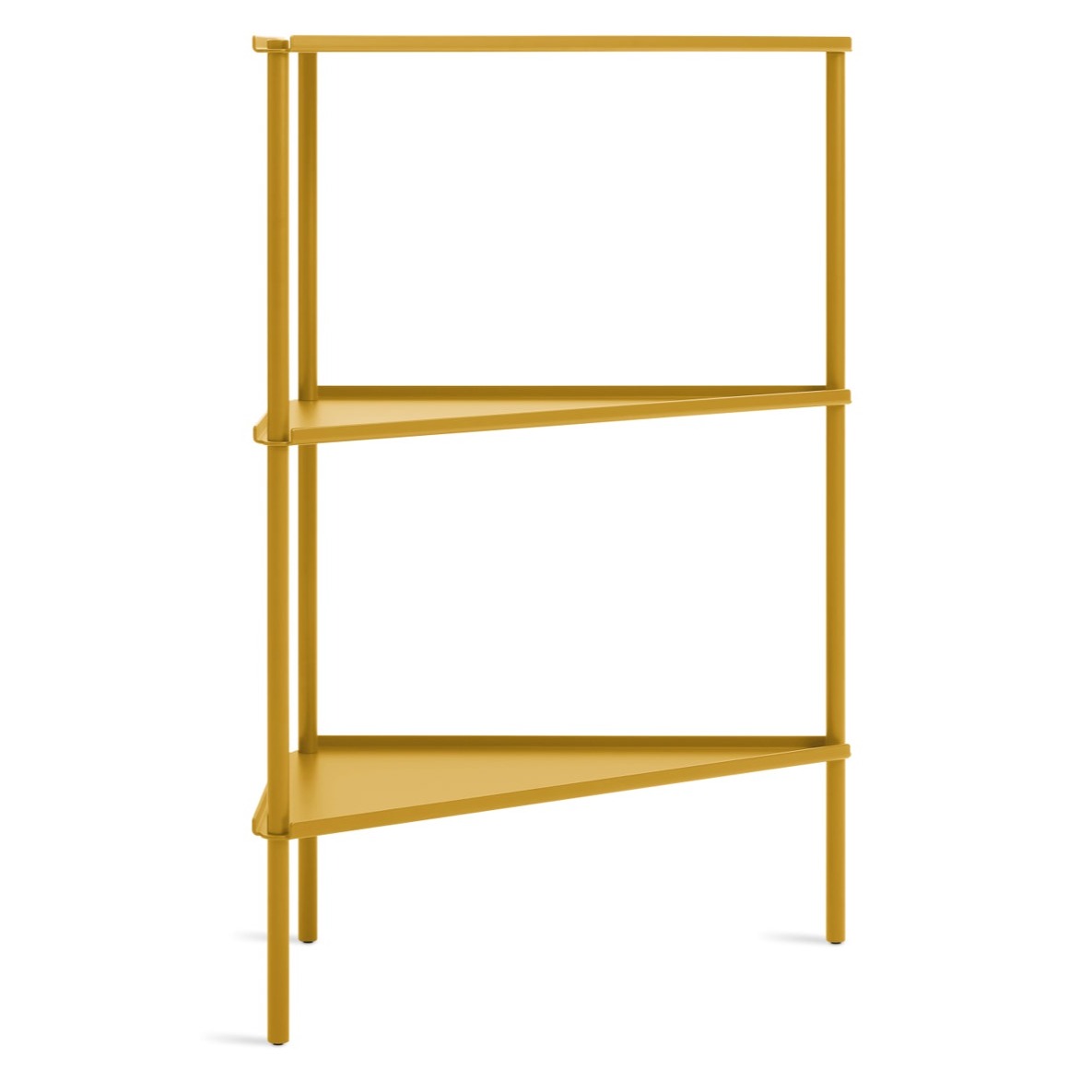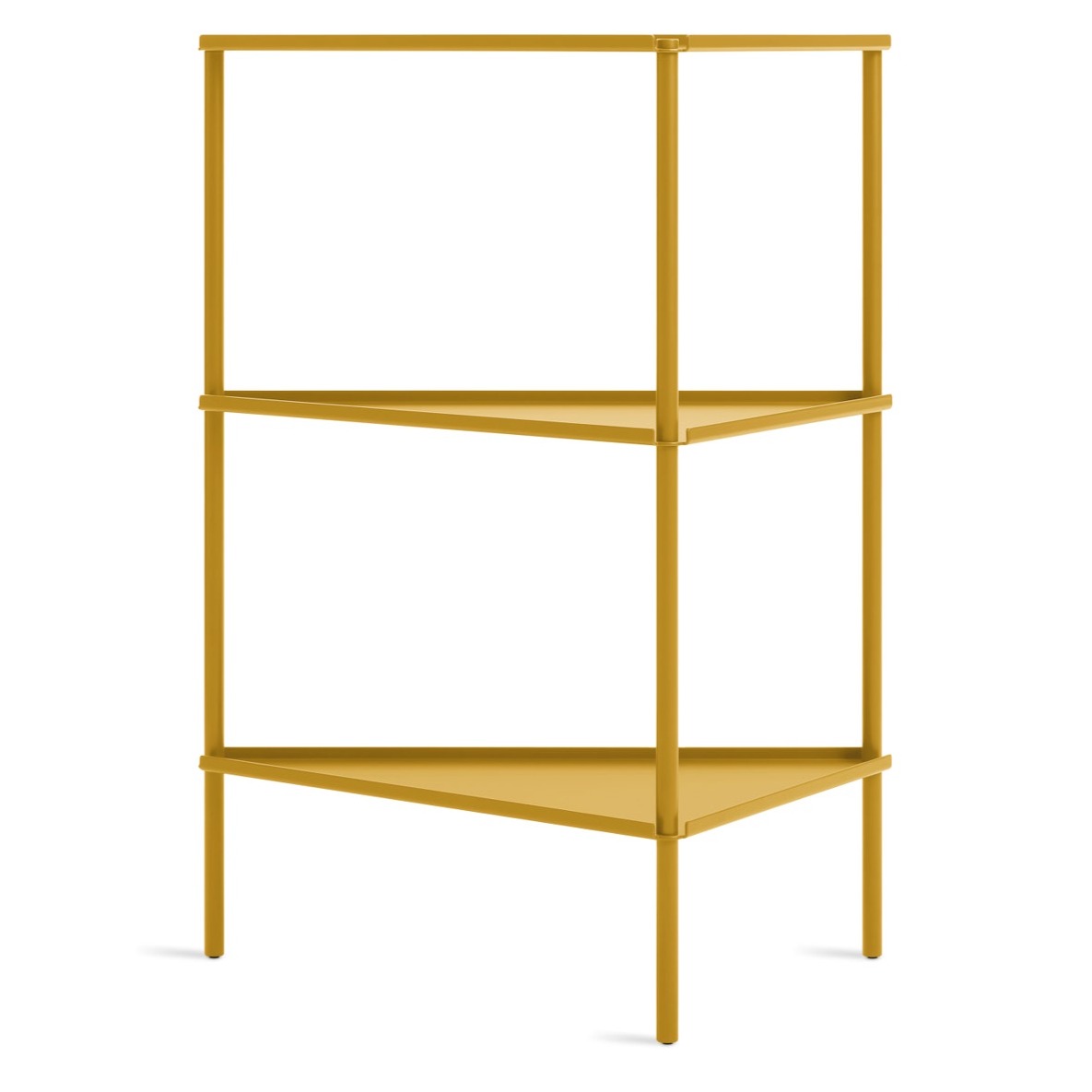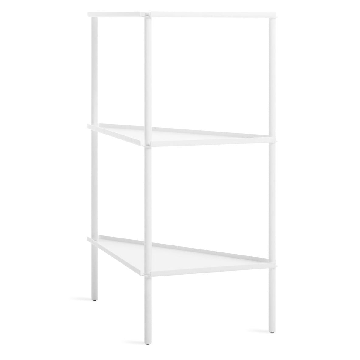 Tidy triangles whip your space into shape. Minimal powder-coated aluminum suits nooks and knickknacks. Available in neutral colours or bold shades, for those who dare to go there. Tuck into a corner or add a large shelf for an extra something something.