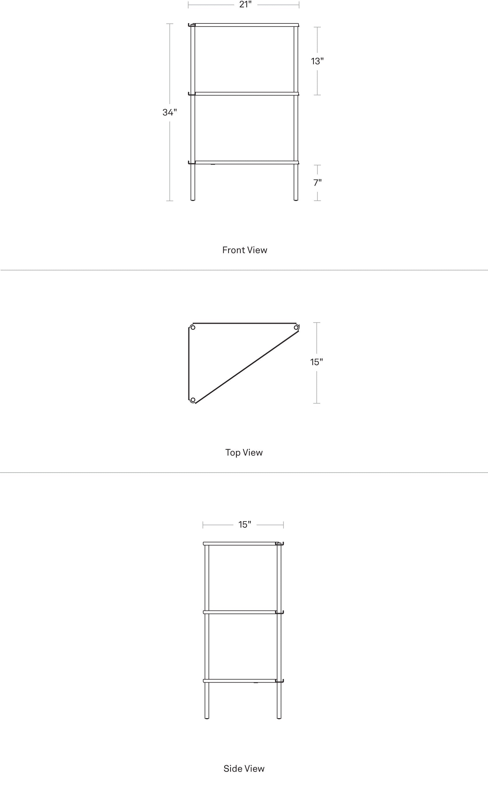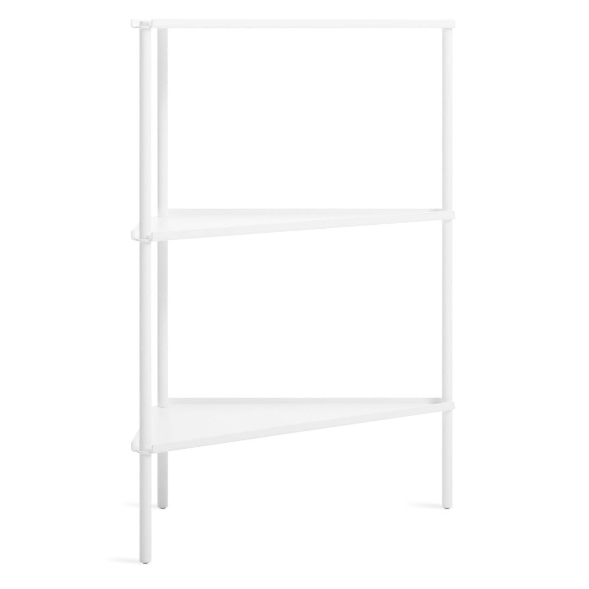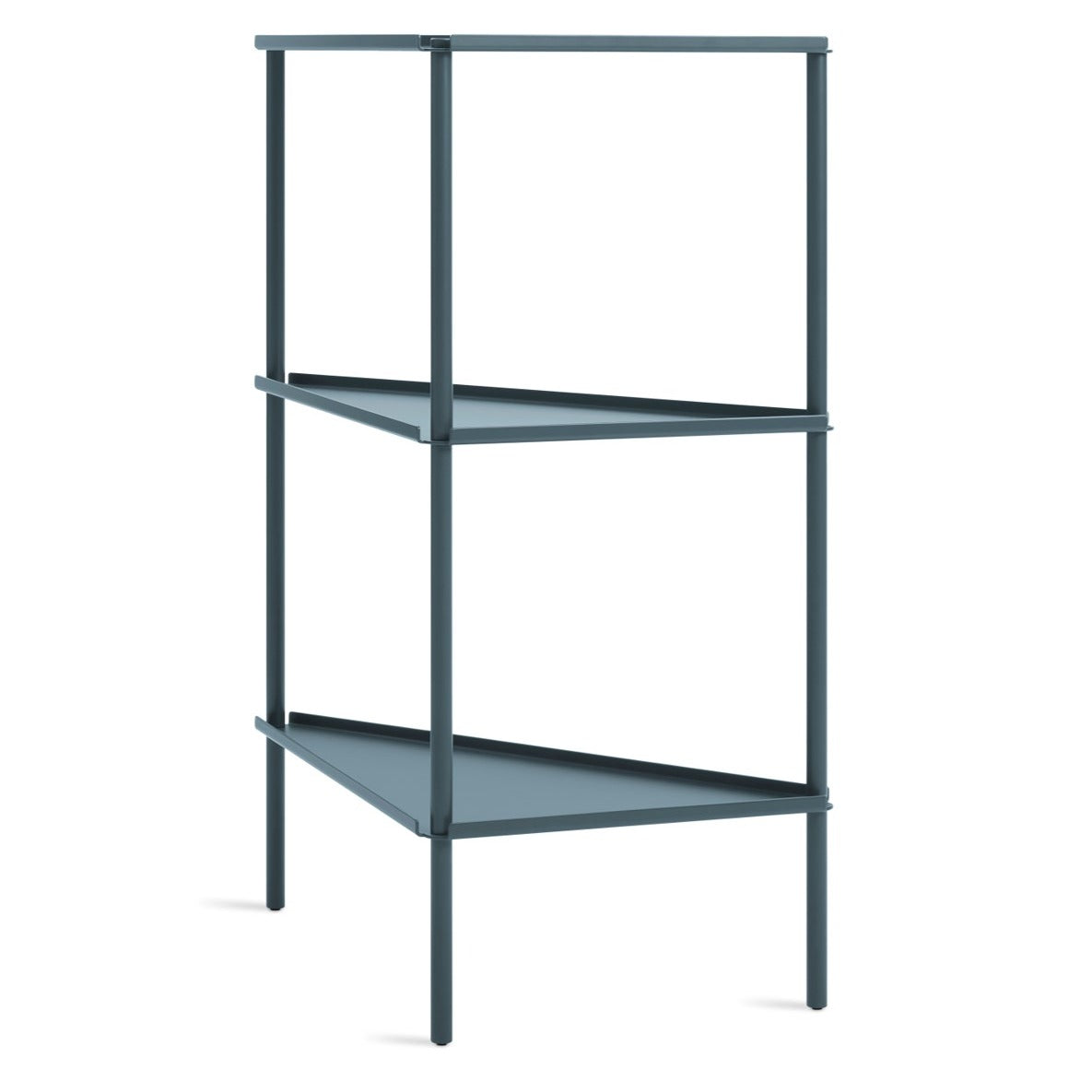 Tidy triangles whip your space into shape. Minimal powder-coated aluminum suits nooks and knickknacks. Available in neutral colours or bold shades, for those who dare to go there. Tuck into a corner or add a large shelf for an extra something something.