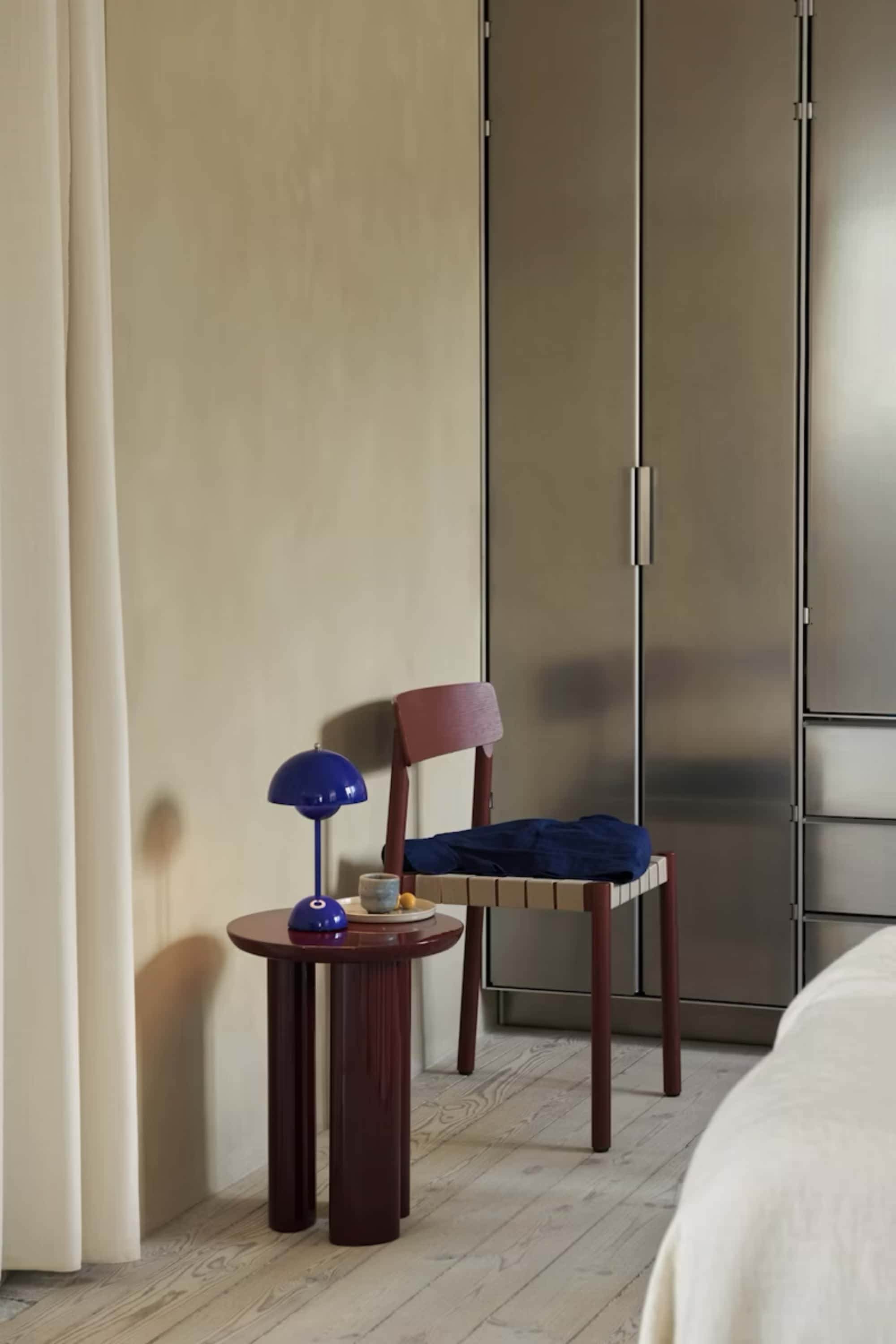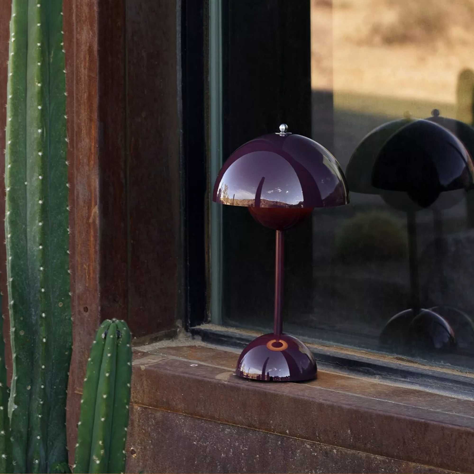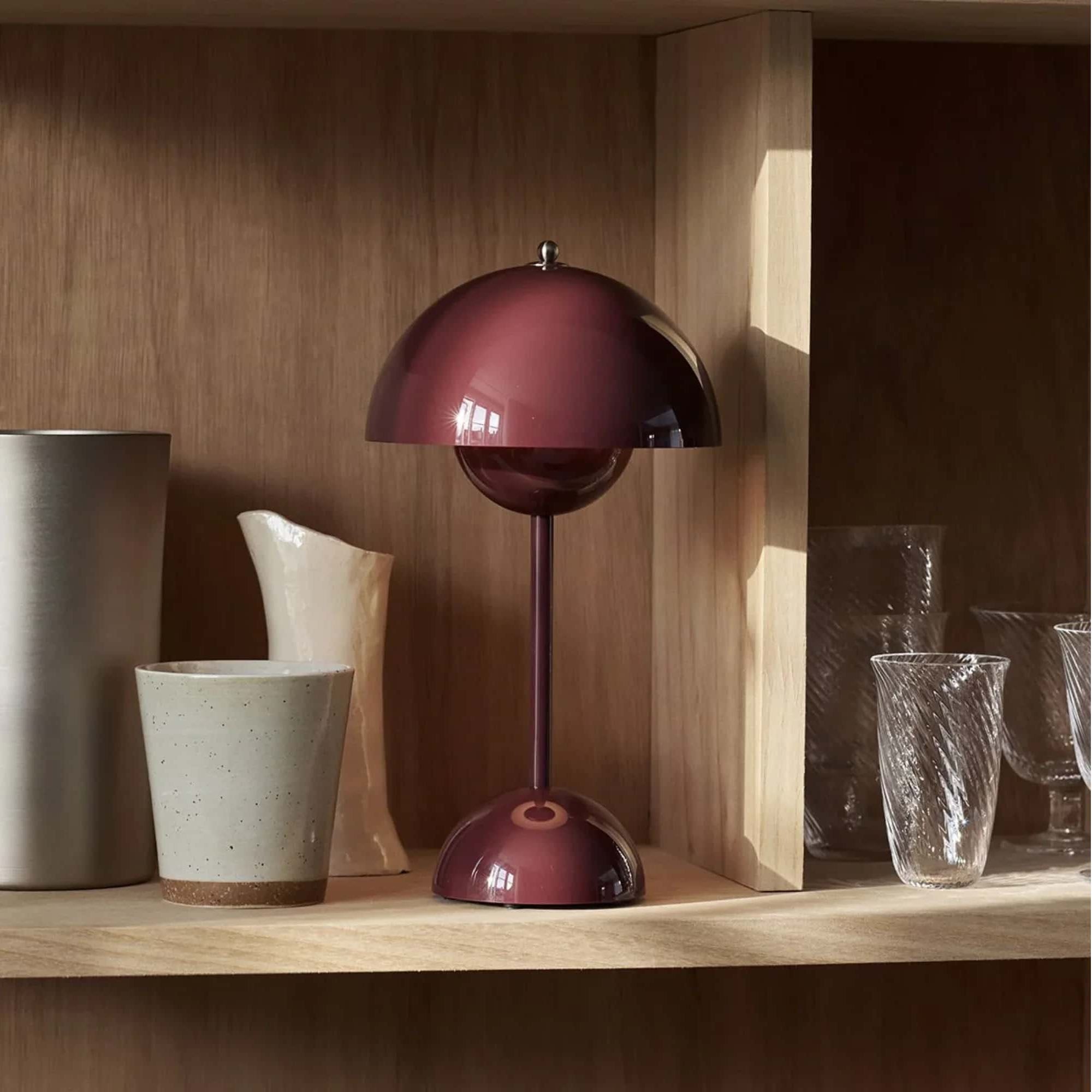 The Flowerpot, a vividly coloured lamp with a rounded pendant that hangs from the semi-domed upper shade, embodies the experimental attitude of Verner Panton. Slightly smaller in size than the table lamp version, and deliberately lightweight, the portable VP9 comes equipped with a USB charging cable. It is available in a wide range of contemporary colours and will bring a cozy atmosphere to indoor and outdoor settings.