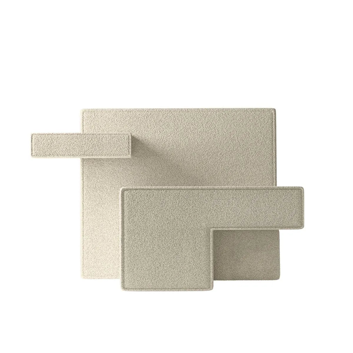 Studio Nucleo signs Primitivo, the iconic design armchair with armrests for the Qeeboo brand. The Primitive armchair plays on shapes and in particular on the asymmetries of volumes. It has a rather unique structure, padded and covered Bouclé cloth. Primitive evokes the paradox between its name, which refers to rough, primordial geometric forms to typical movements of the twentieth century: cubism, abstractionism and constructivism among others. As a bridge between shapes and concepts, Primitive is excellent for indoor environments with a strong modern and minimal connotation but also for those who want to dare with a particular and original piece.