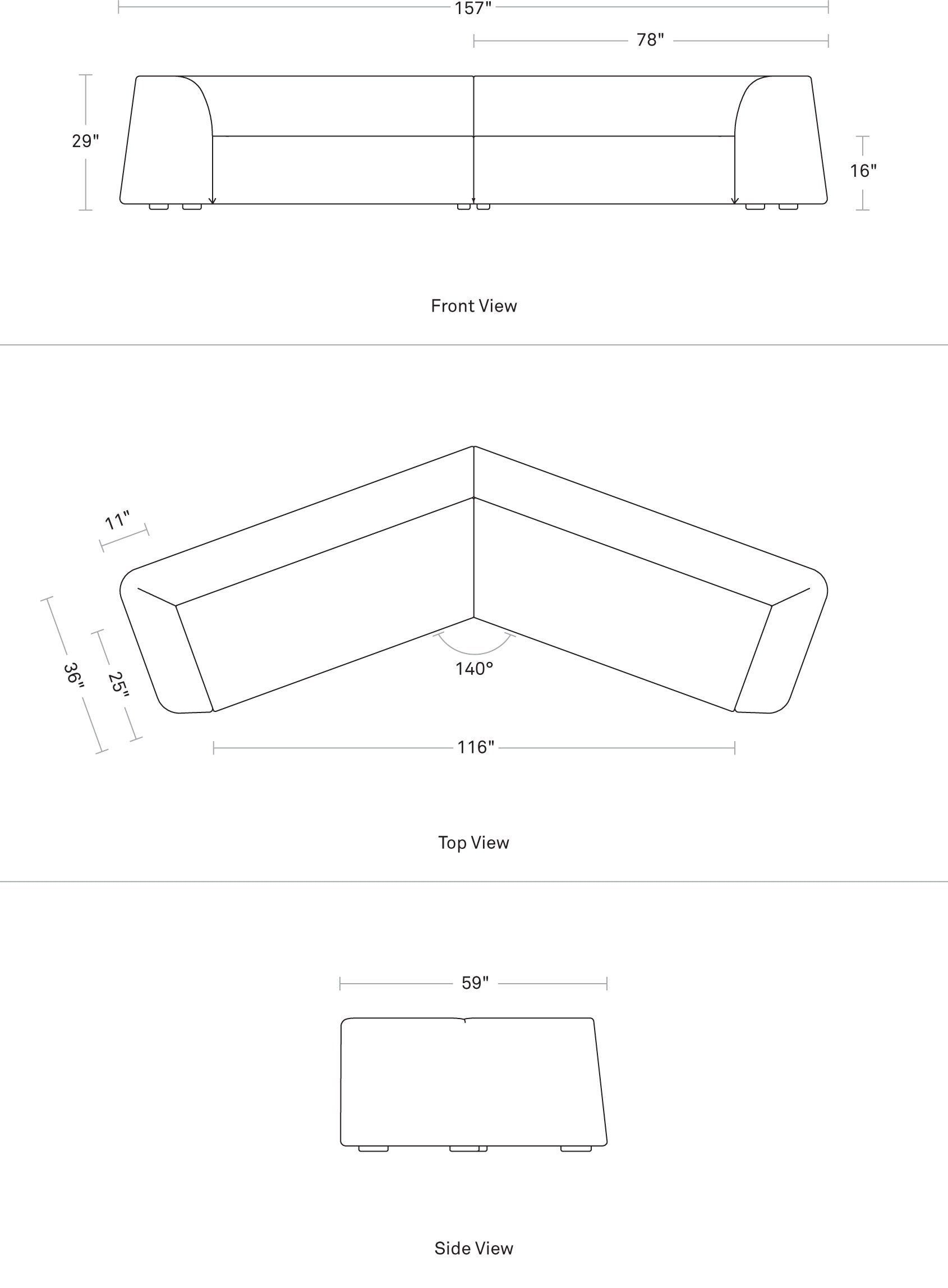 Measures: 157”w x 59”d x 29”h