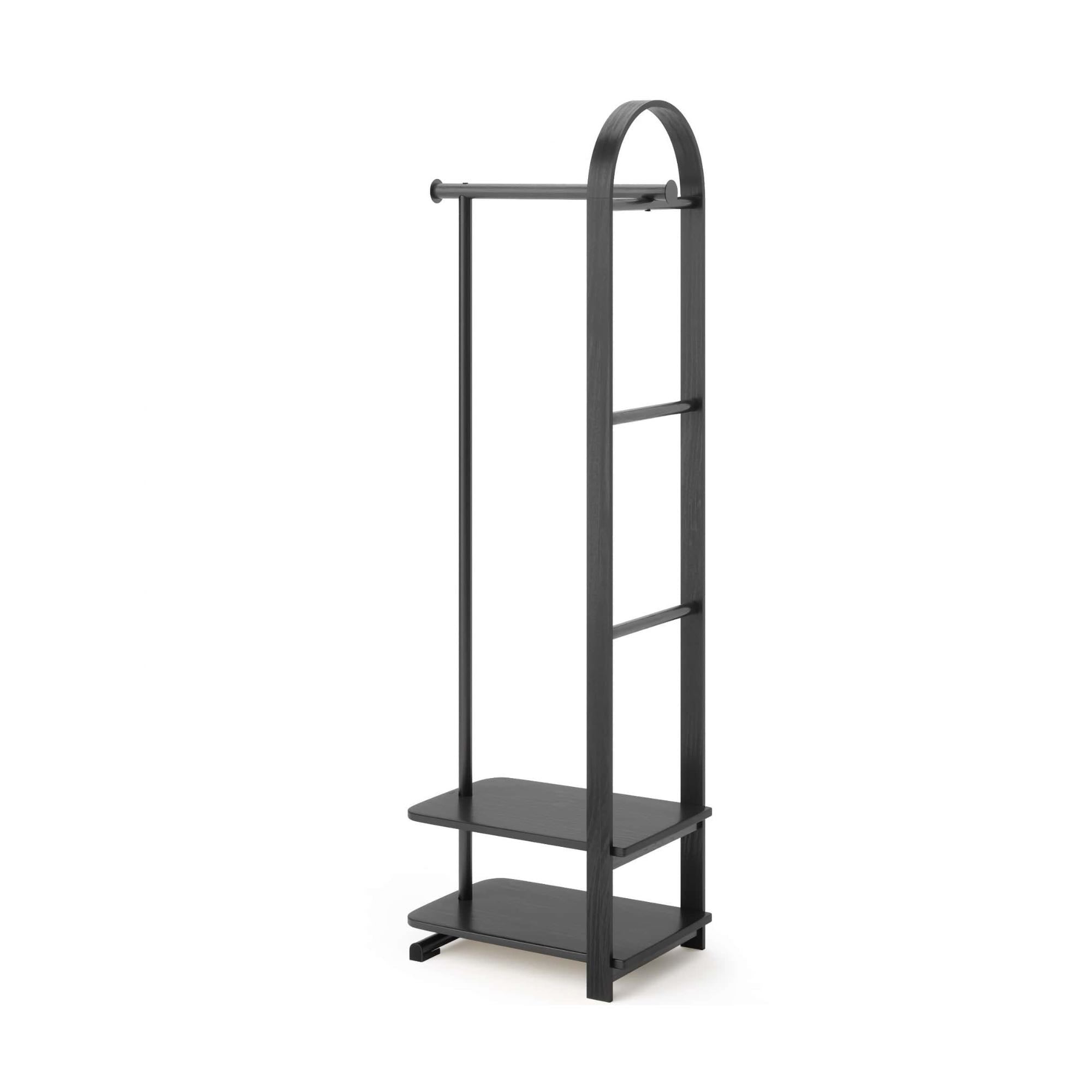 A clothing rack that saves space while adding a decorative touch, Bellwood Garment rack mixes soft curves with bentwood accents. This modern and multi-functional rack is perfect for organizing and displaying your clothes, shoes, bags and other accessories. With four space-saving shelves and integrated steel rod, Bellwood Rack can be used in your bedroom, laundry room, closet, entryway and more to store & organize your belongings. Bellwood Garment Rack is part of our larger Bellwood Collection including a coffee table, side table, planter, storage table, cosmetic organizer and more. Easy to assemble and comes with all necessary hardware and instructions. Max weight capacity of 50lbs. (22.5kg) overall.