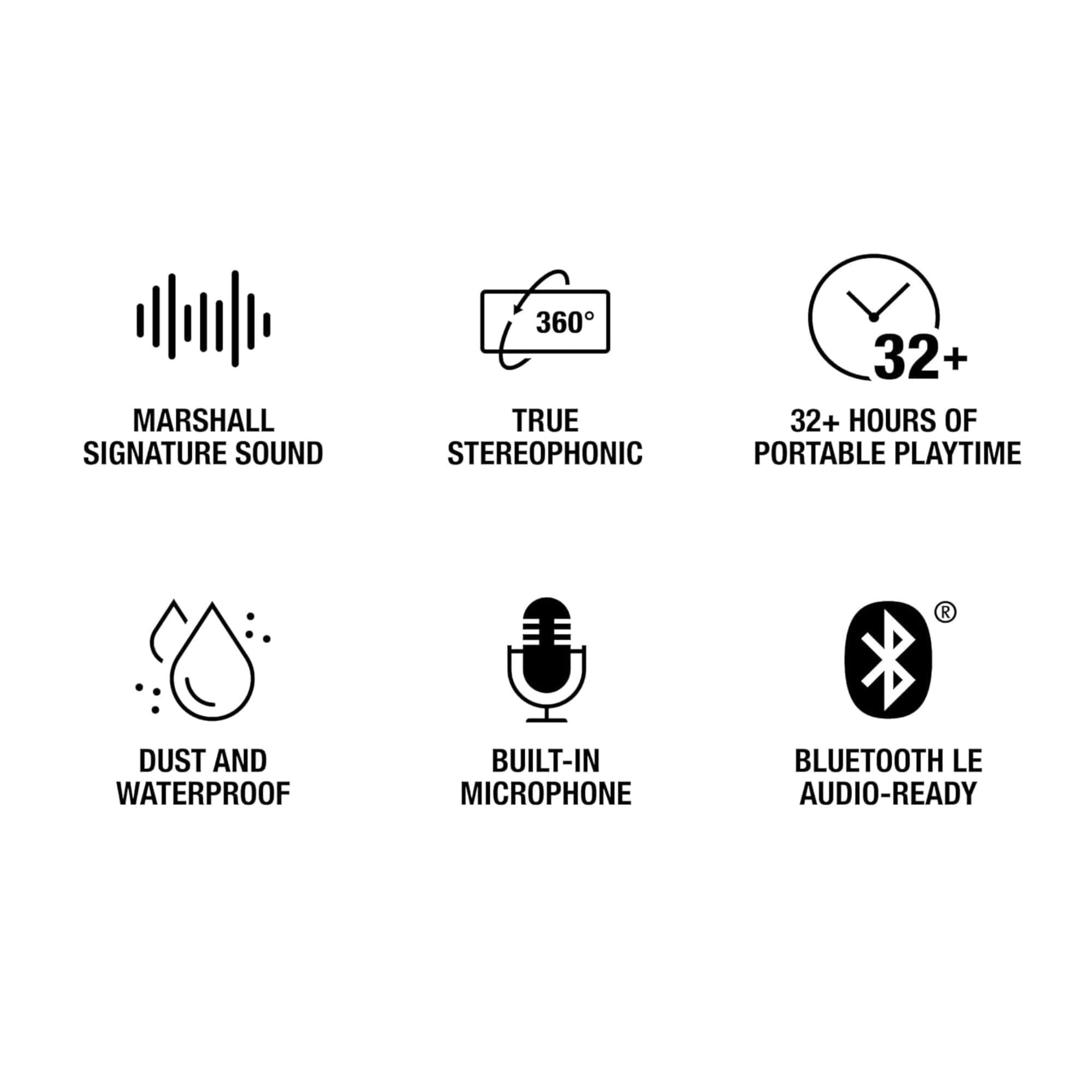 - Marshall signature sound. Perfectly balanced audio at every volume.