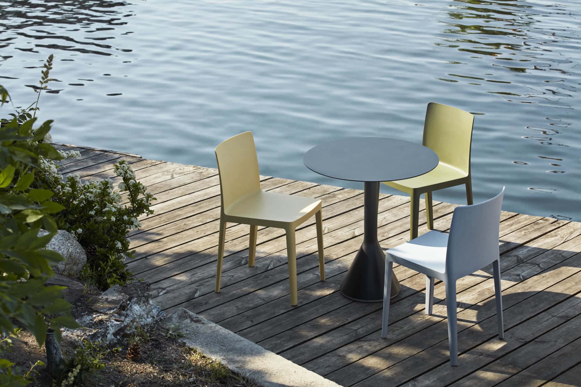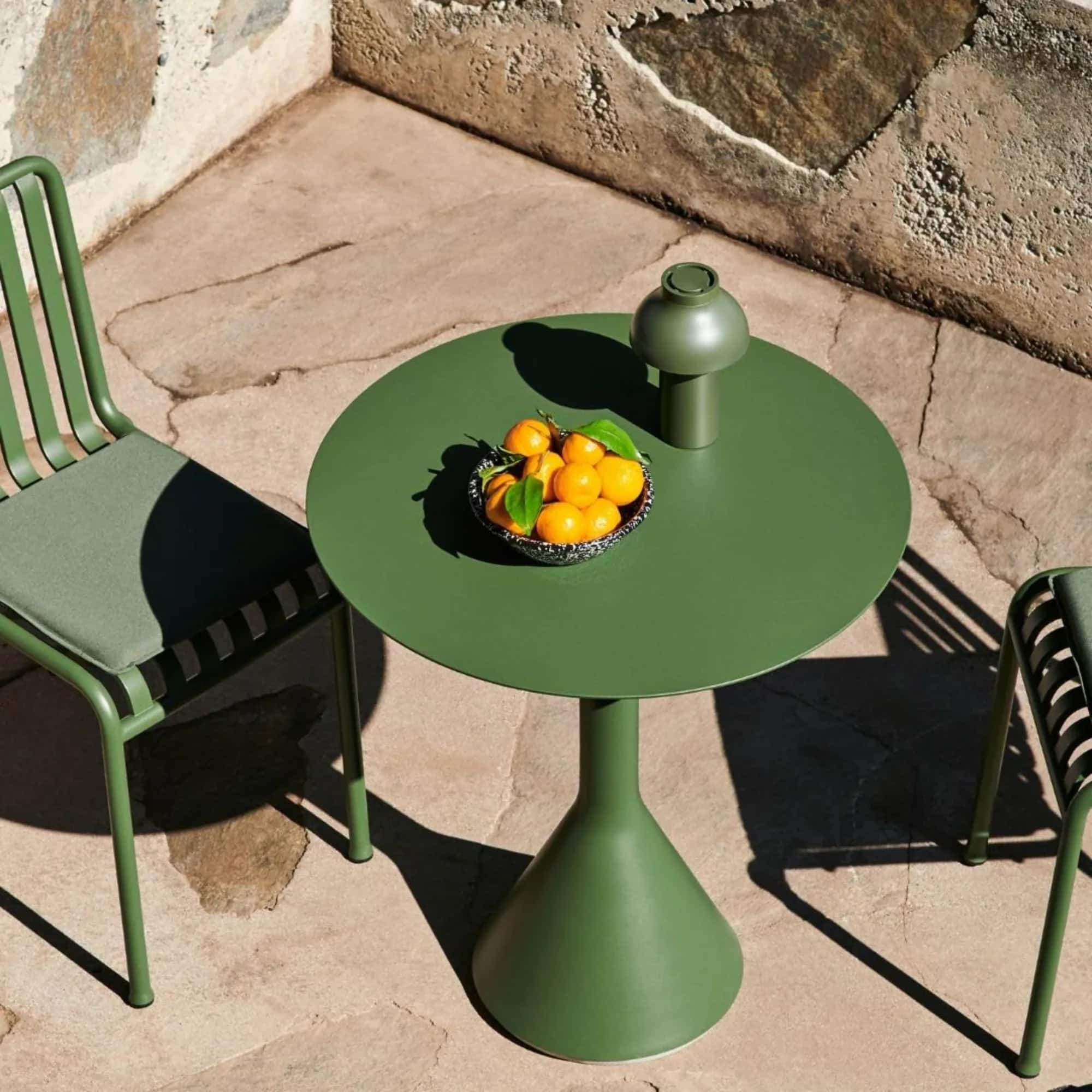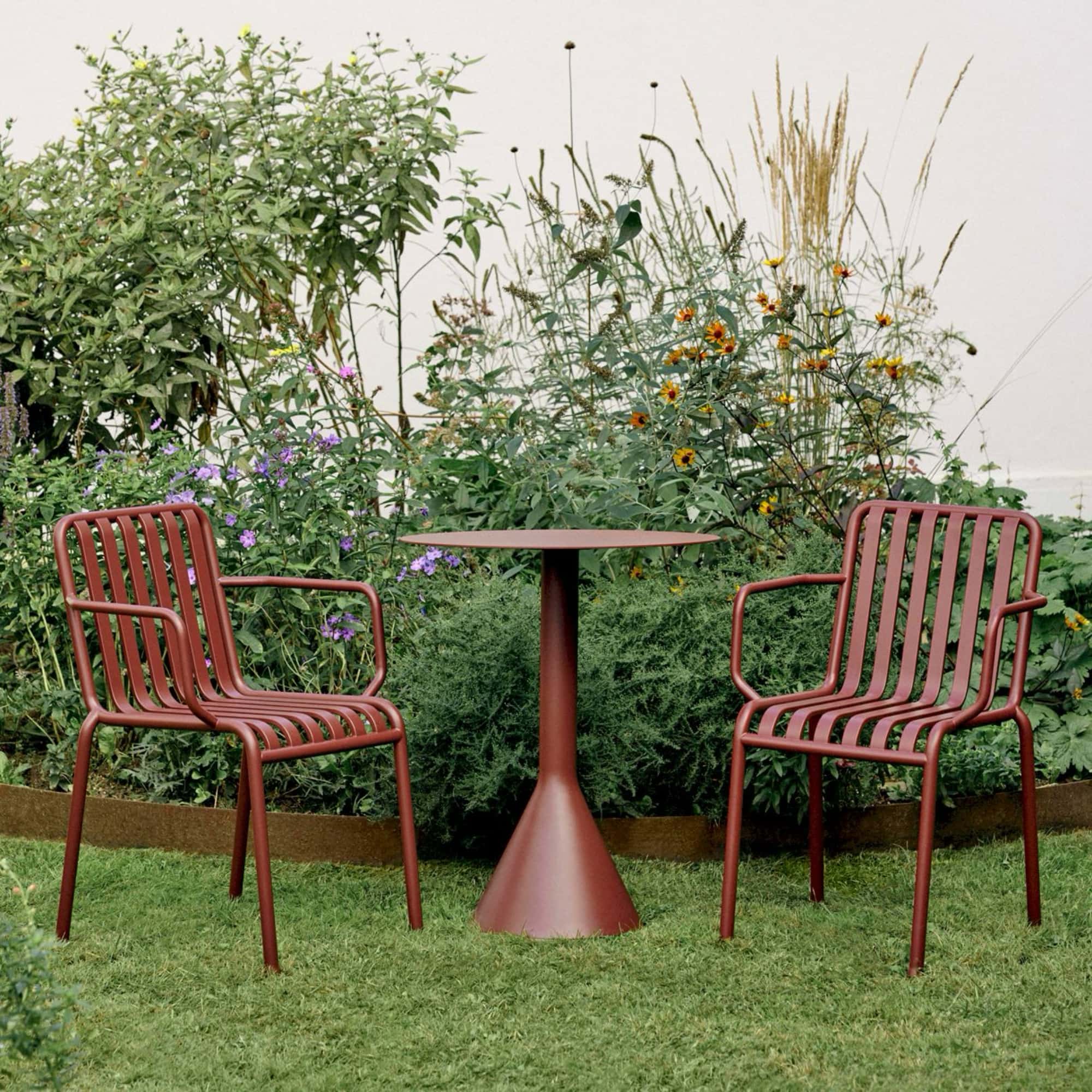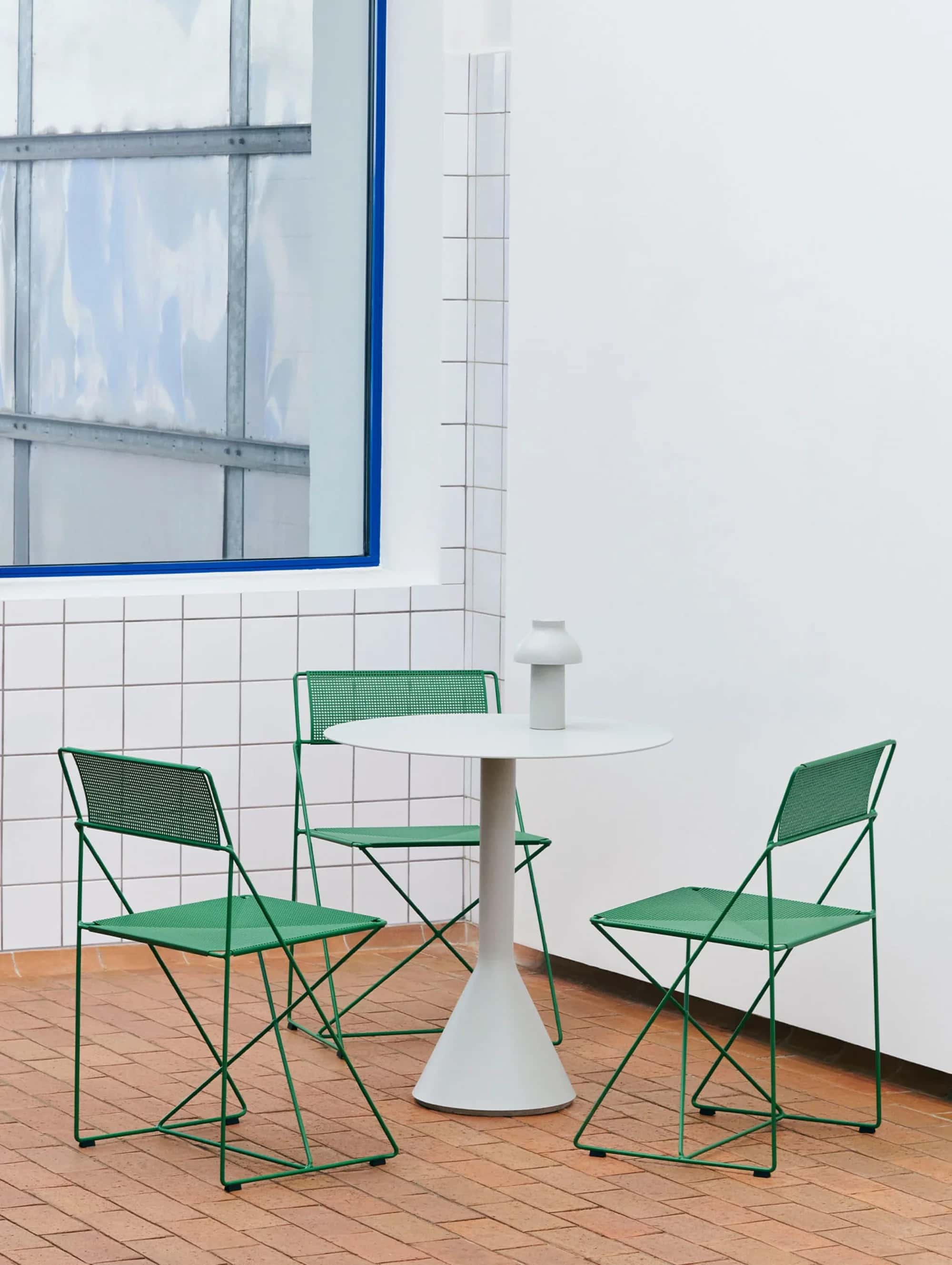 The Palissade Cone Bistro Table is a new addition to Hay's Outdoor Palissade range and is characterised by its conical base, filled with concrete for stability. In spite of its sturdy features, the foot does not look chunky at all. Combined with the thin tabletop, it has a graphic appearance, which can be seen throughout the series designed by Ronan & Erwan Bouroullec.