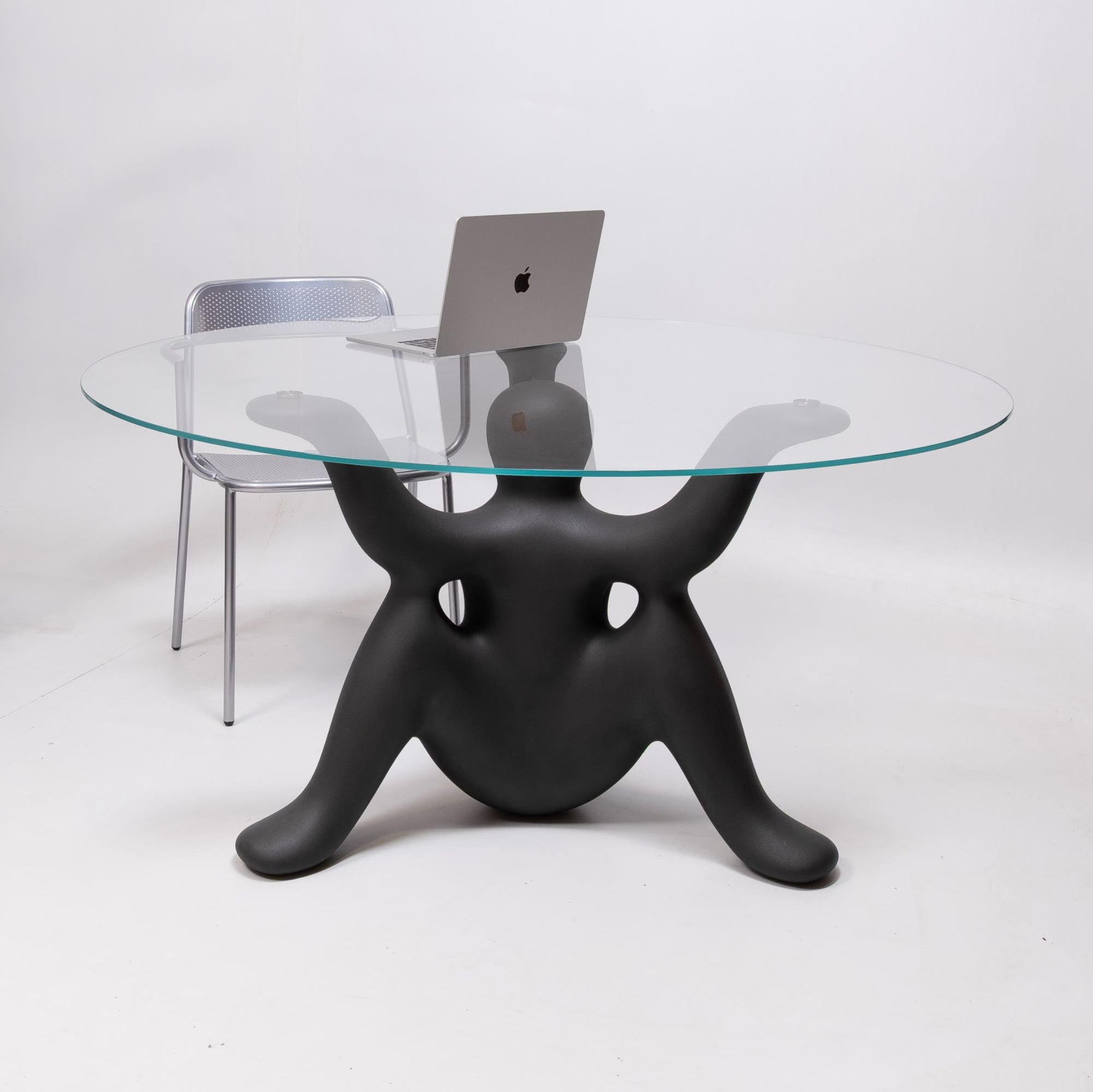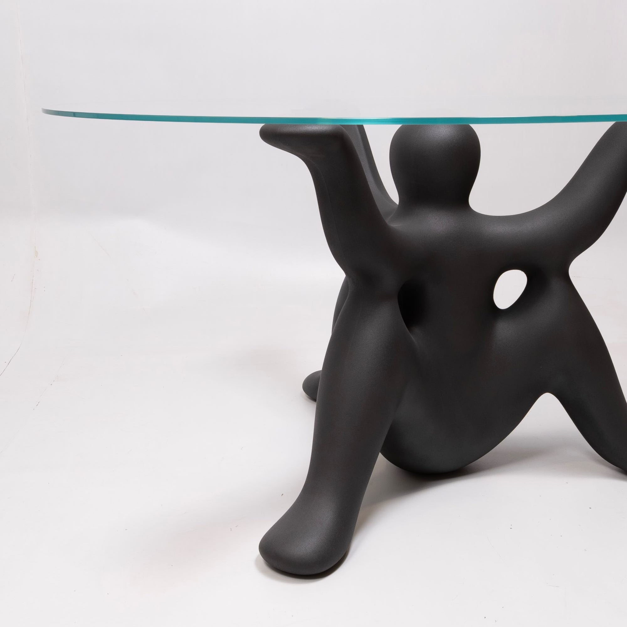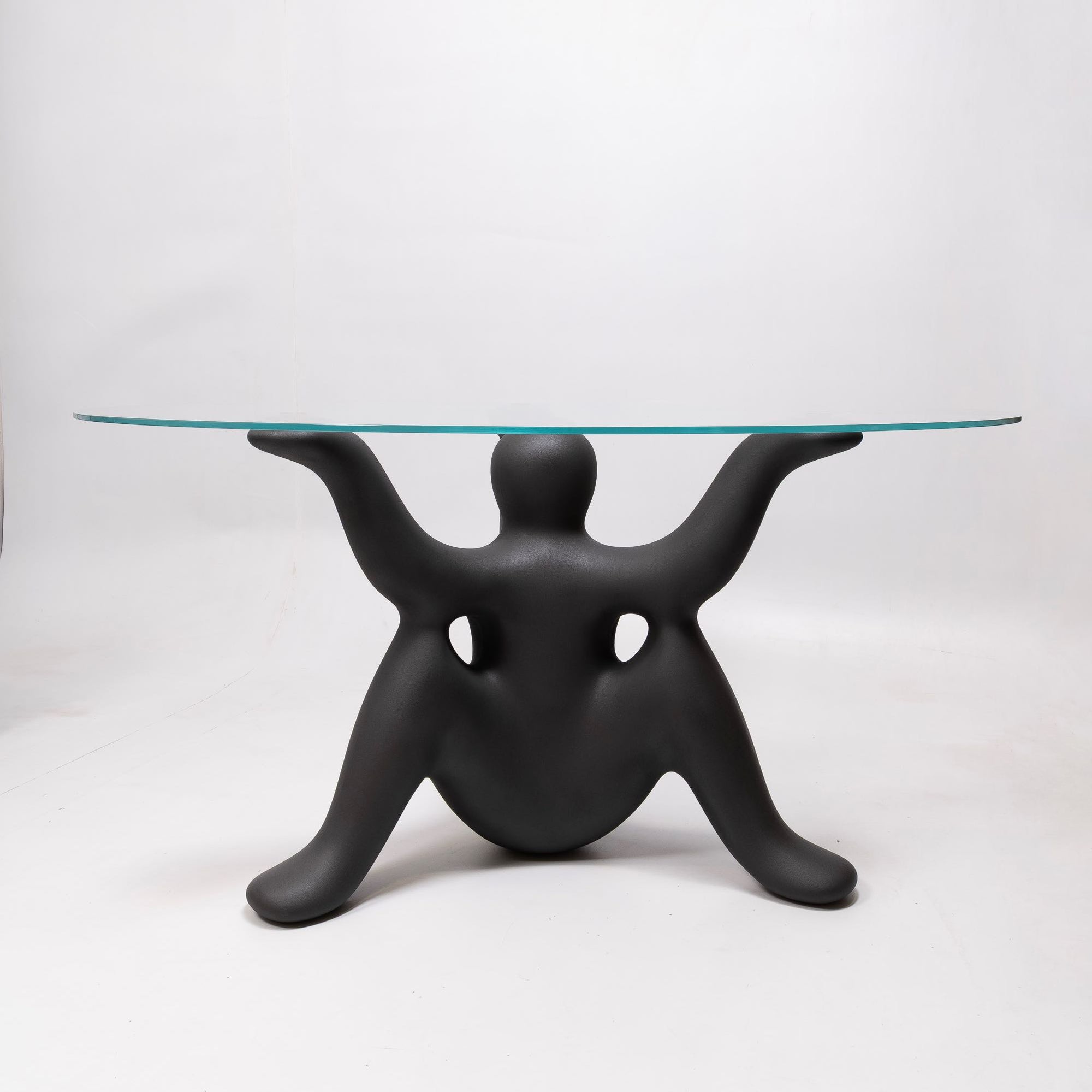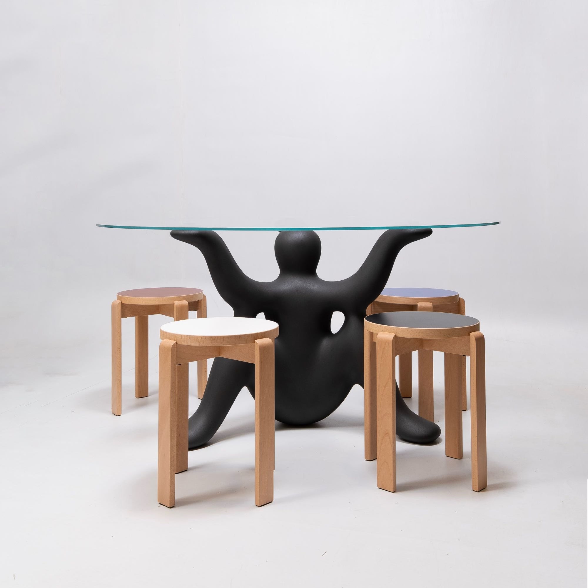 Qeeboo collaborates for the first time with world-renowned creator Philippe Starck on a collection of table and side table. “The Helpyourselfs is a family of charming geniuses who watch over the happiness of the house by carrying the tables.” Ph.S.These geniuses with three legs and three arms are the base for a 140cm diameter glass top.