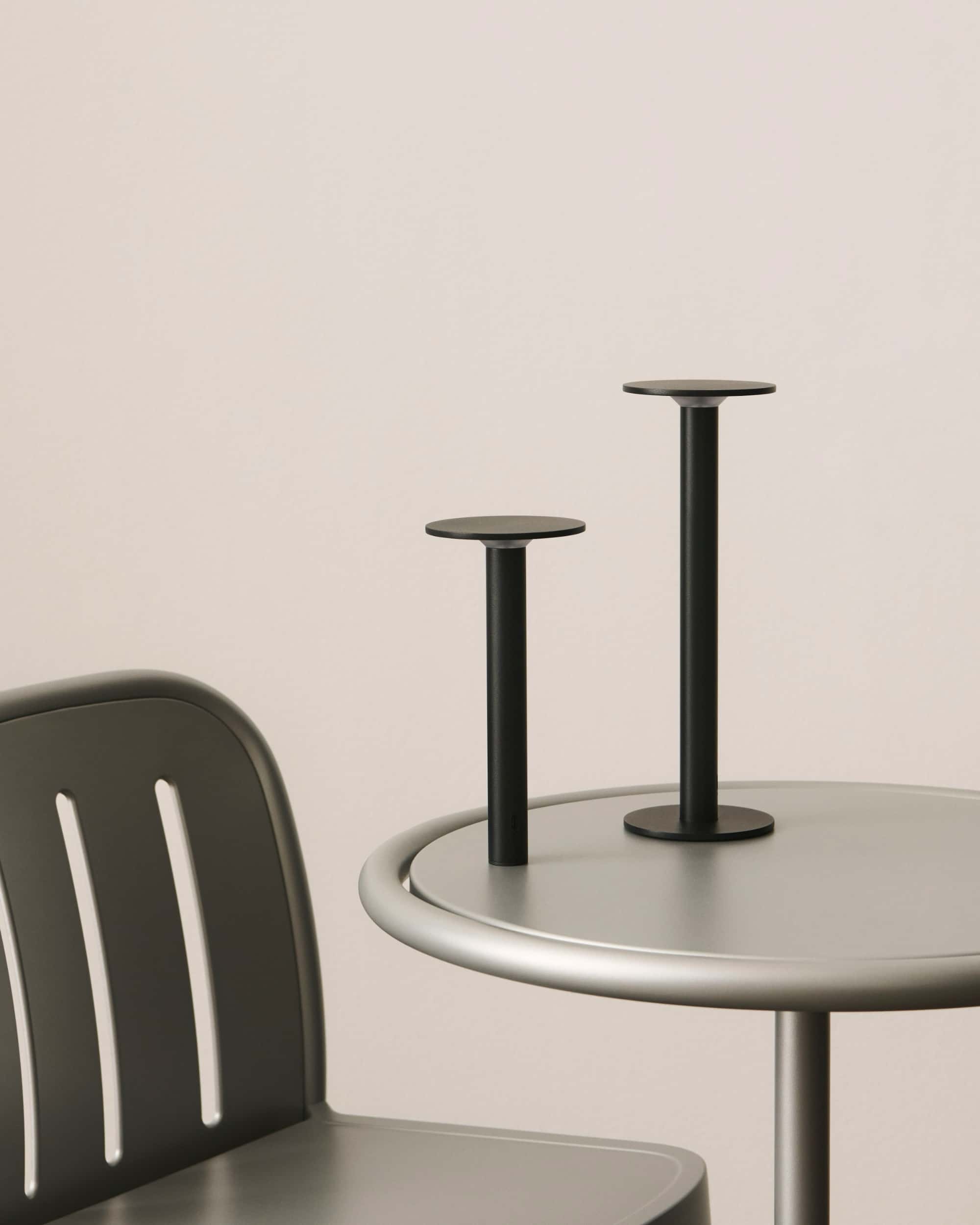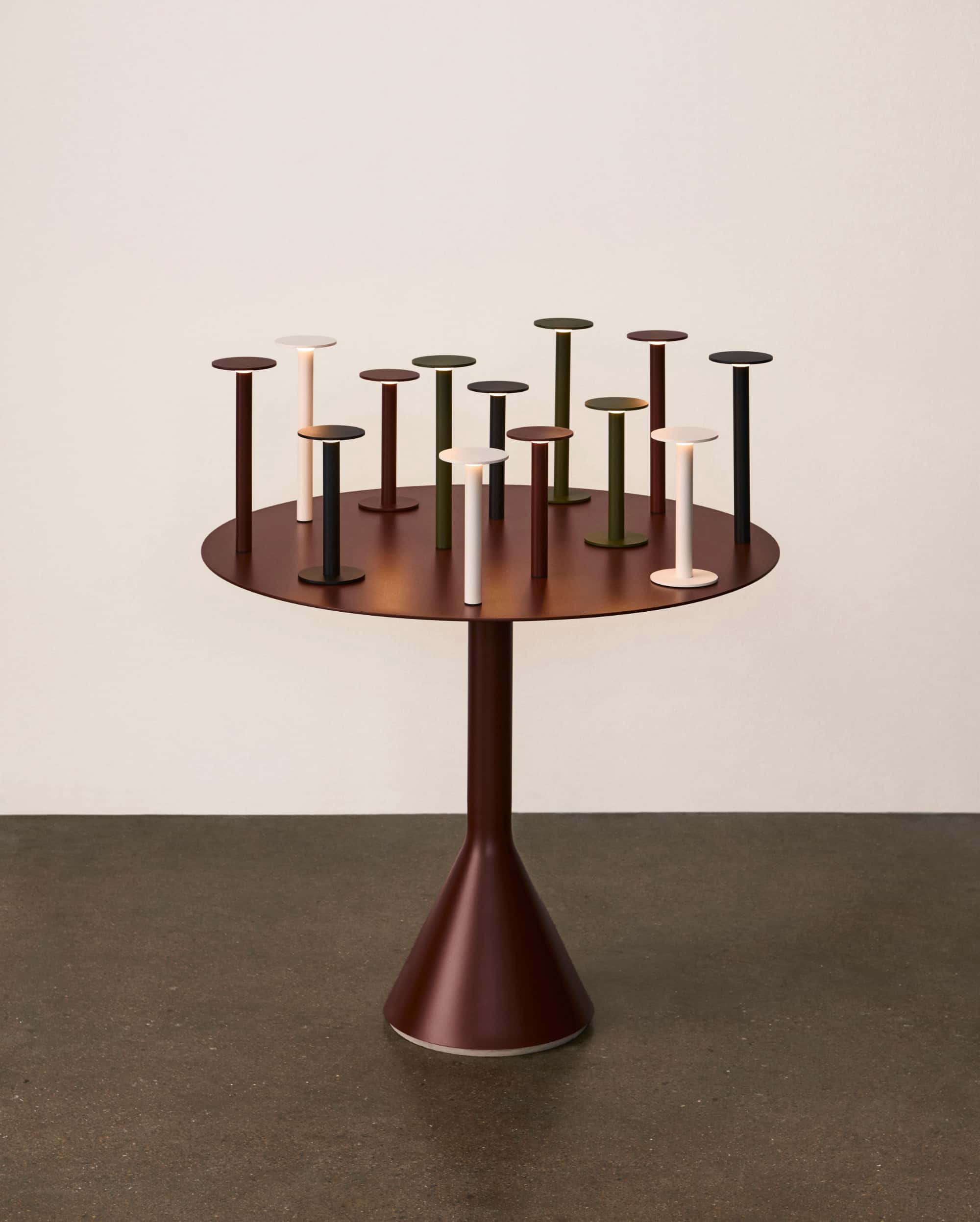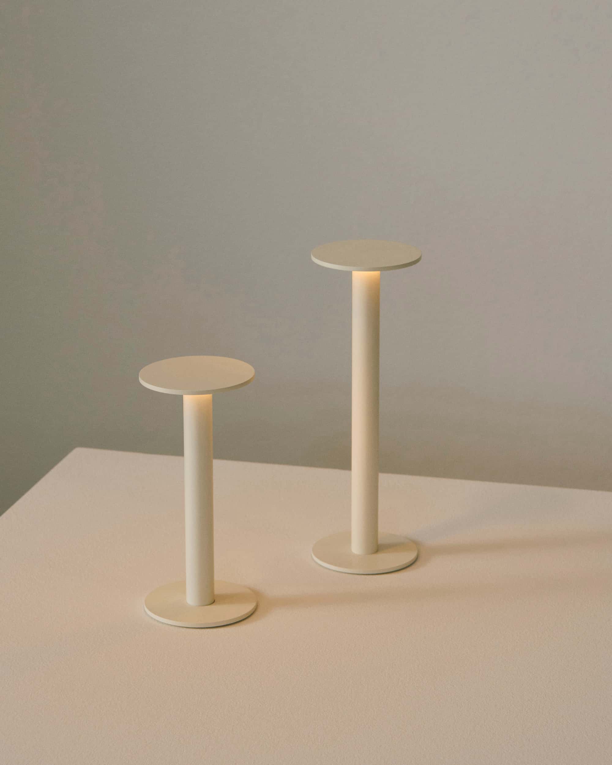 A compact, portable lamp designed to provide light without drawing focus to itself. Its slim profile takes up little space, while the downward cast of light gently illuminates the surface beneath it. An integrated magnet in the base allows attachment to metal surfaces, and a flat steel base is included for use on non-magnetic surfaces. Lightweight and rechargeable via USB-C, it offers cordless flexibility and effortless mobility. Available in various heights and colour options, it works equally well on its own or arranged in groups, making it suited to everything from intimate settings to shared spaces.