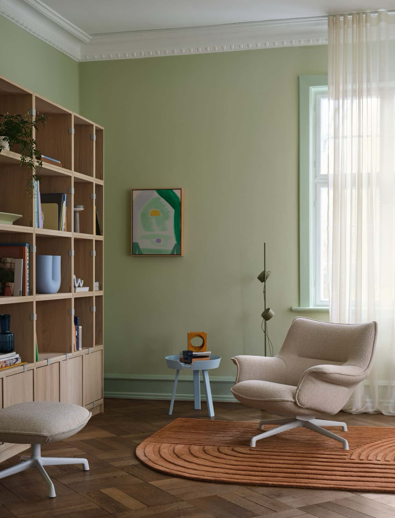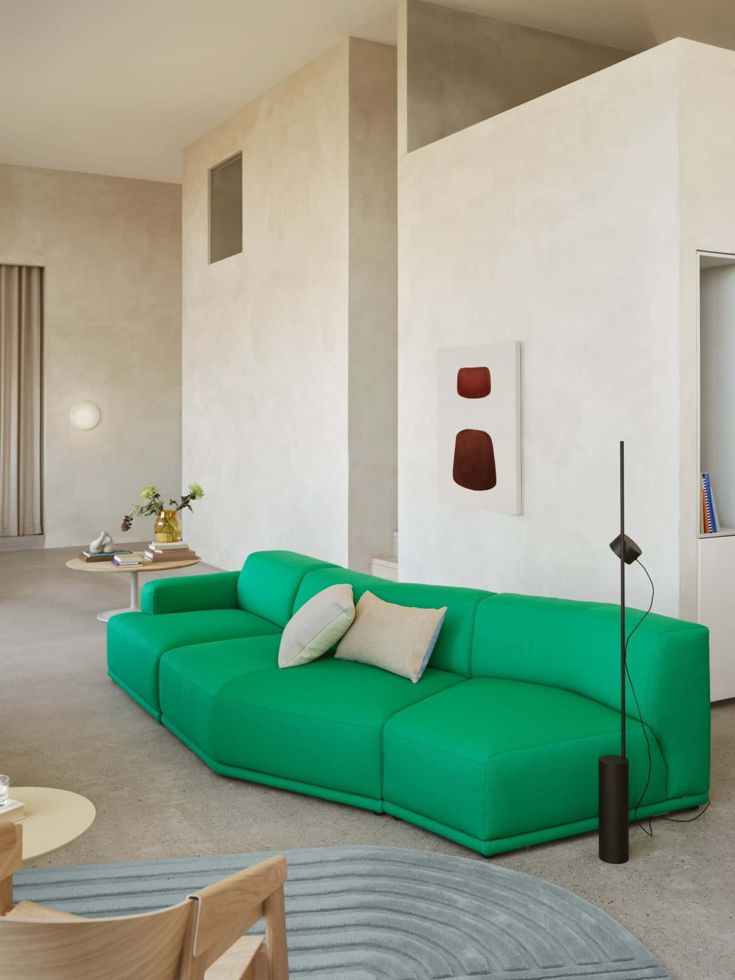 The Post Floor Lamp is an innovative modular lighting design with an archetypal appearance, graphic lines and forward-thinking functionalities. Exploring the utmost flexibility of a magnetic joint, the individual lighting units of the design can be positioned, turned and dimmed up and down to individual needs. Use the magnetic cable drops to position the cords on the rod. The Post Floor Lamp comes with two lighting units. An additional lighting unit can be purchased as spare part and added to the design by plugging it into the power hub and positioning it on the rod.