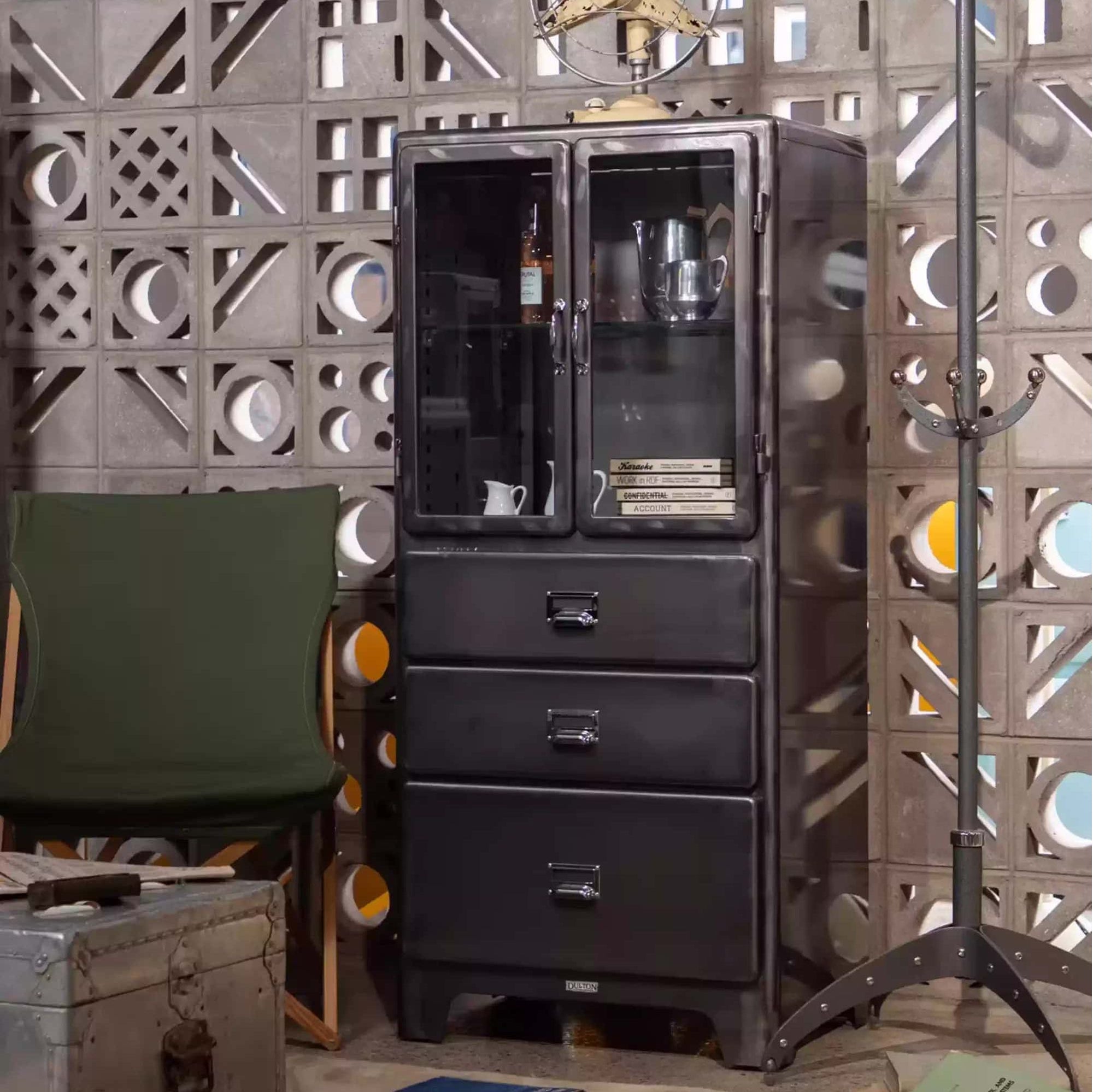 a simple and robust medical shelf like showcase. a cabinet with both cupboard and drawers for maximum storage.