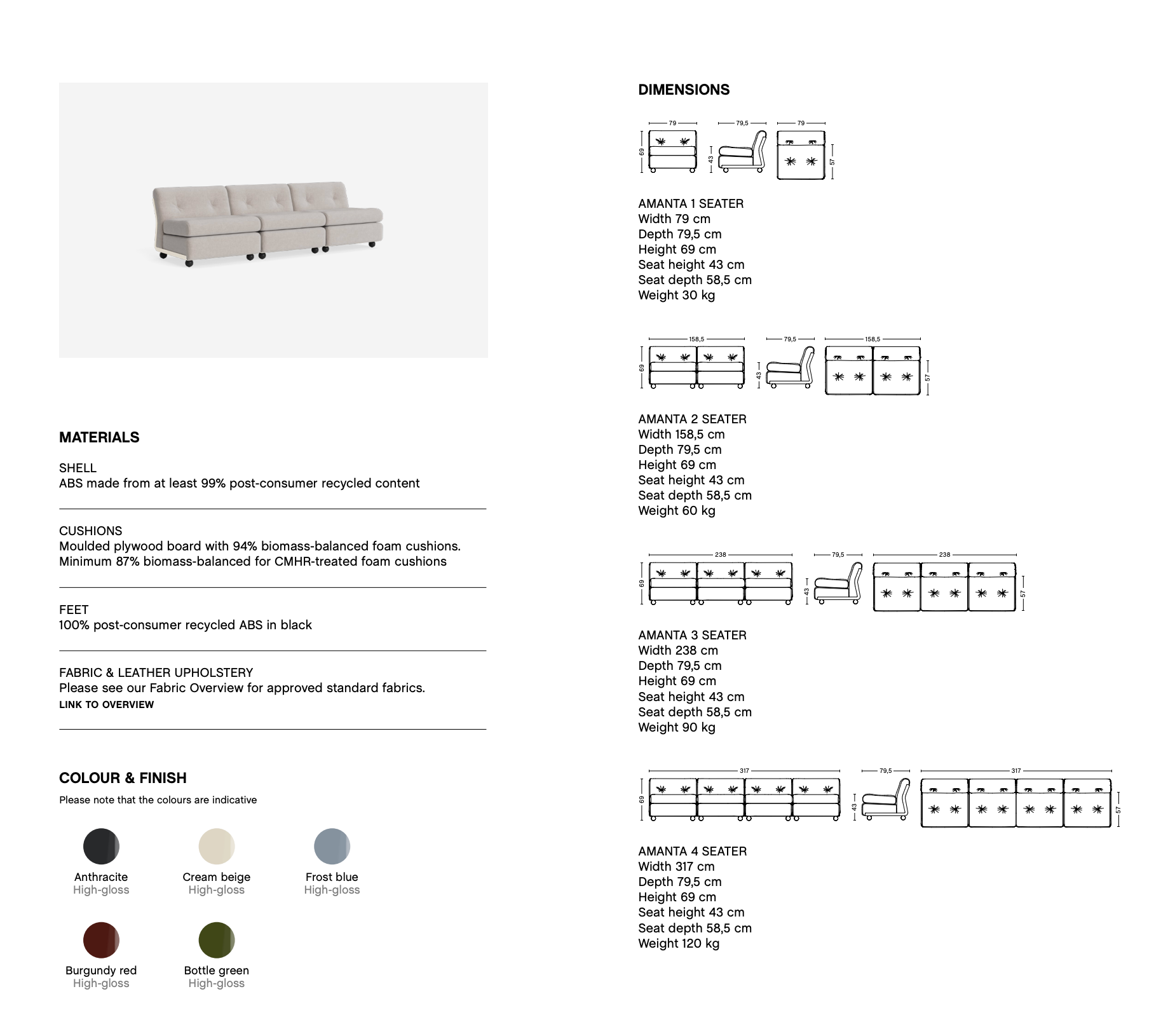 The Amanta sofa from HAY is available in 1-seater, 2-seater and 3-seater versions, offering flexible design options for living and working areas of different sizes.