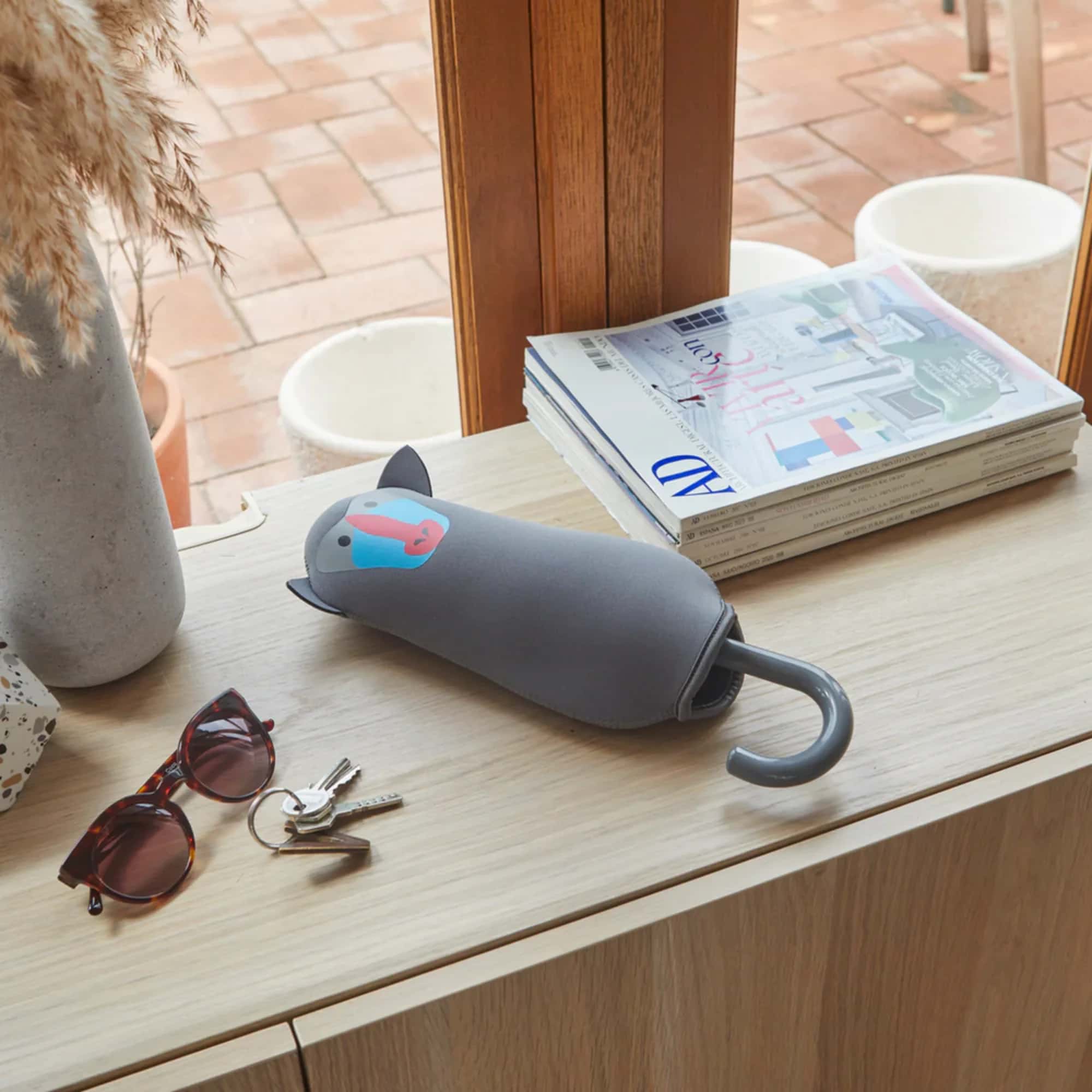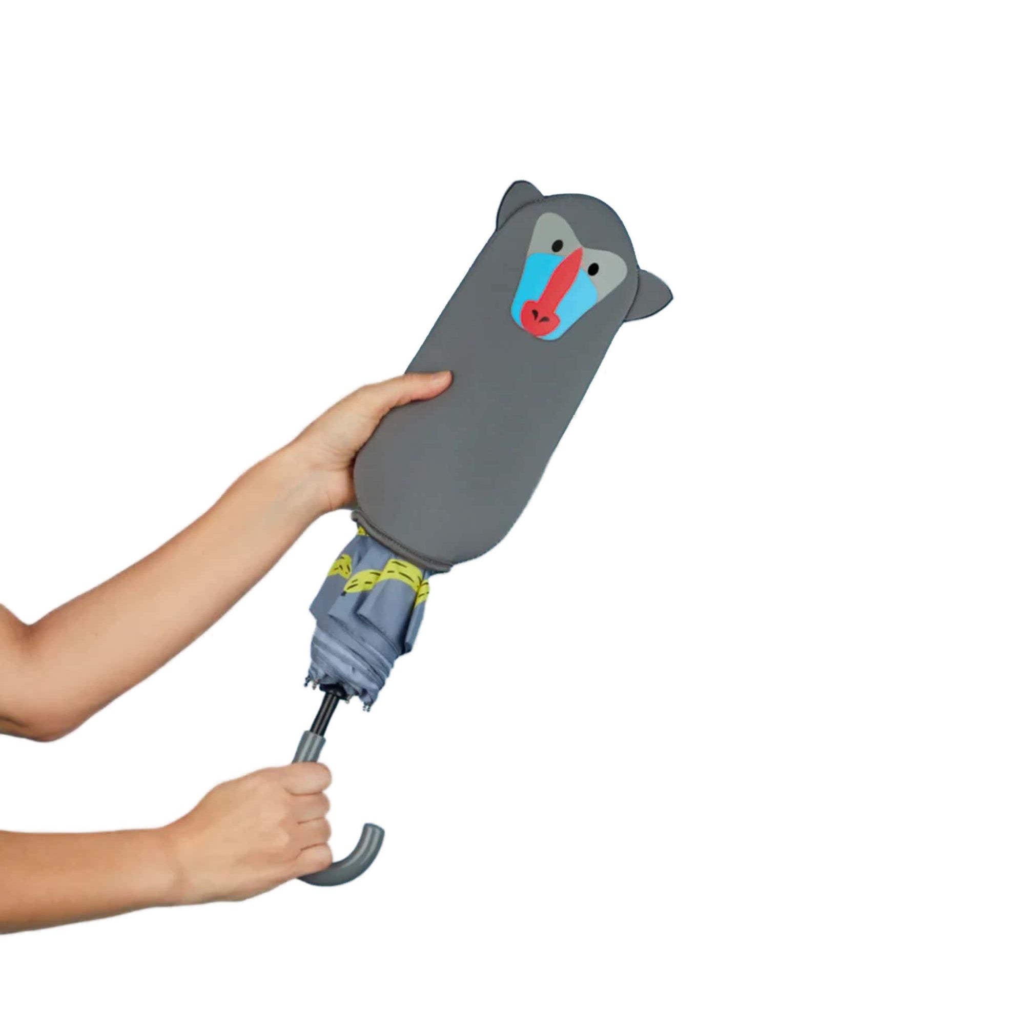 Embrace rainy days with a splash of fun! This umbrella features a lively banana pattern on the inside and comes with a soft neoprene case shaped like a full monkey. The handle completes the playful look, creating the illusion of a monkey ready to swing into action. A cheerful and practical companion that’s sure to bring smiles, rain or shine.