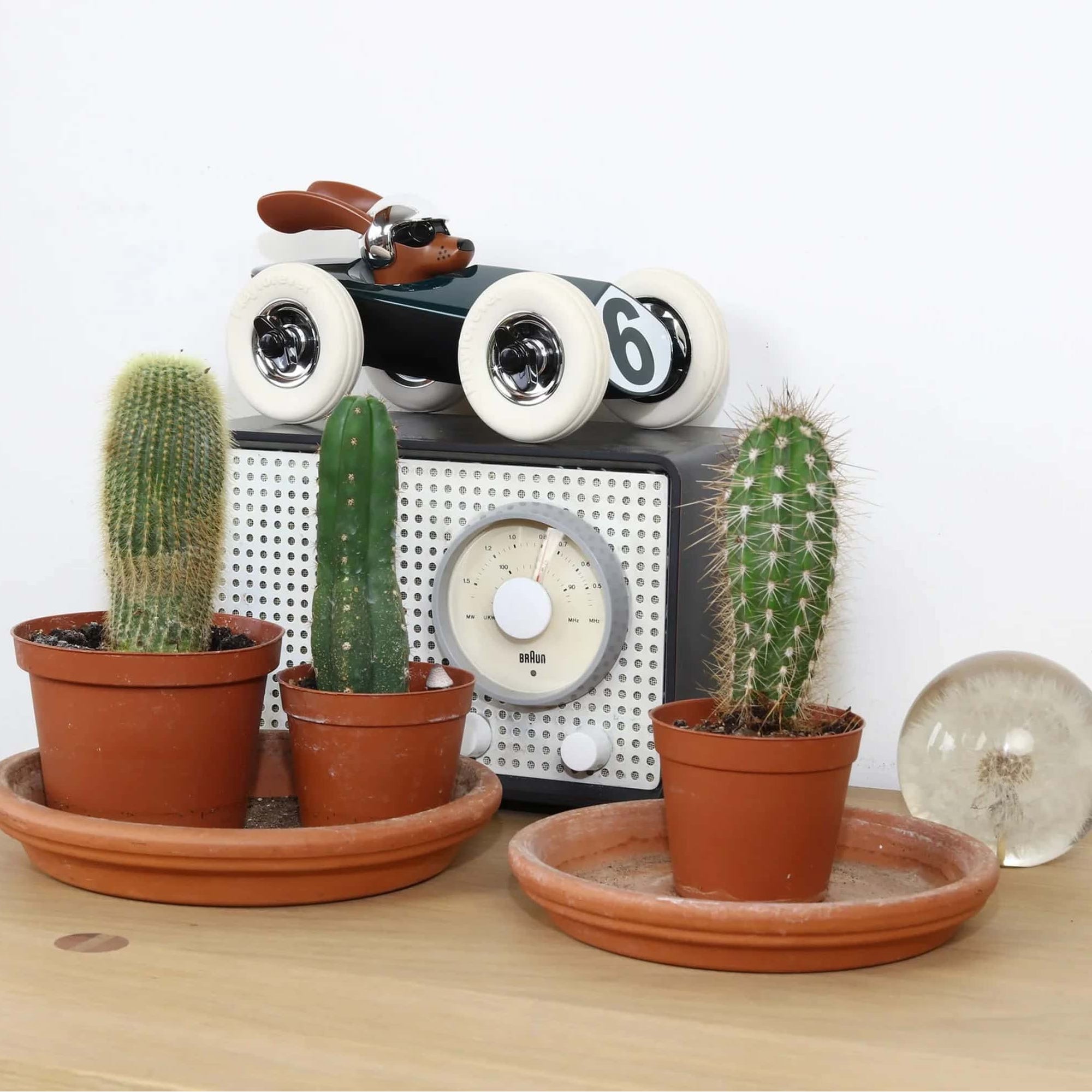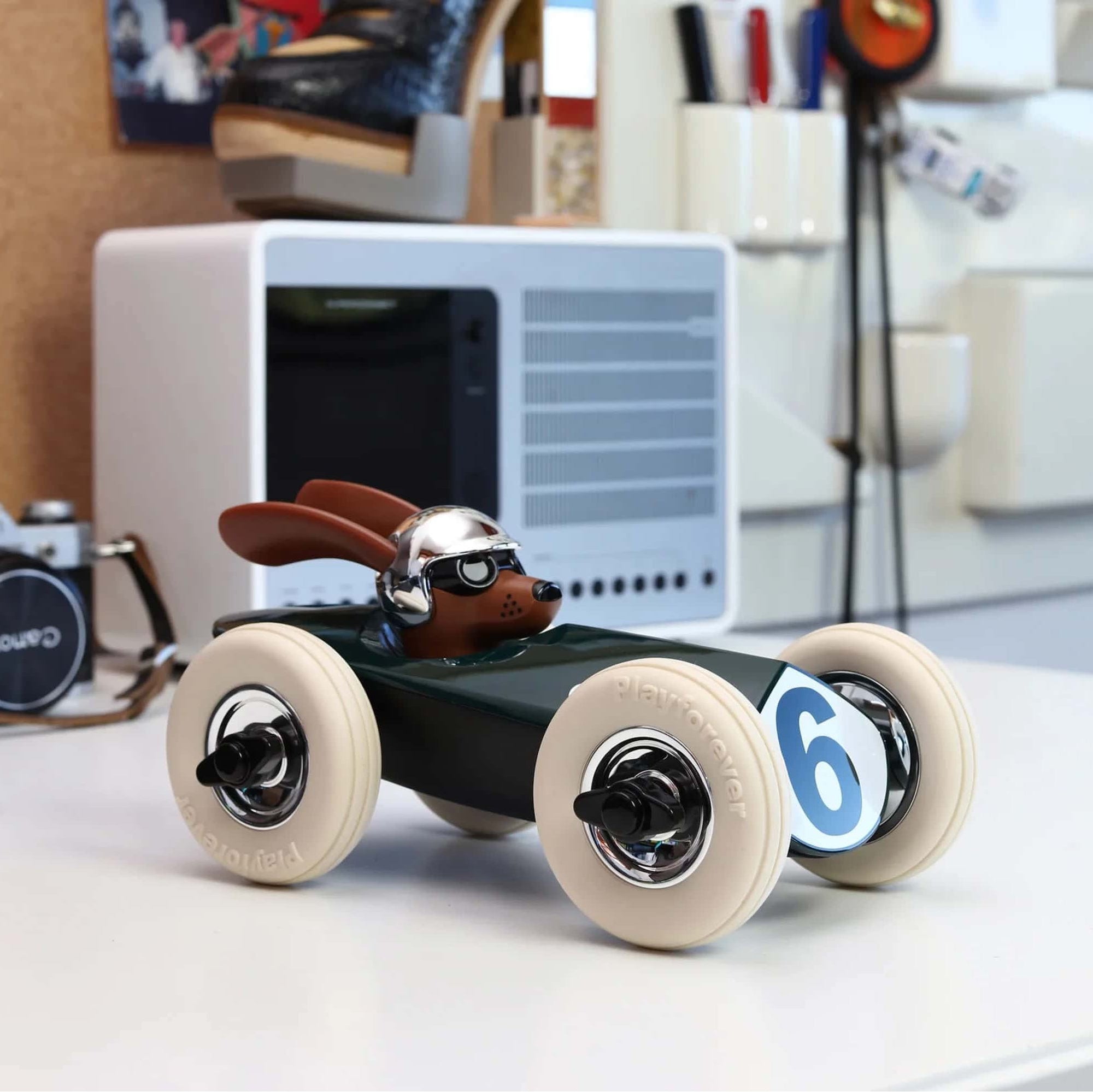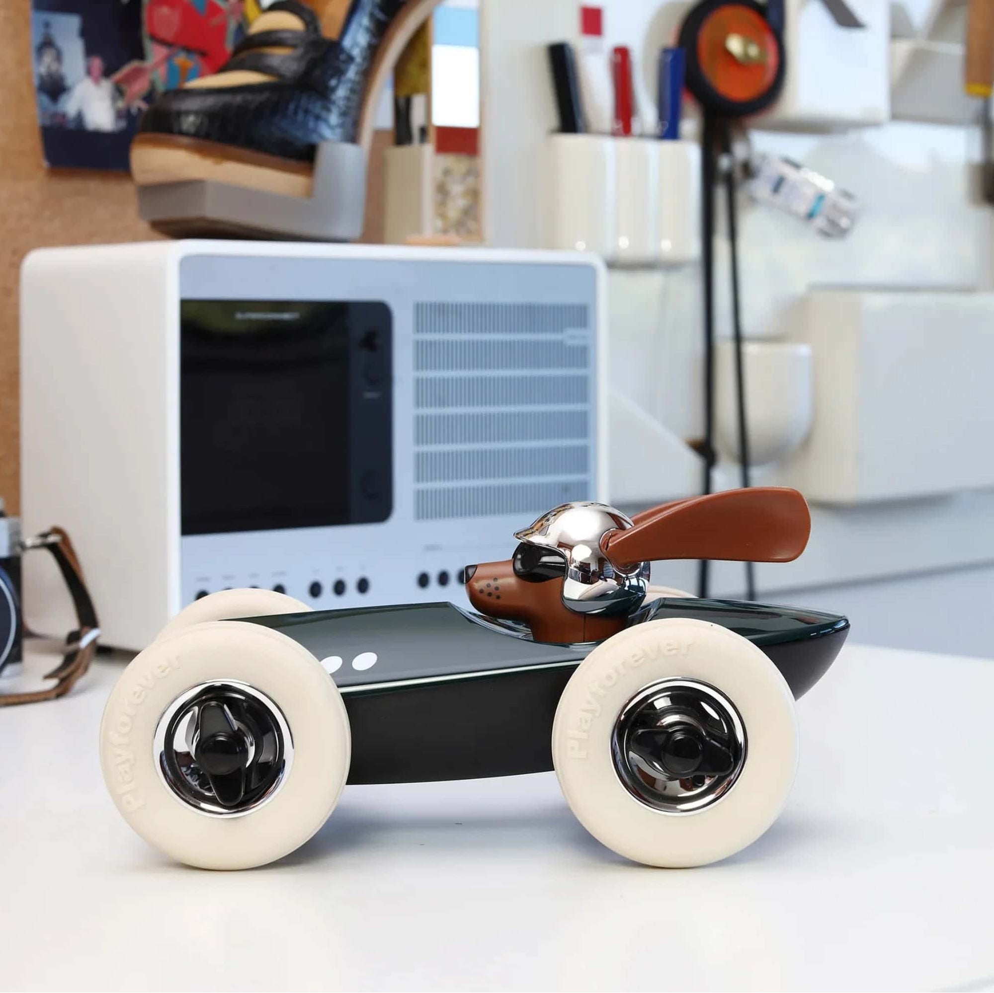 Grrrrreat fun is to to be had with the Rufus range of midi cars from  layforever. Patrick is a pooch who loves fast cars, so of course, red is the only colour he wants to be driving! His long ears make him look like he is flying past on the white rubber tyres of his red and black racer with his chrome helmet and rims gleaming. The original Rufus was specially designed in the UK for Hugo Boss and then expanded into it's own range under the Playforever banner. Rufus Midi's are made from heavy duty plastic and solidly constructed in chic nostalgic styles to look just as good on the shelf as they do at play.