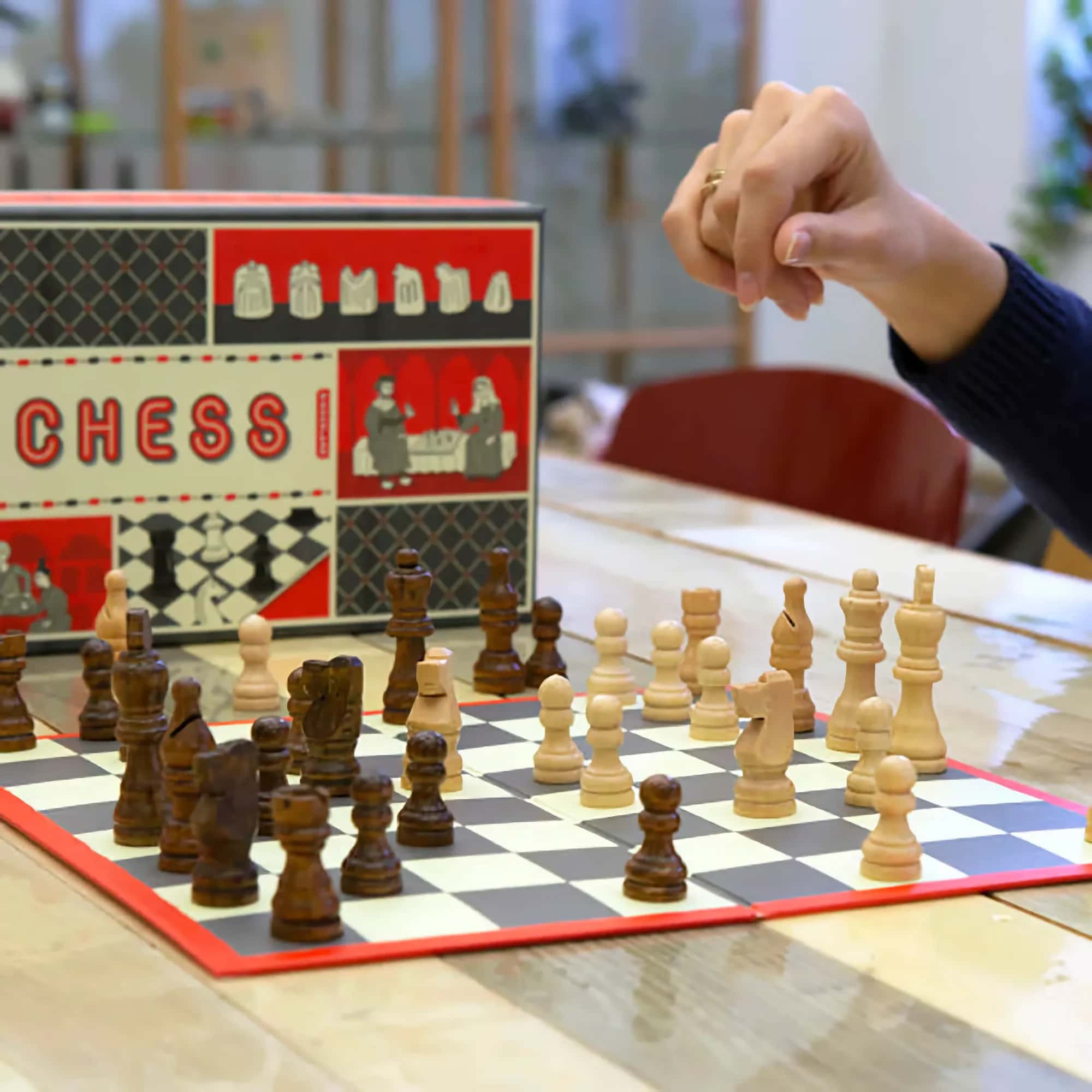 Kikkerland Chess An ancient strategy game with roots tracing back to the 3rd century, chess has captivated players for millennia. This timeless classic challenges you to outmaneuver your opponent and achieve checkmate by capturing the king. Perfect for developing tactical thinking and strategic planning, it remains one of the world's most celebrated games of intellect and competition.