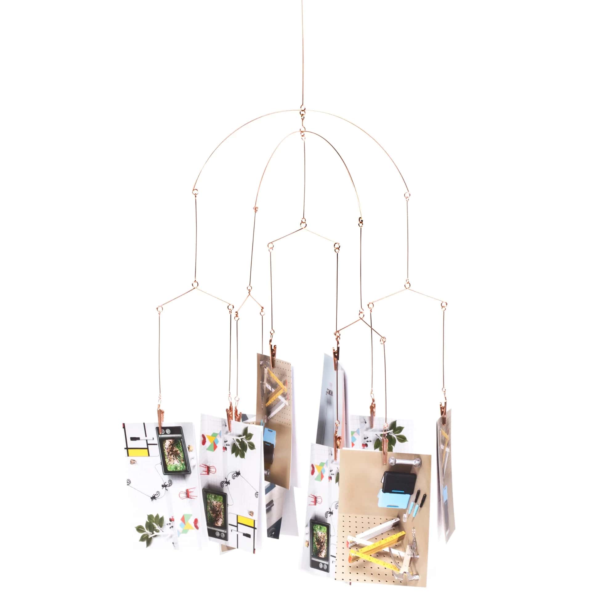 This copper plated steel mobile photo hanger comes with 10 alligator clips and holds as many photos.