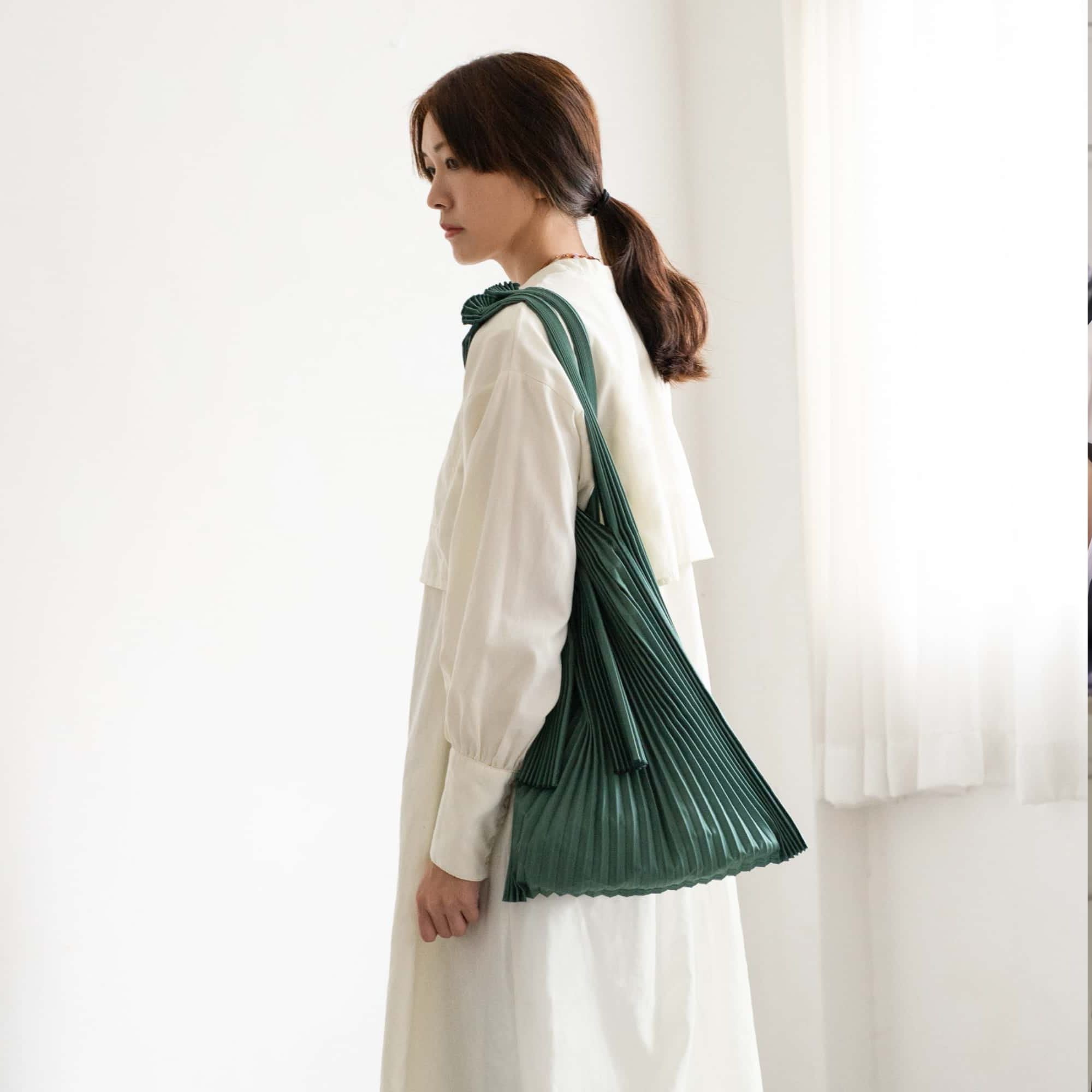 PLECO bags are made with two eco friendly fabrics. One is plant-origin "polylactic acid(PLA)" which naturally decomposes into soil and is non-toxic when burned. The other is "recycled polyester(recycled PET)" which enables various textile expressions. We set the Japanese traditional mild-toned colors which help the bags fit well with various people and situations. Multiple sizes and forms also enable both kids and adults to carry.