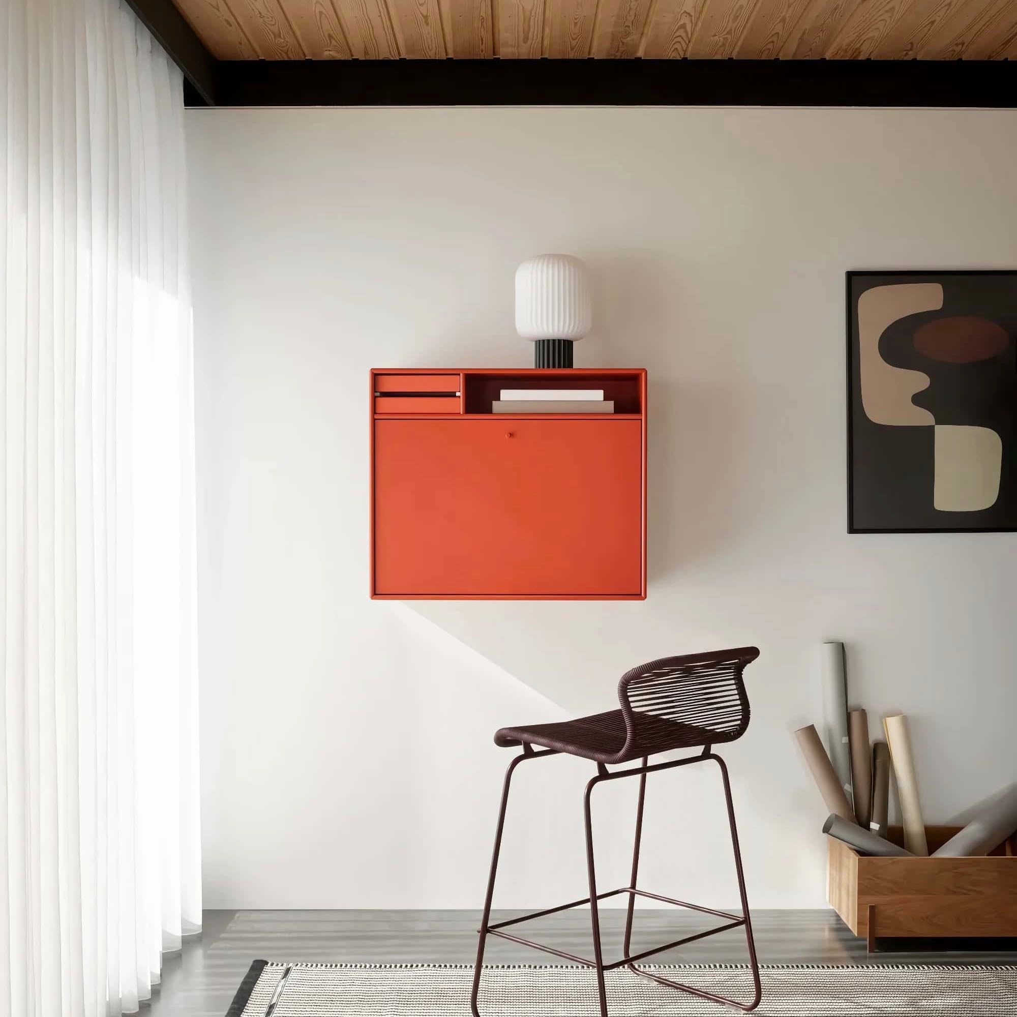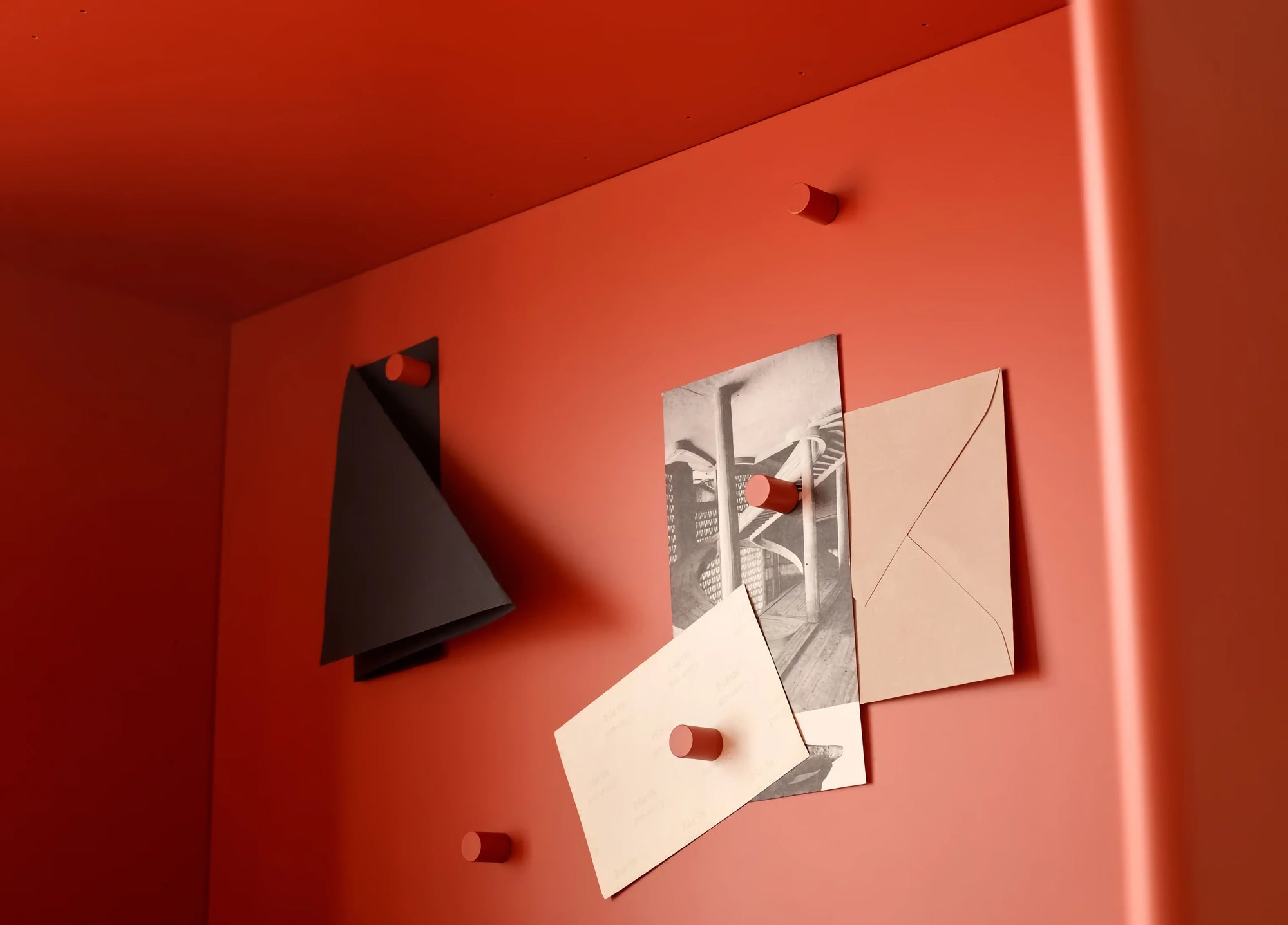 STUDIO is equipped with a magnetic noticeboard that comes with five magnets lacquered in the same colour as the module. At the top, the secretary has a shelf and two small trays for your office supplies that you can easily take out when necessary. STUDIO is a compact and versatile work station – ideal for the multifunctional room.