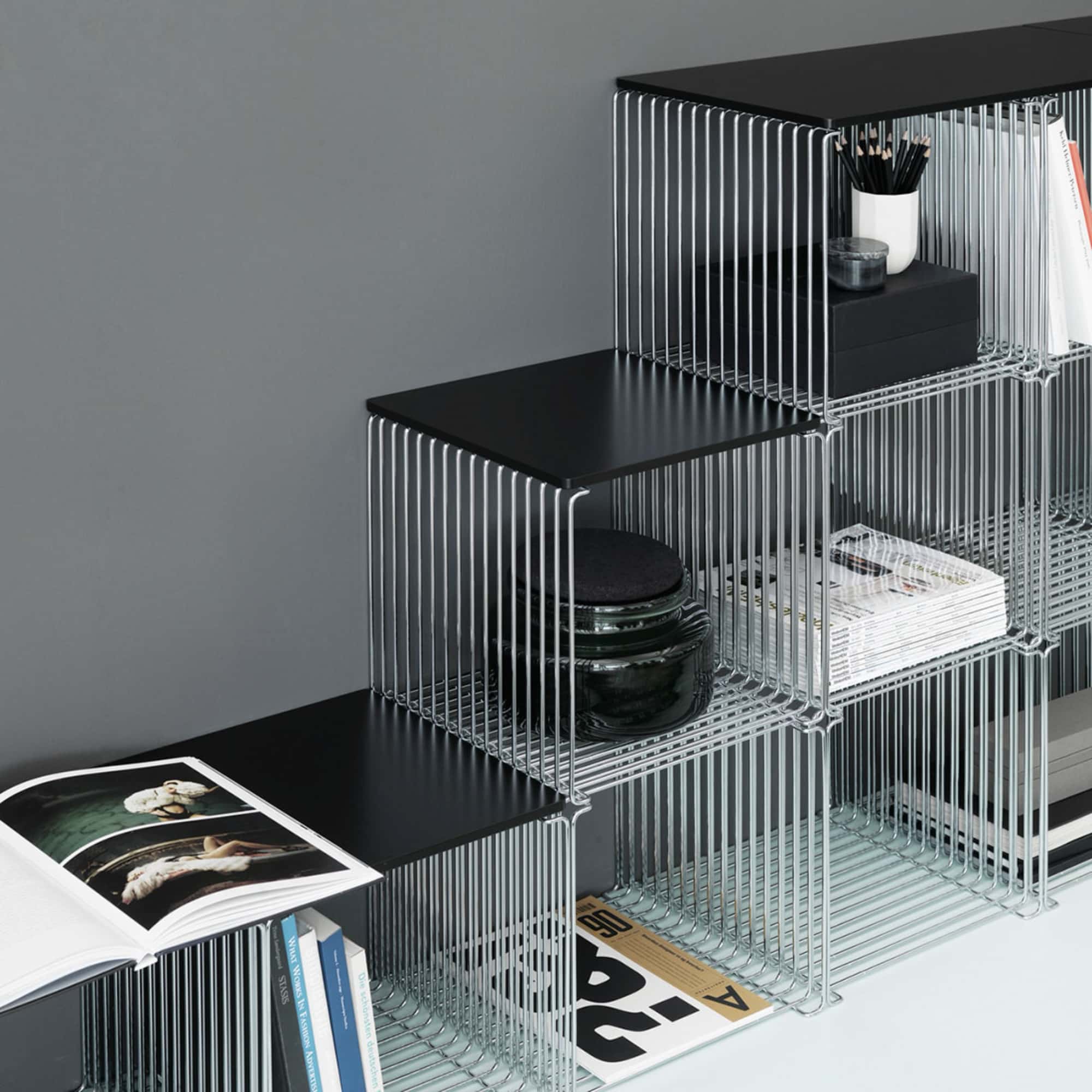 Top plate for Panton Wire in the color Anthracite.Ideal if the module is to be used as a table, bedside table or other piece of furniture where you want to be able to place something on top.Panton Wire top plates come with 4 small rubber clamps that secure the top plate against slipping.This plate fits 1 Panton Wire module.