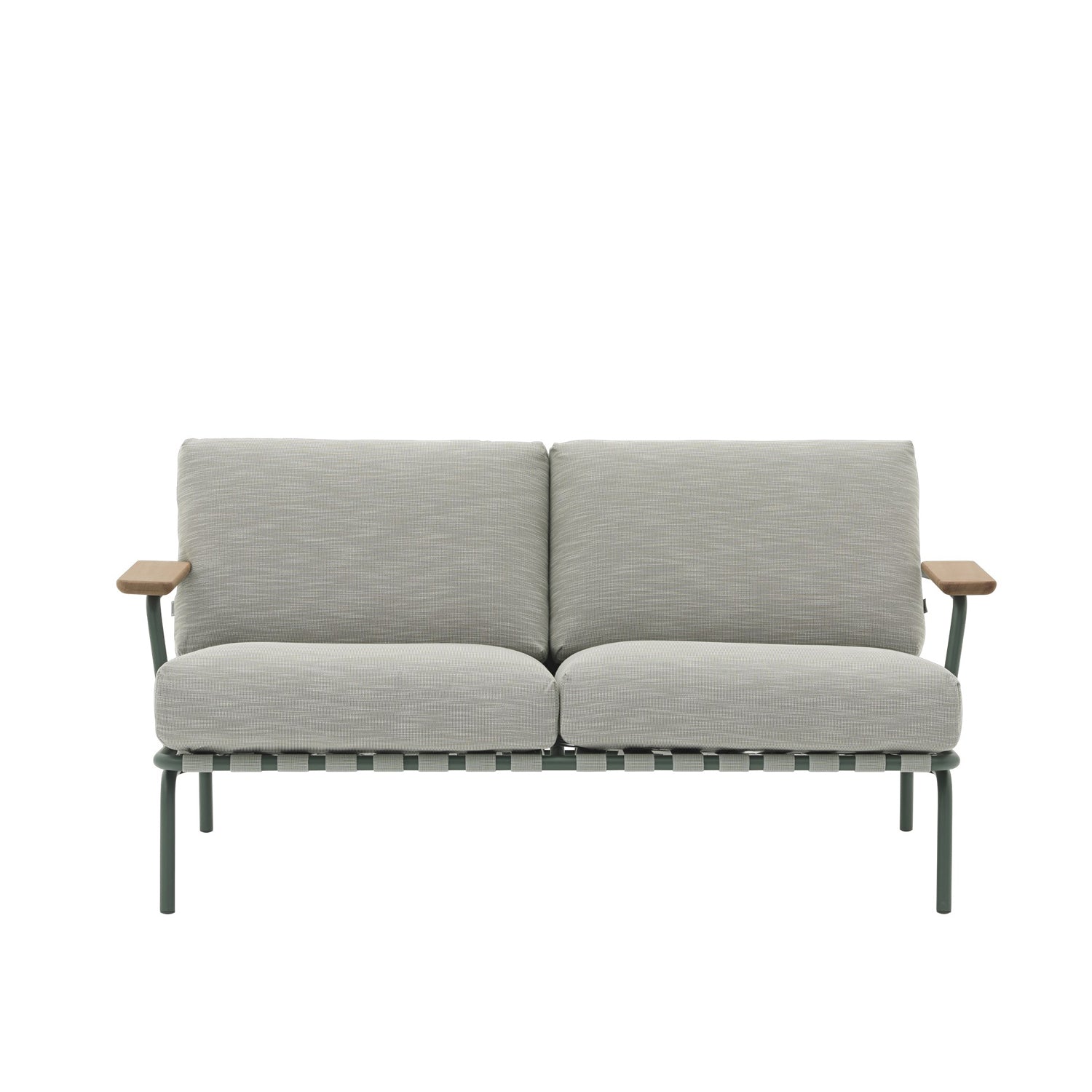 The Muuto Settle 2-Seater Sofa seamlessly combines the essence of elegance and robust outdoor design, promising an inviting and comfortable experience throughout your days spent outdoors. Engineered with discernment, the sofa features an airy yet durable steel frame, intricately detailed with visible belts that capture the eye from every angle. The armrests, crafted from FSC™-certified sapele mahogany wood, offer a warm, natural touch that enhances the tactile appeal and overall aesthetics.
