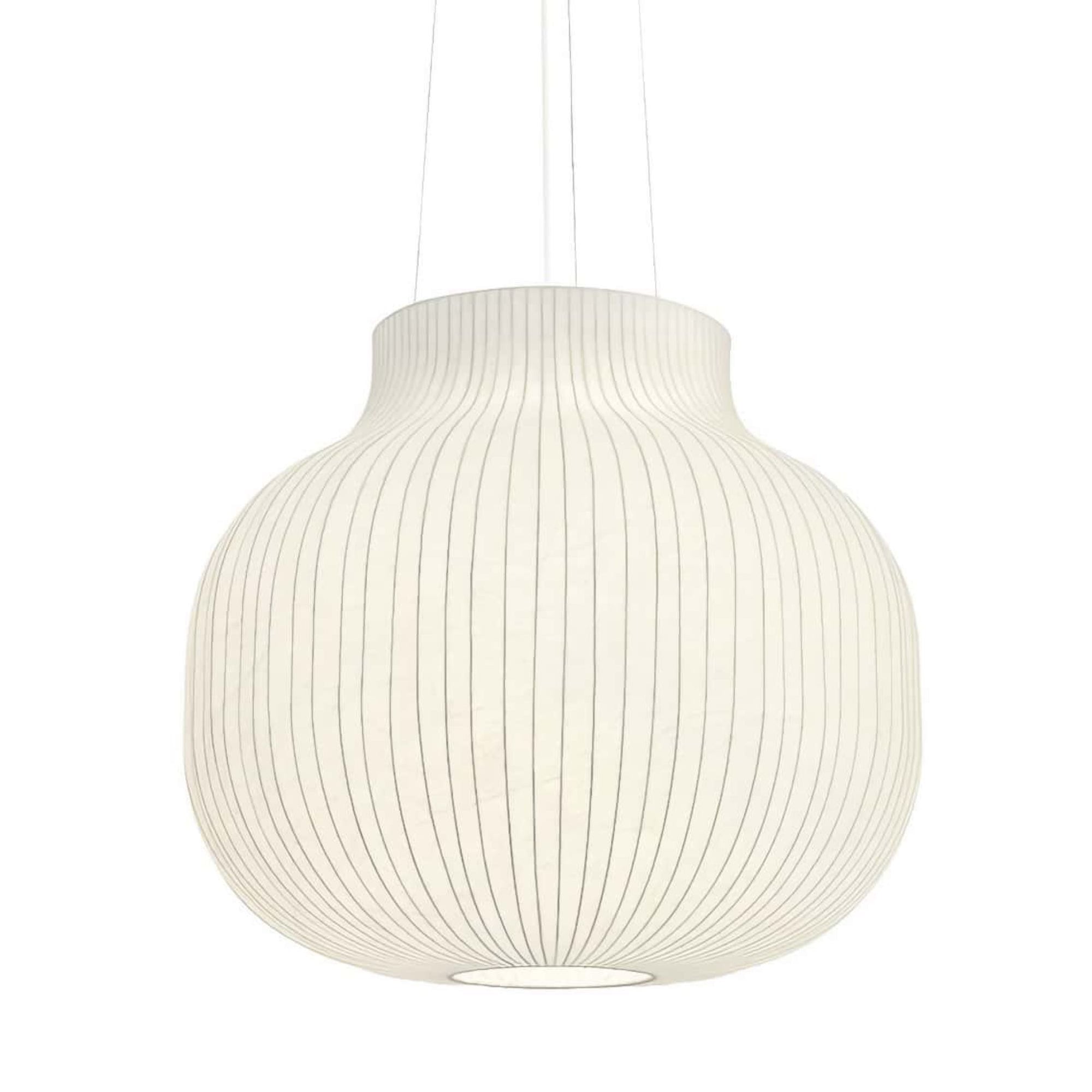 The Strand Pendant Lamp is designed with soft, playful forms for a modern expression. The design provides both diffused lighting and direct lighting, the latter through its top and bottom opening. The design is made in a sprayed cocoon material that consists of tiny strands for a complex, intriguing structure that, paired with its modern form, gives the Strand Pendant Lamp an almost cloud-like appearance. With its cocoon material filtering light through for a warm, comfortable glow, the Strand Pendant Lamp hovers lightly in space, bringing comfort, harmony and a refined sensitivity to any room.