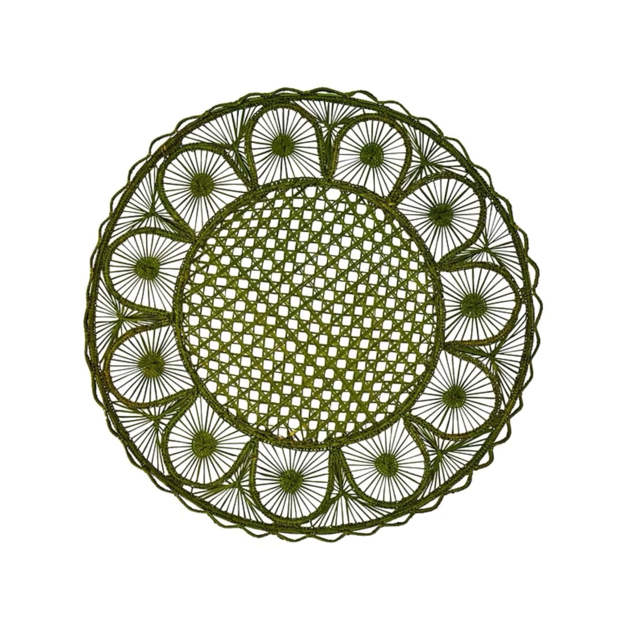 Handmade in Colombia. These stunning woven placemat are made by artisans from Usiacurí, a vibrant town on the Caribbean coast of Colombia. Using a traditional technique that has been passed down through generations, the process begins by shaping a wireframe, over which they weave intricate patterns with Iraca palm. The result is an exceptionally detailed work of art that will elevate any table setting.