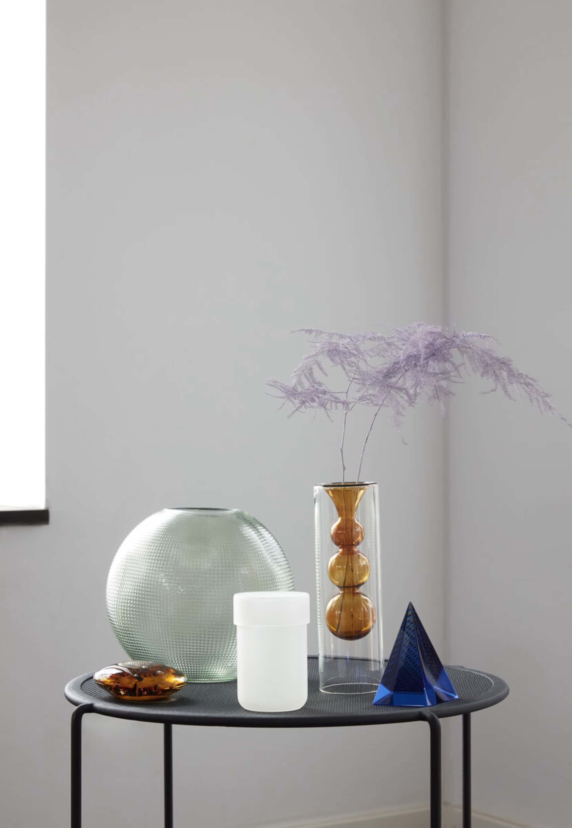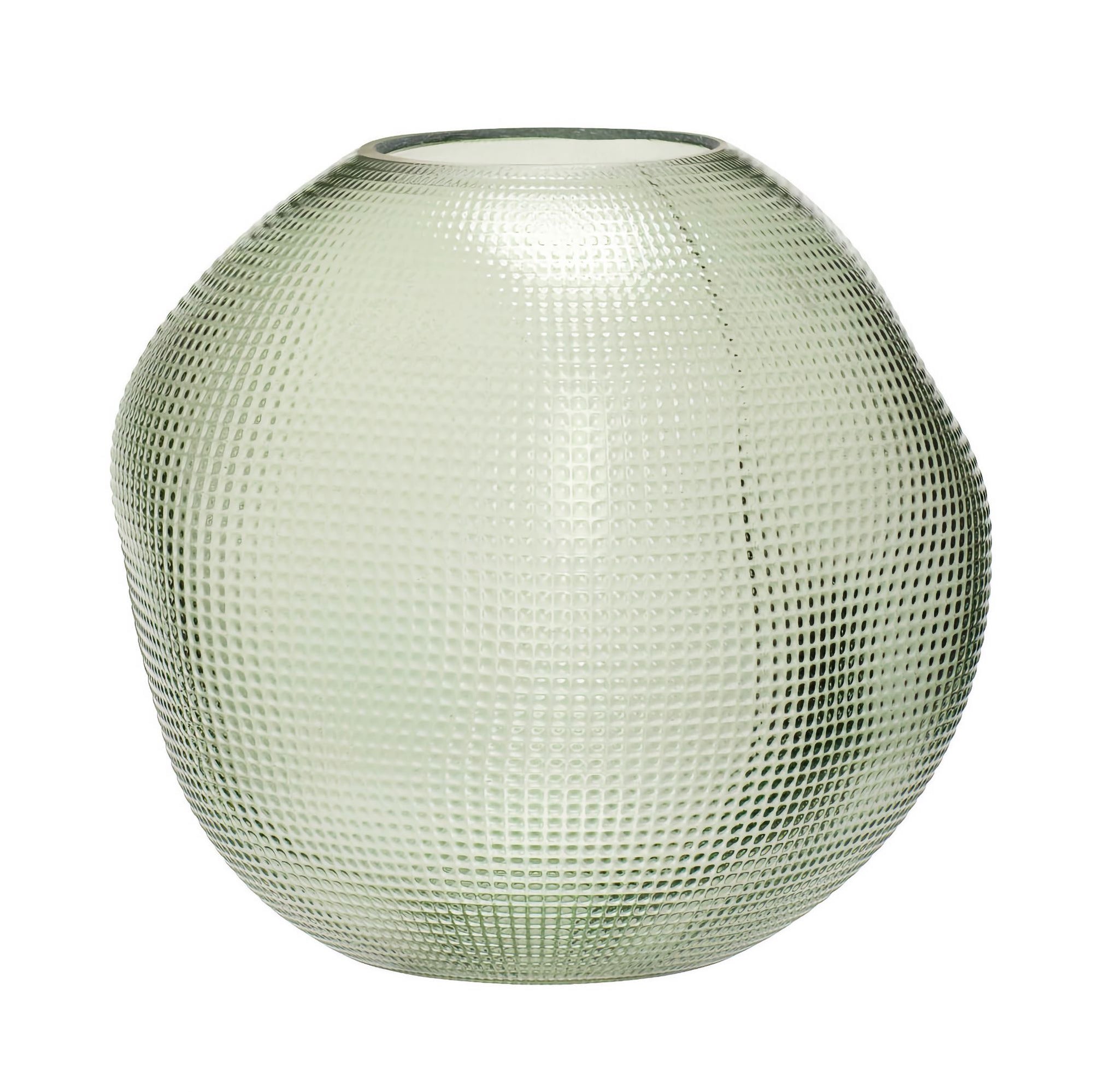 This vase is made from glass and comes in a light green colour. Its organic shape gives it a unique and modern look, while the structure of the vase, creates an additional stylish detail. This product is handmade and may therefore variate.