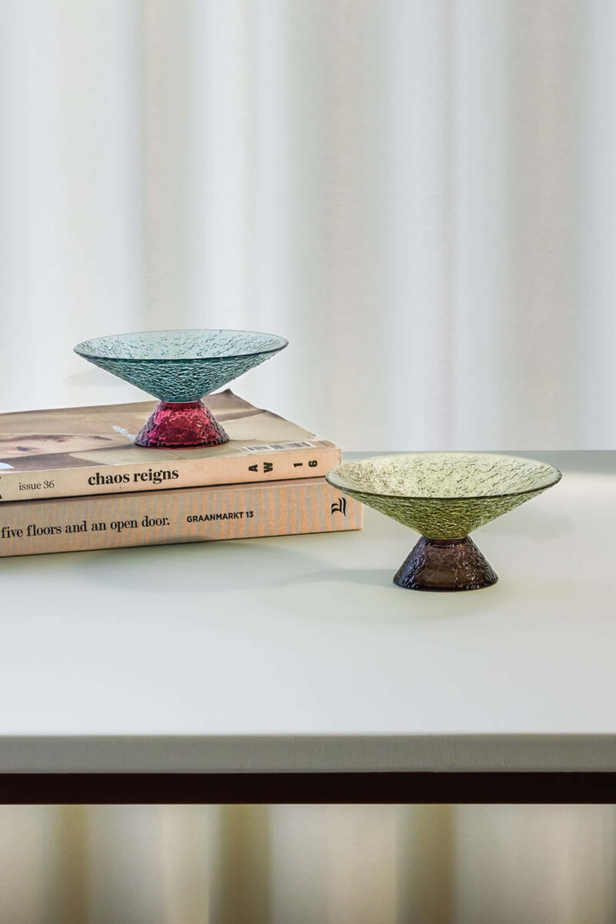 Handmade and crafted with a textured surface, these bowls offer will elevate your everyday trinkets. Its versatile design allows the bowl and foot to be separated, mixed, and matched with other pieces in the series. This means you can create unique combinations and colour schemes to suit your mood and taste. Whether you use this red and blue Bonbon bowl in the bathroom for your favourite jewellery, or display it on a shelf as a decorative accent, this bowl will make a statement. The Bonbon Bowls are food proofed.