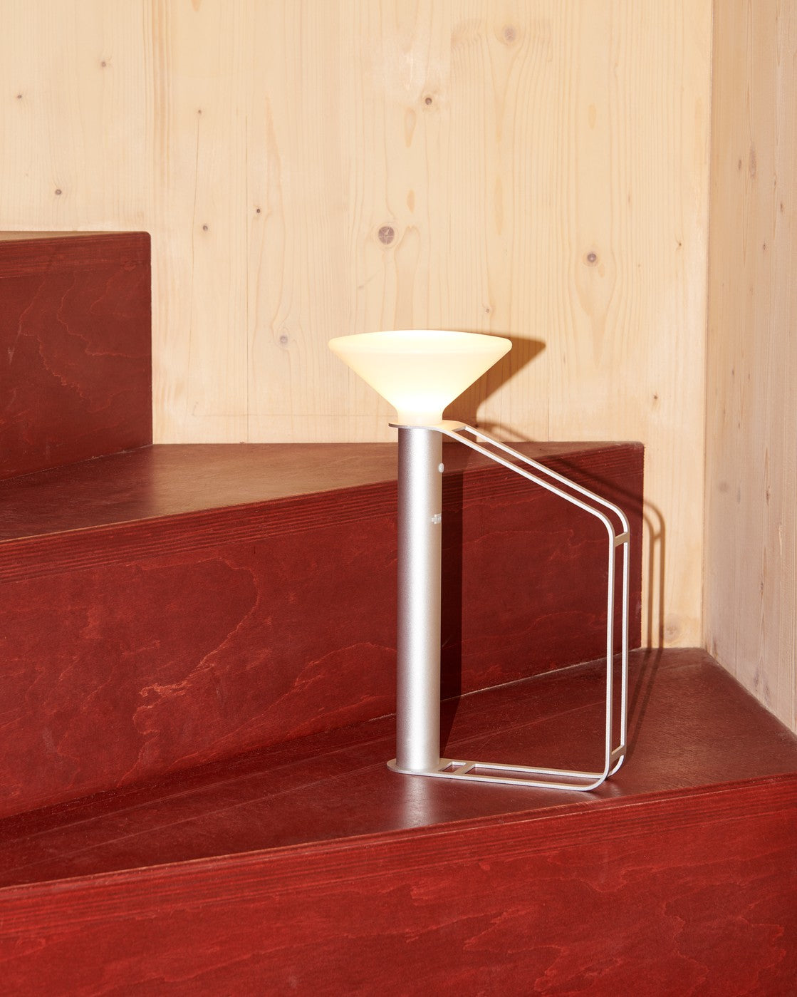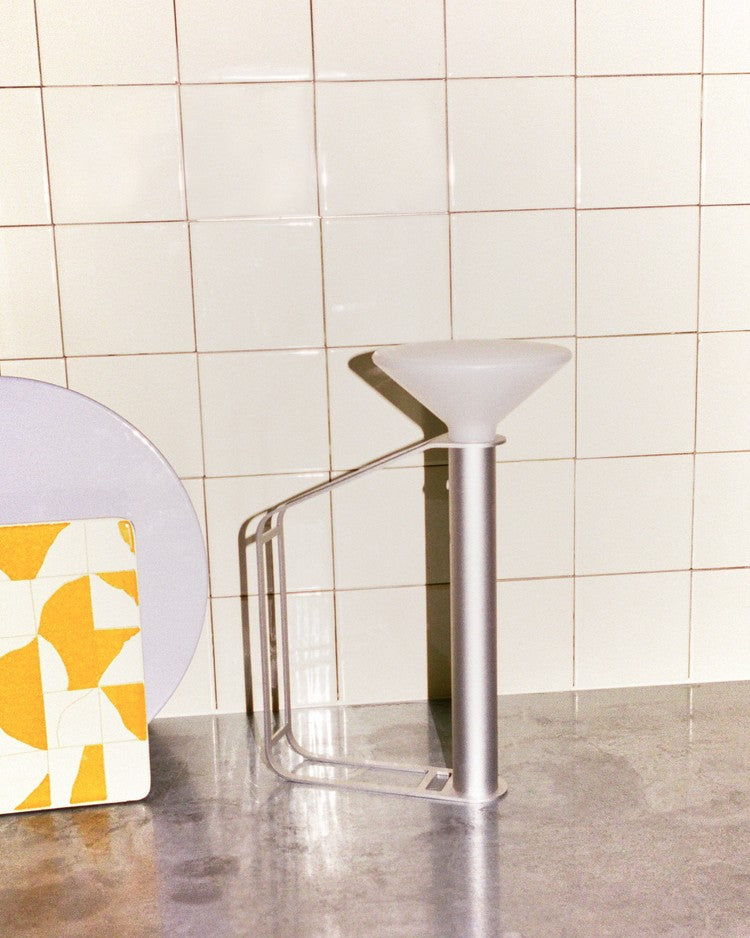 Piton is an untraditional take on the battery-powered portable lamp, playfully referencing the archetypal flashlight. Refined anodized extruded aluminum enhances its elegant form and distinct functionality inspired by tools used for mountain climbing. It is a versatile ambient light with 6 hours of battery life on 100% brightness and 13,5 hours on 50% brightness that can be used lying, standing, tilting on a shelf or suspended, depending on the space or spot you want to illuminate, effortlessly moving between indoors and outdoors.