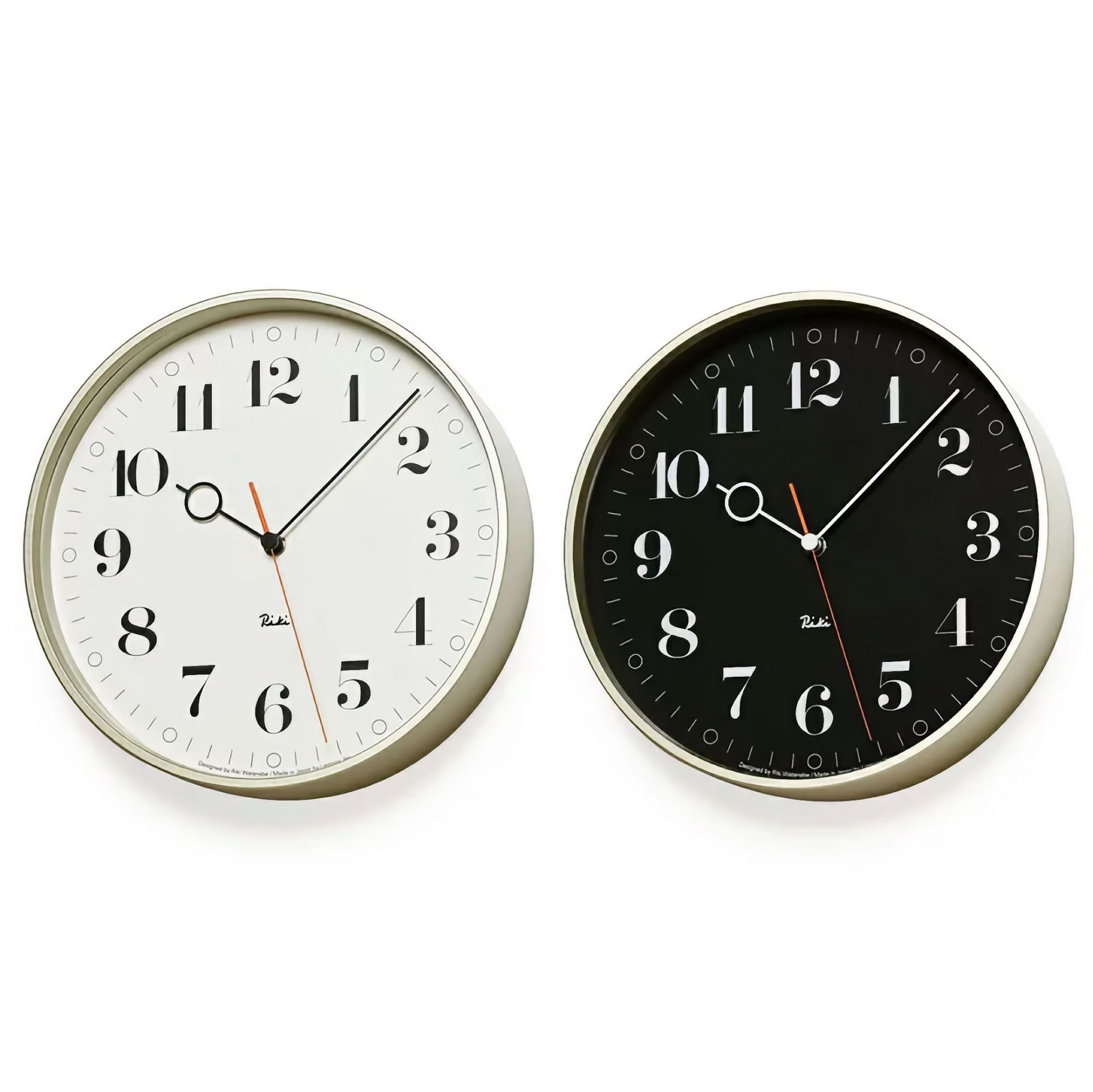Riki Ring by Lemnos is a clock designed by Riki Watanabe in 1981. Lots of decorative details in it! The Riki Ring is a clock that draws attention with its custom hands (the second hand moves in a smooth motion). It has large numerals and a delicate hour index.