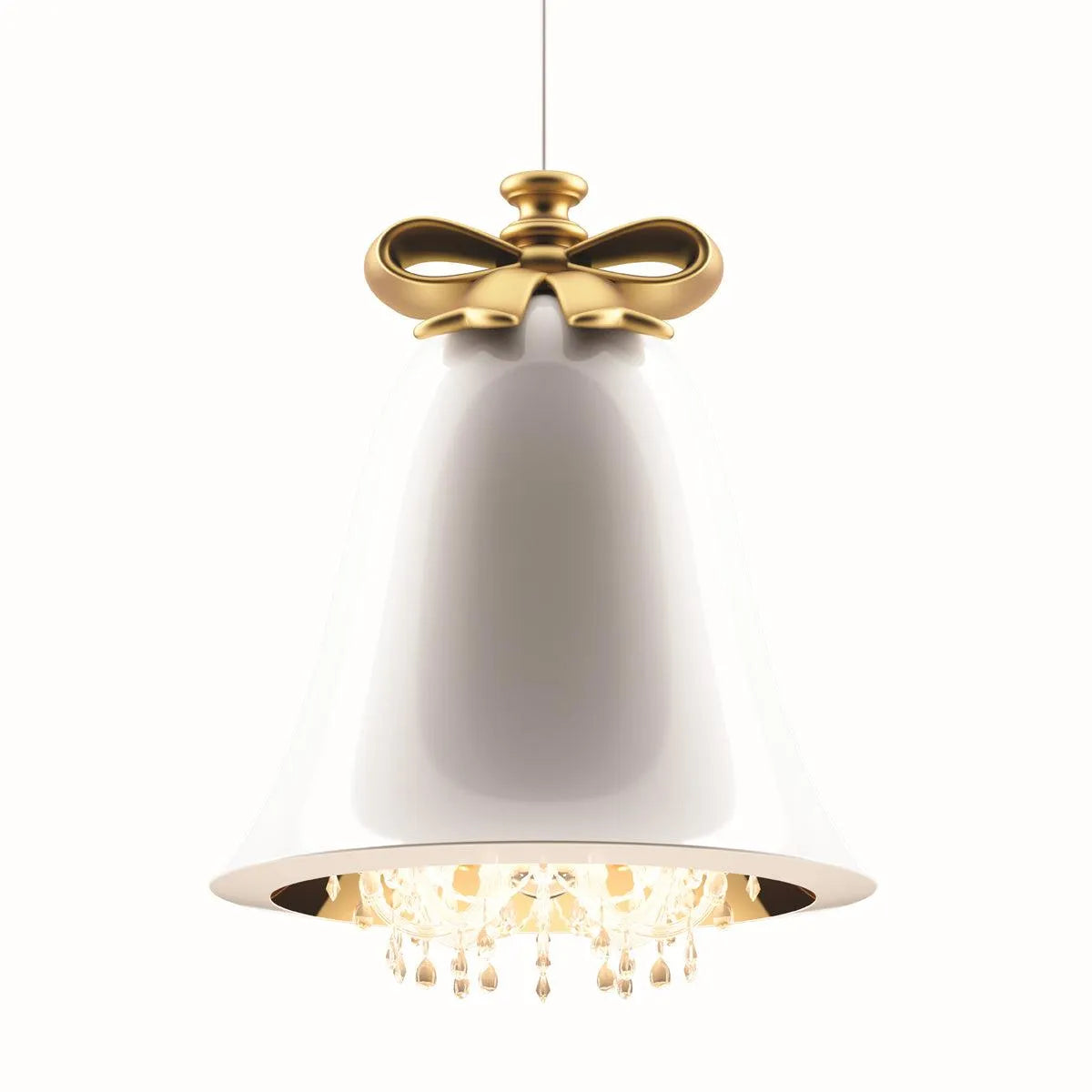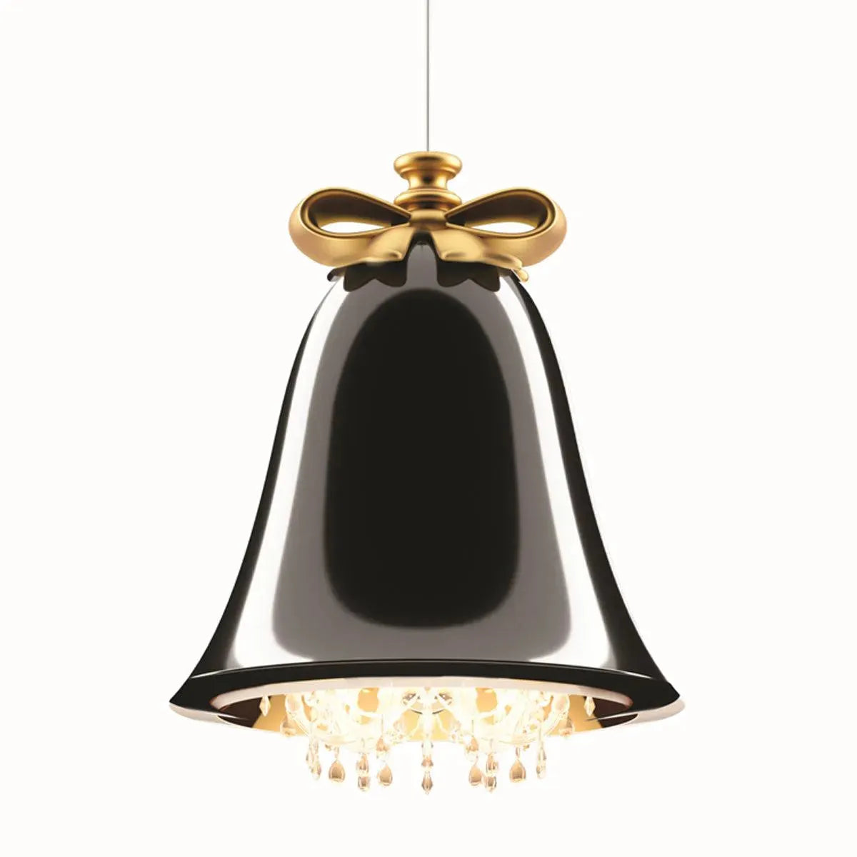 For centuries this object, a symbol of celebration, has been used to bring people together: Mabelle was born with this idea, and it is the focal point of every room. The sinuous shapes of the bow and the dome, combined with the chandelier, set inside the bell, create an icon with a strong appeal on our memory and complete the environment with a refined note.