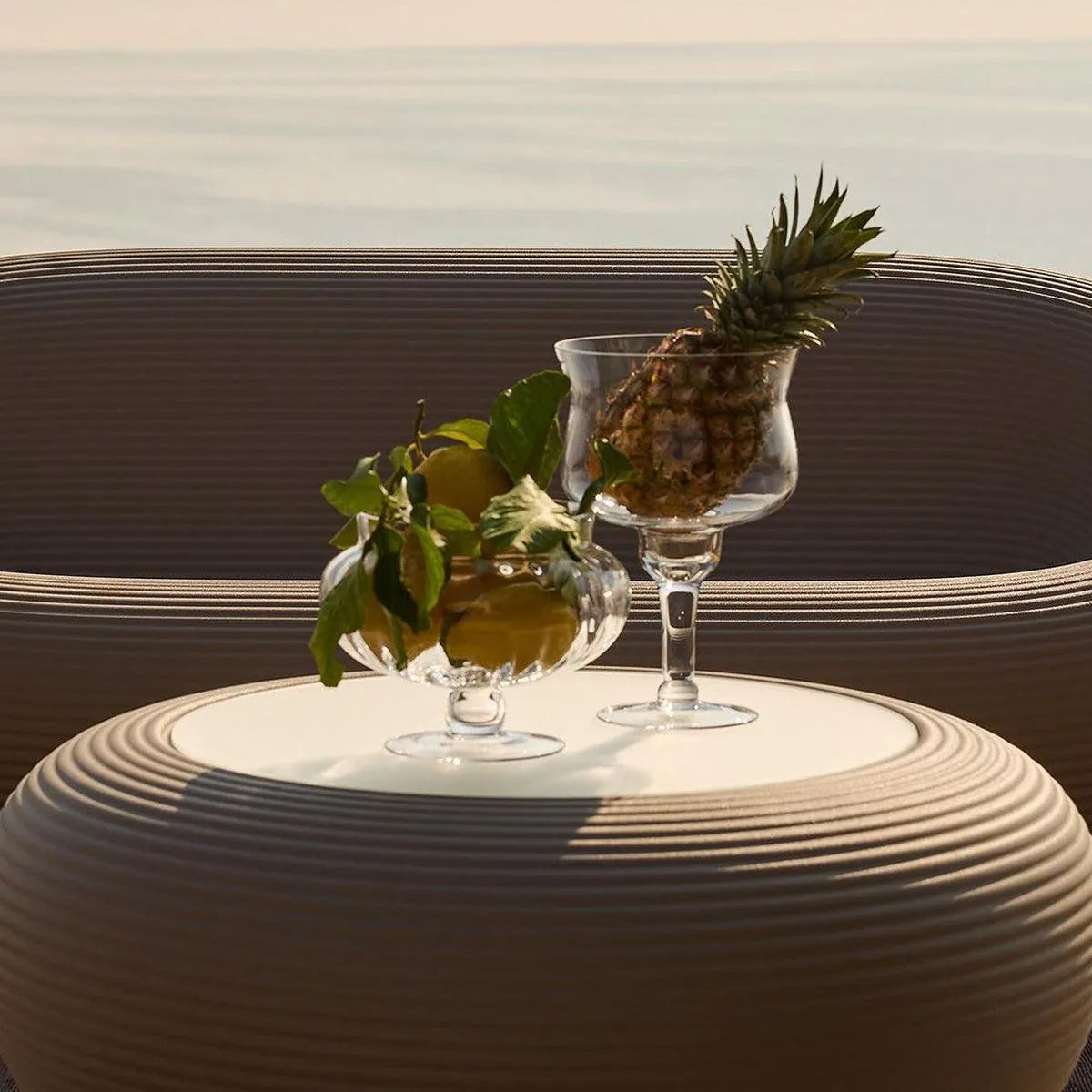 The Nami Sofa is characterized by a linear shape in the center that becomes circular at the two ends. In the middle part of the sofa there are two channels for water reflux. Allows seating of 2-3 people. Available in six colours, three of these have a uniform colour, the other three are obtained from recycling and mixing materials with 2-3 different colour tones.