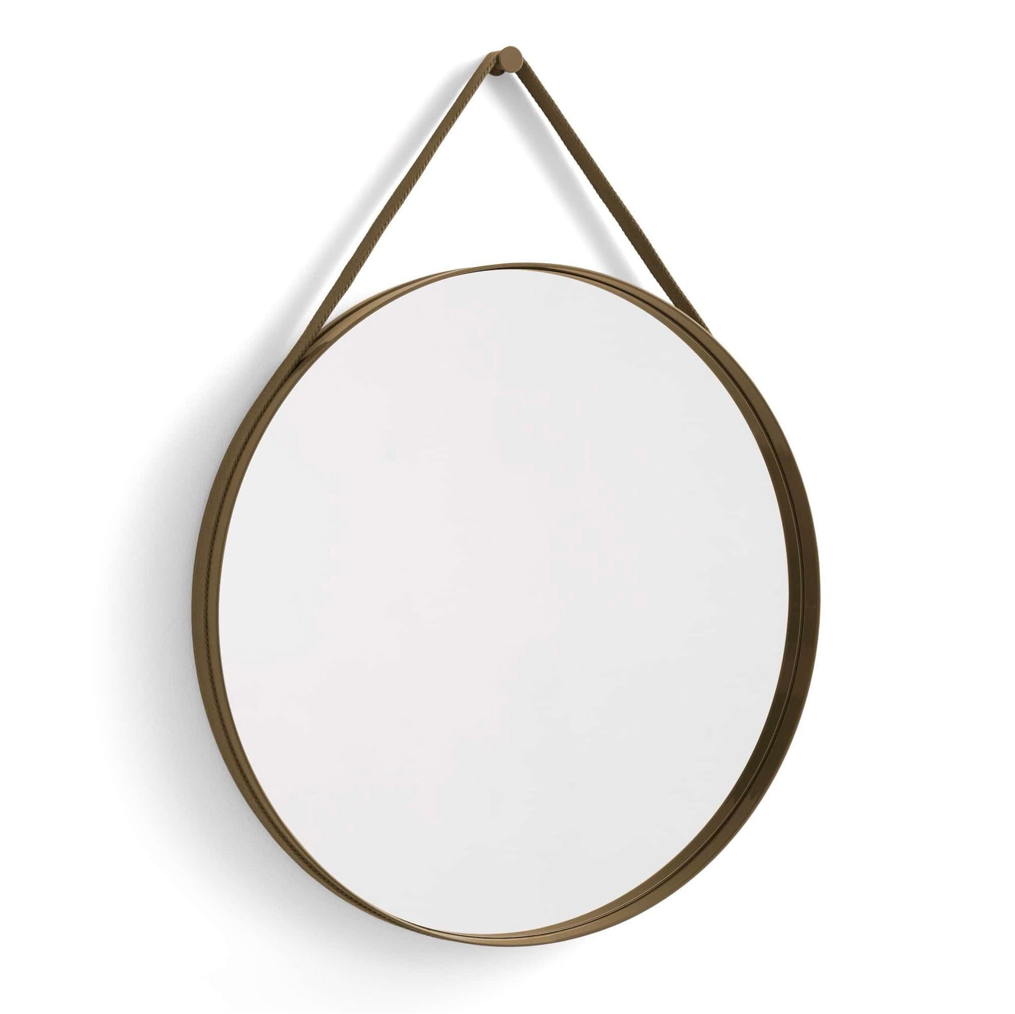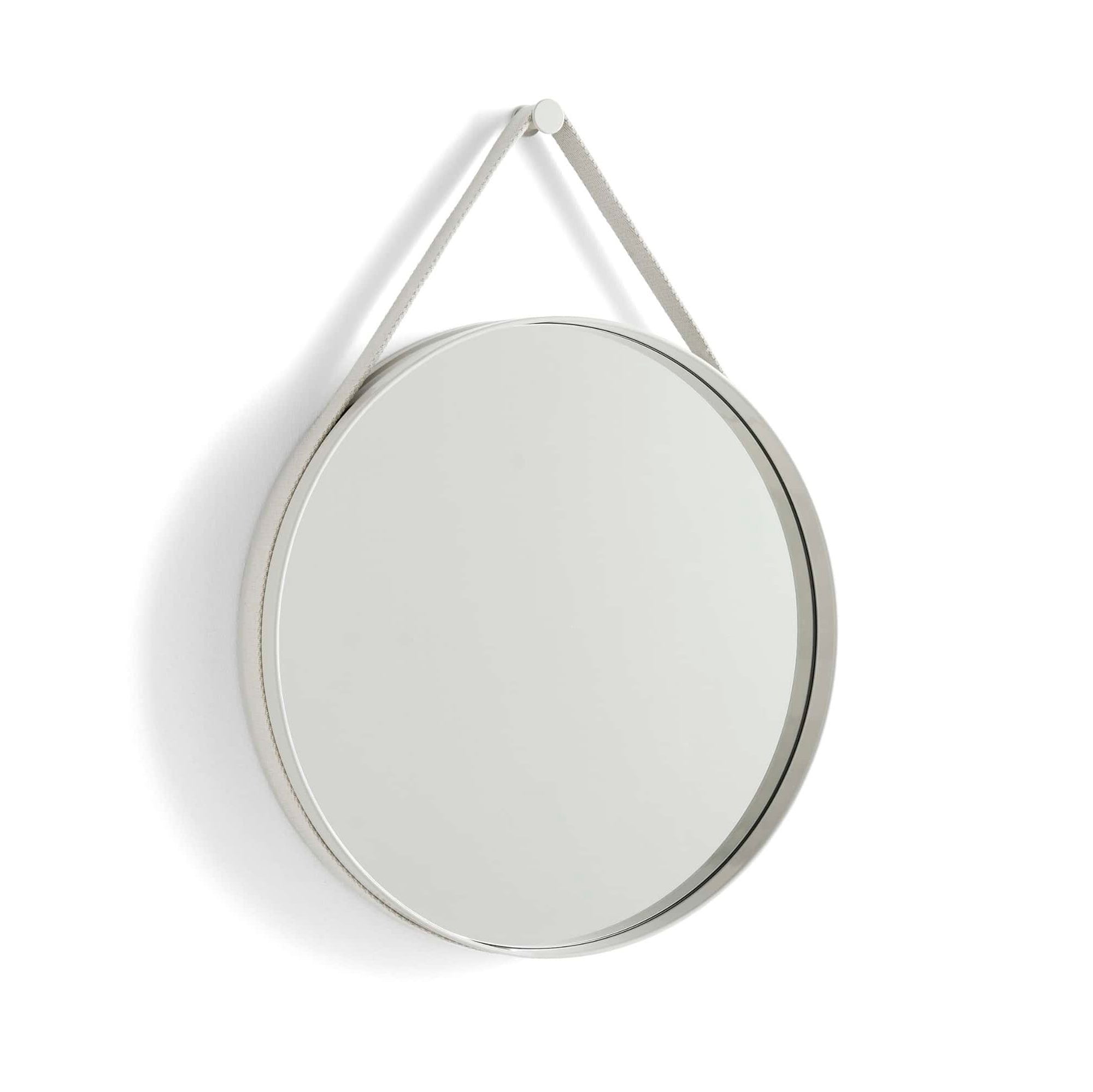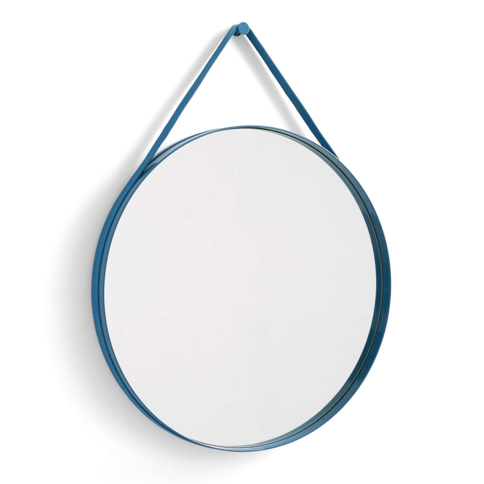 With a functional and minimalistic design, Strap Mirror features a subtle groove around the edge that contains a woven strap for mounting the mirror on the wall. Made in powder-coated steel with a high gloss finish in a variety of colours, Strap Mirror’s clean circular design makes it ideal for hanging in bathrooms, bedrooms, and entrance halls.