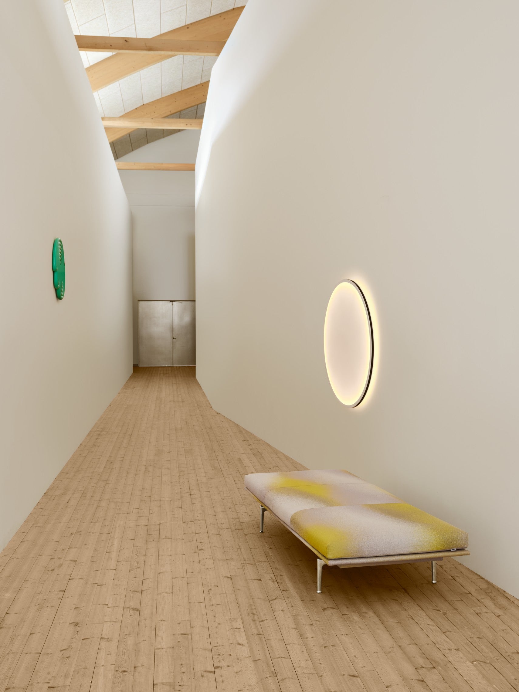 Calm Wall Lamp offers a new perspective on lighting altogether, with a rare blend of atmospheric lighting and sculptural qualities. While it is inherently functional, it is also a work of art in its own right. Its textile surface gently diffuses the light, forming a gradient from its edge to the central light source. The ability to adjust the lighting temperature allows the user to create calm, atmospheric light according to their own preferences and needs. A matte rubber band frames Calm Wall Lamp, lending a crisp edge to the softness of the organic design.