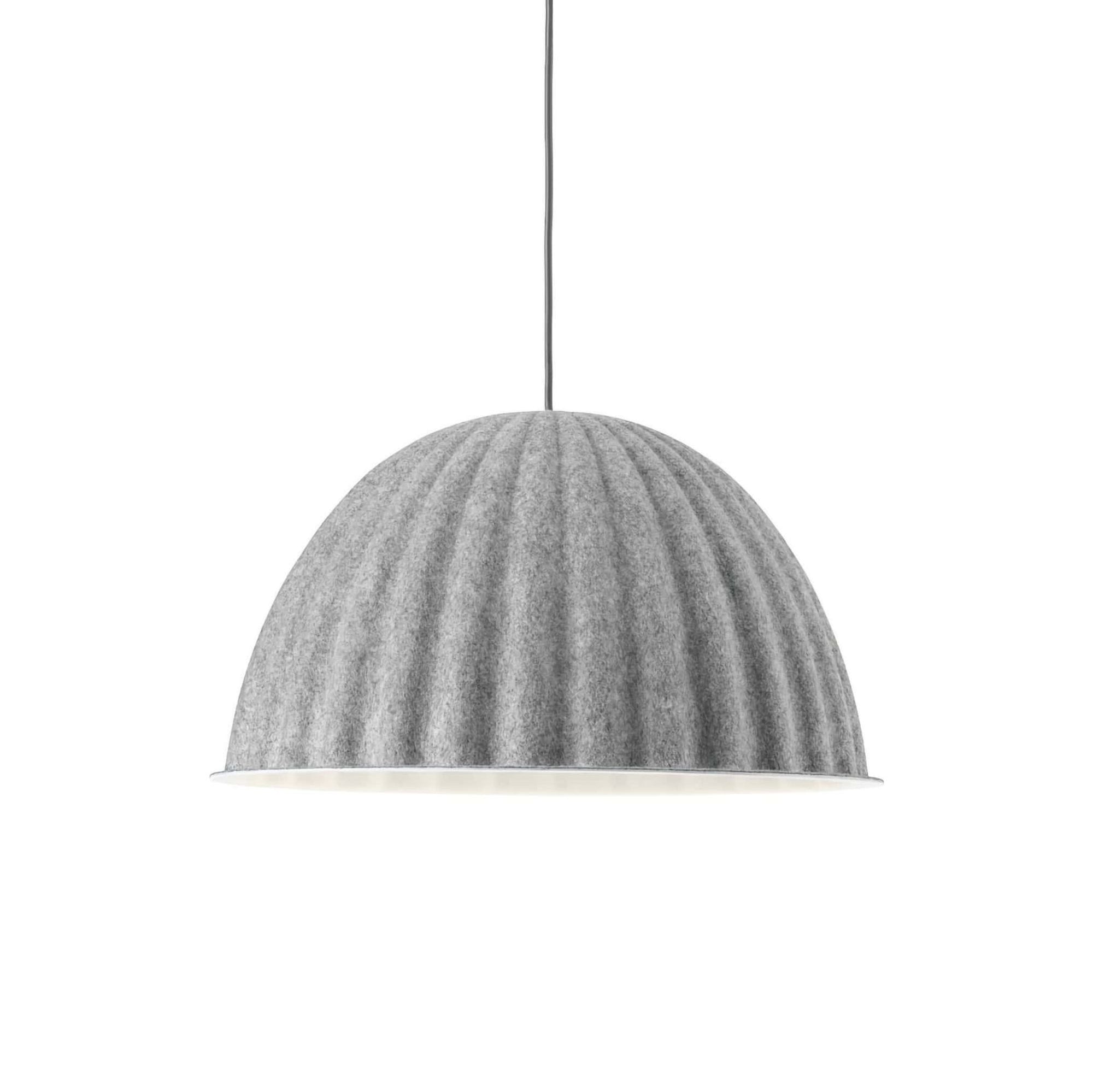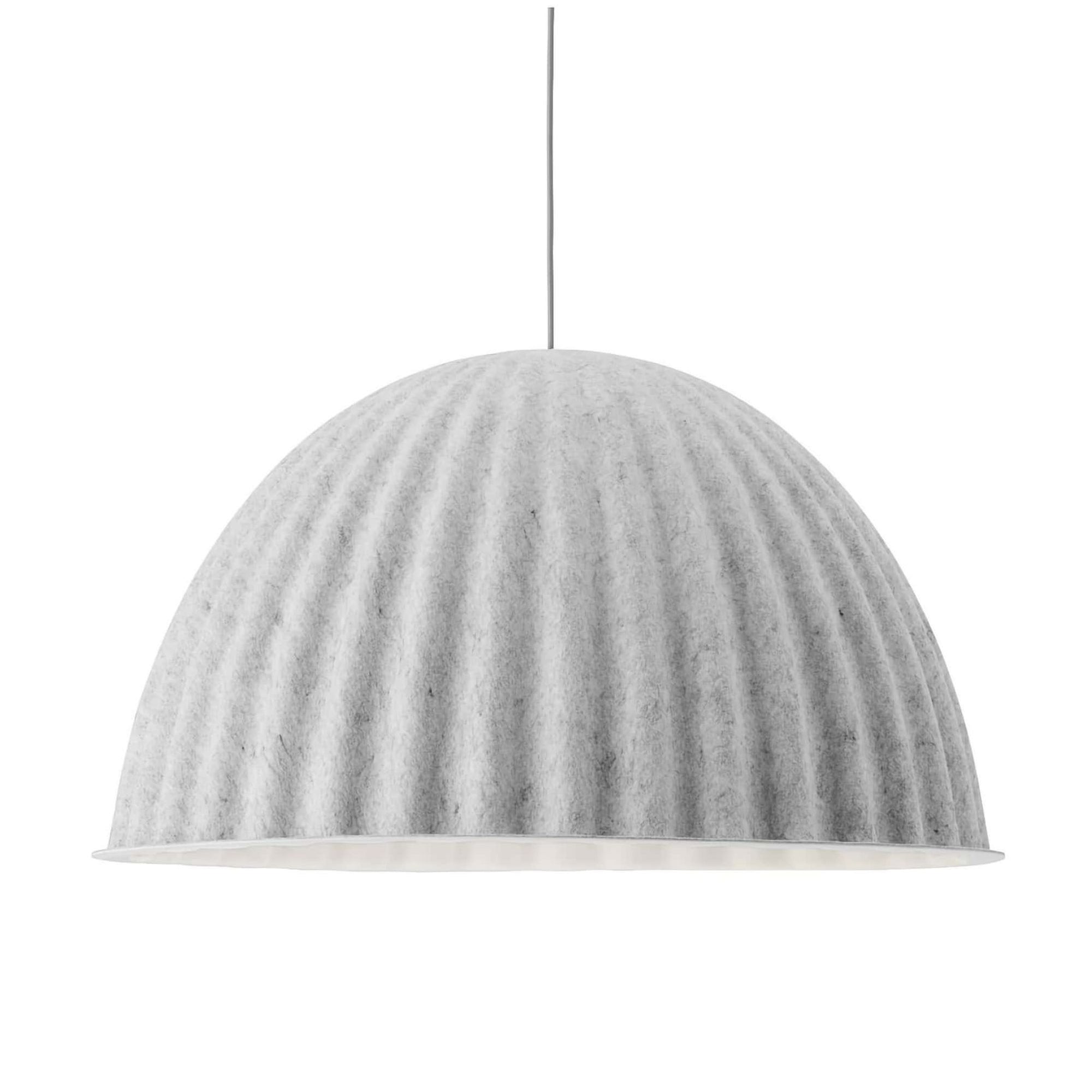Designed in a material that uses 49% fibers made from recycled plastic, the Under The Bell Pendant Lamp not only brings a tactile and modern expression to any space but also impacts the acoustics of a room through its soft shade, paired with its graphic lines and subtle color palette.