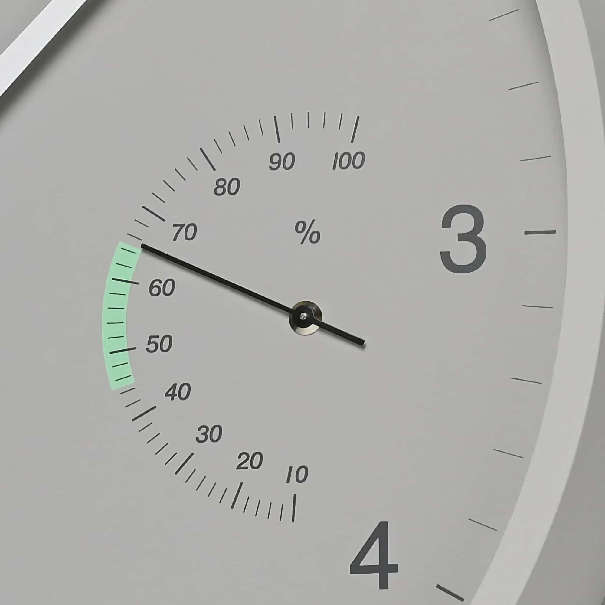 The thermo-hygrometer displays a comfortable temperature and humidity level (*1) on a scale. Use this as a guide to adjust your air conditioner or humidifier.