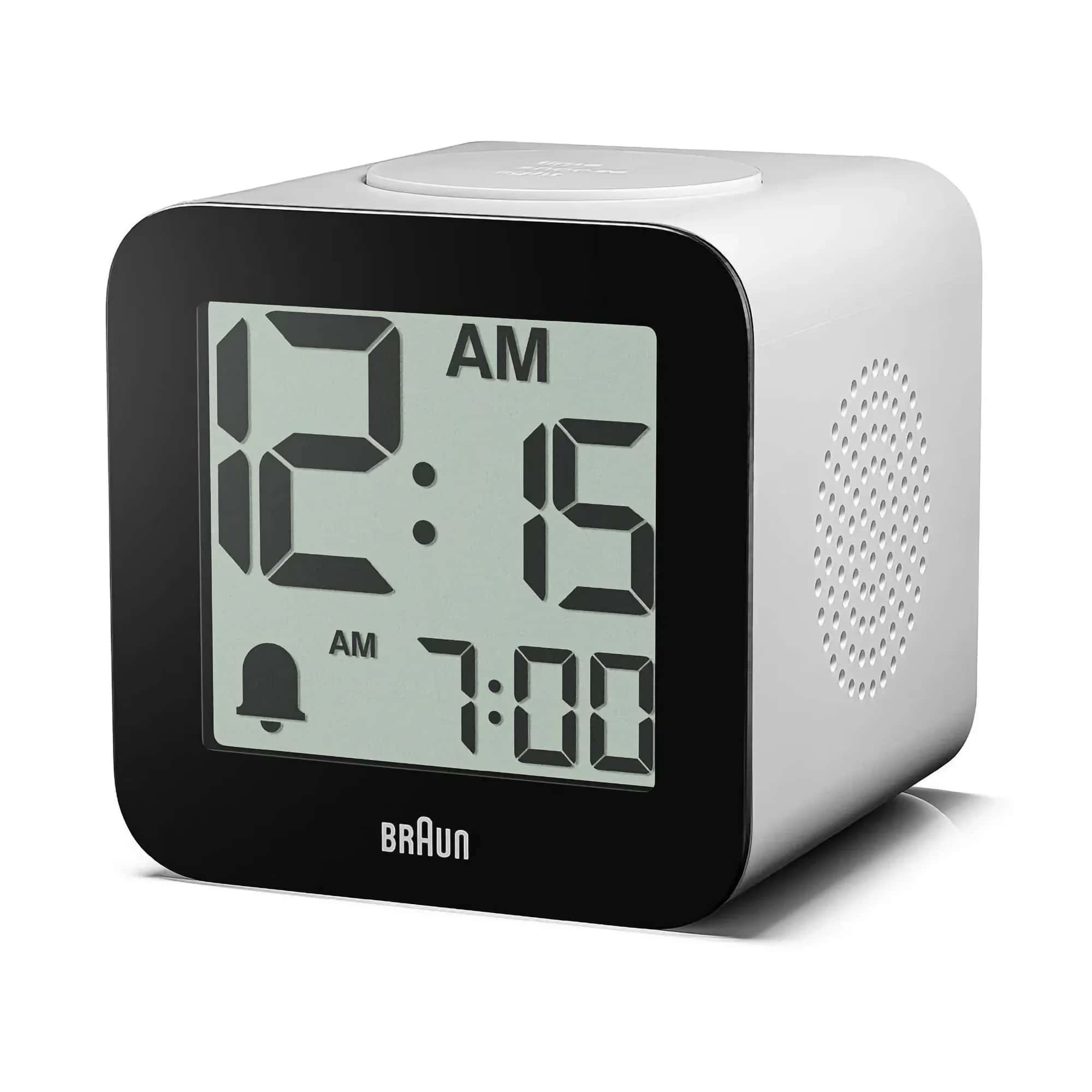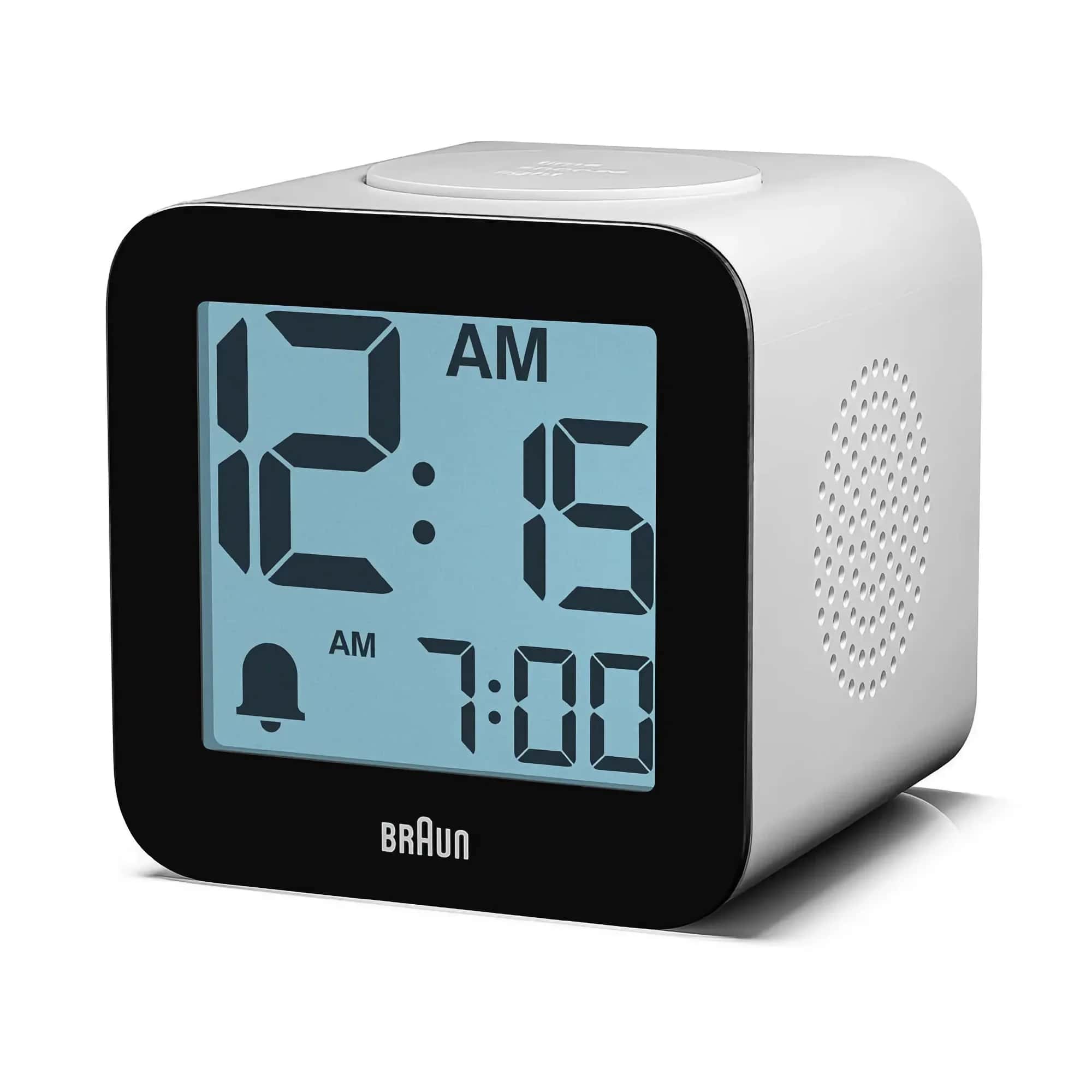 This Braun digital alarm clock features a positive LCD display with large digits and speaks the time.