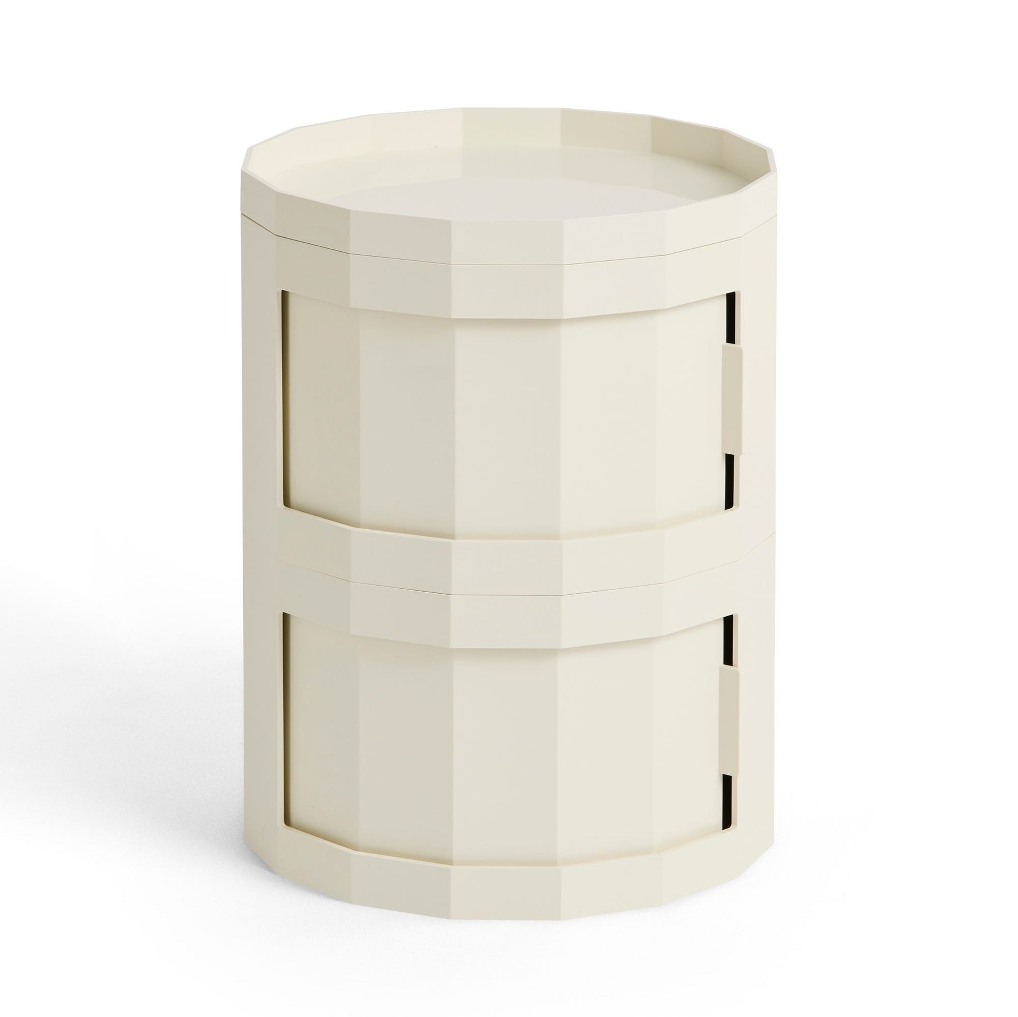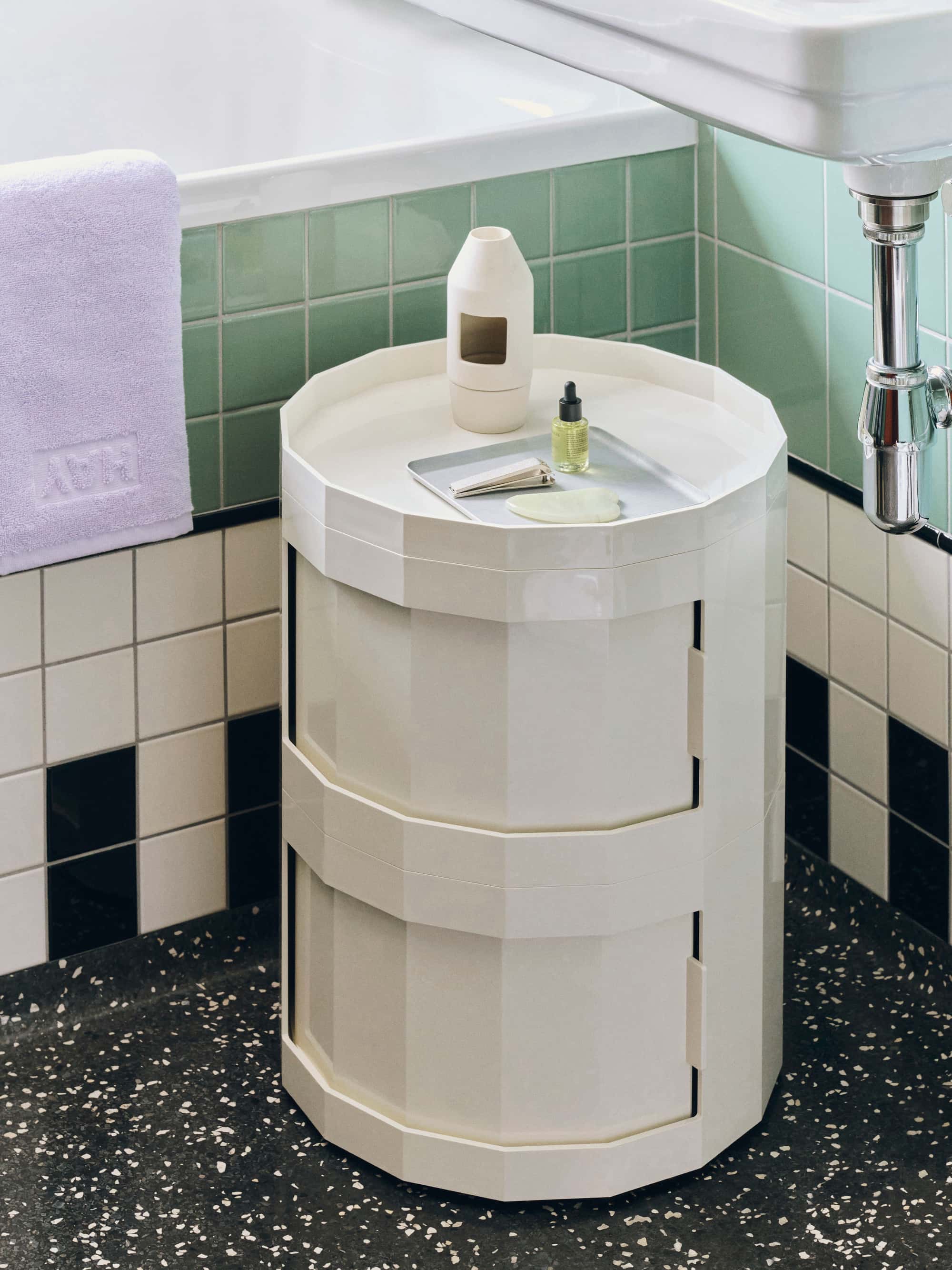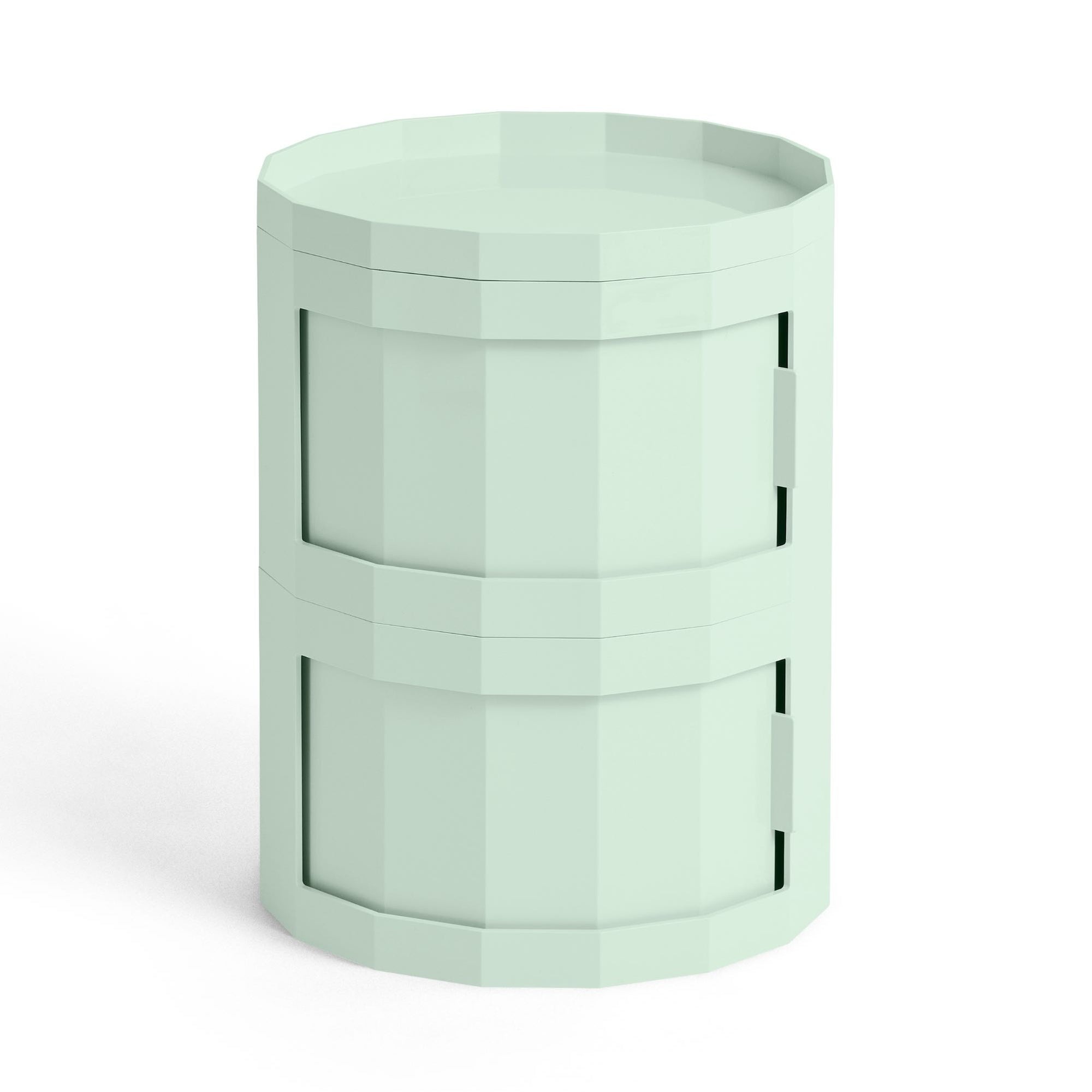 Designed for HAY by Dutch designer Stefan Scholten, the Facet Cabinet is a multifunctional storage solution that’s easy to move around. With its revolving integrated door and discreet wheels, it adapts effortlessly to a variety of settings. Made from at least 30% post-consumer recycled ABS, Facet comes in a range of models, colours, and heights. Ideal for organising and tidying everyday items, its versatile design works equally well as a bedside cabinet, side table, or home office organiser.