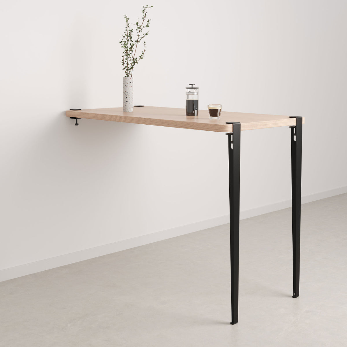 The Tiptoe Bar Table Leg stands at a height of 110 cm, offering a comfortable standing or seated experience, particularly when paired with bar stools. The sleek, minimalist design not only complements any décor but also introduces a modern, sophisticated touch to interiors. Its easy installation process allows you to transform any tabletop into a functional and stylish bar table, making it a versatile addition to your furniture collection.