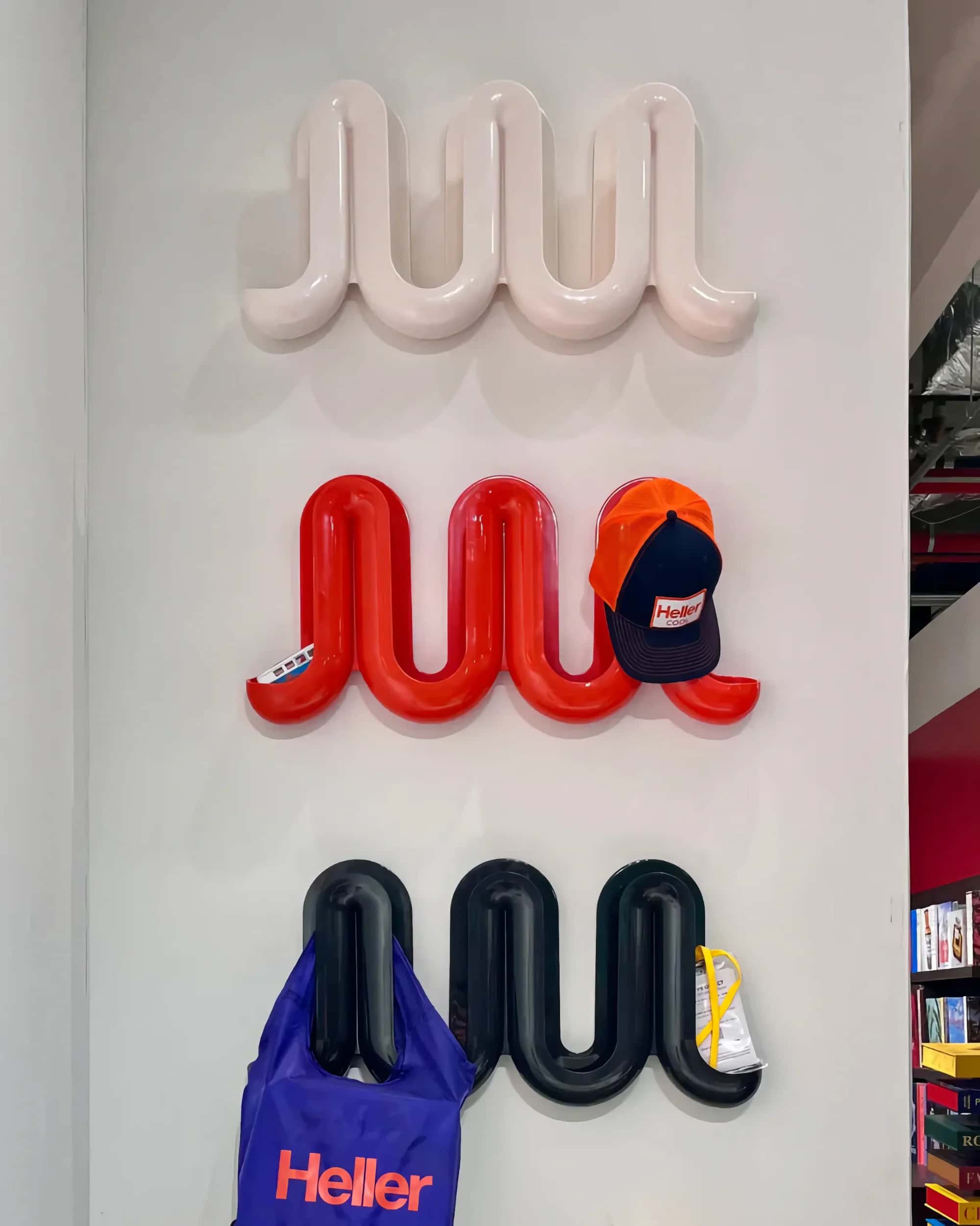 Streamline your entryway or living space with the Swell Wall Catchall & Coat Rack from Heller. This versatile piece functions as a coat rack and a catchall tray, keeping your essentials organized and easily accessible. With a sleek design inspired by undulating ocean waves, it adds a touch of modern elegance to any room, while its 100% recycled plastic construction is equal parts durable and sustainable. Perfect for small homes and apartments, stay prepared and organized with this playfully chic storage design.