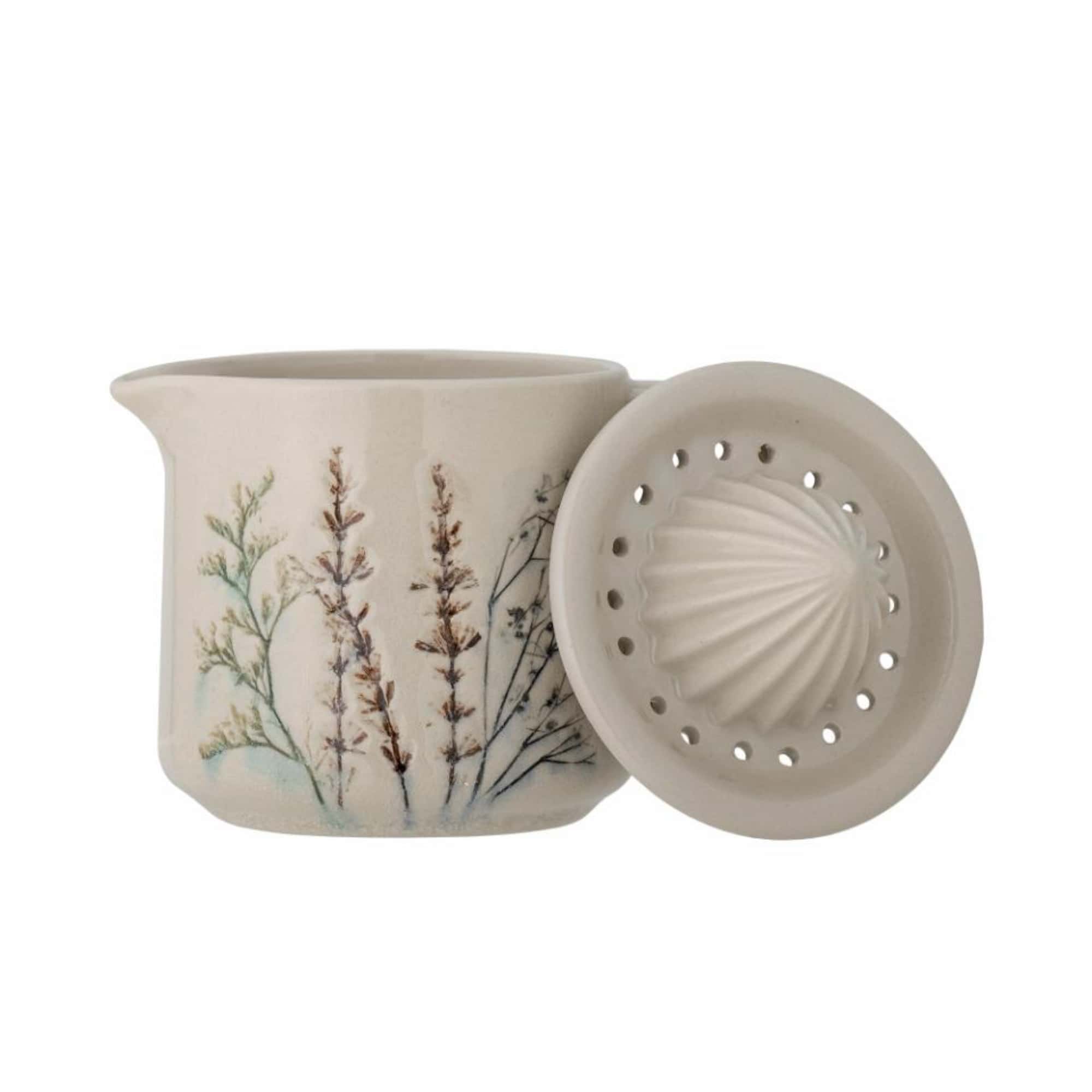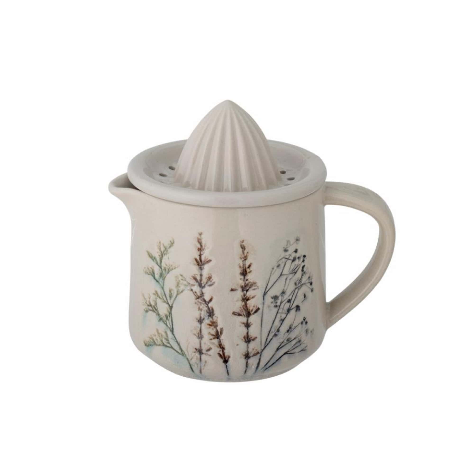 The Bea Lemon Juicer from Bloomingville is a beautiful stoneware lemon juicer in natural colors, with a delicate, hand-decorated floral motif printed on the glaze. The hand-painted details makes each Lemon Juicer unique. It is dishwasher safe.