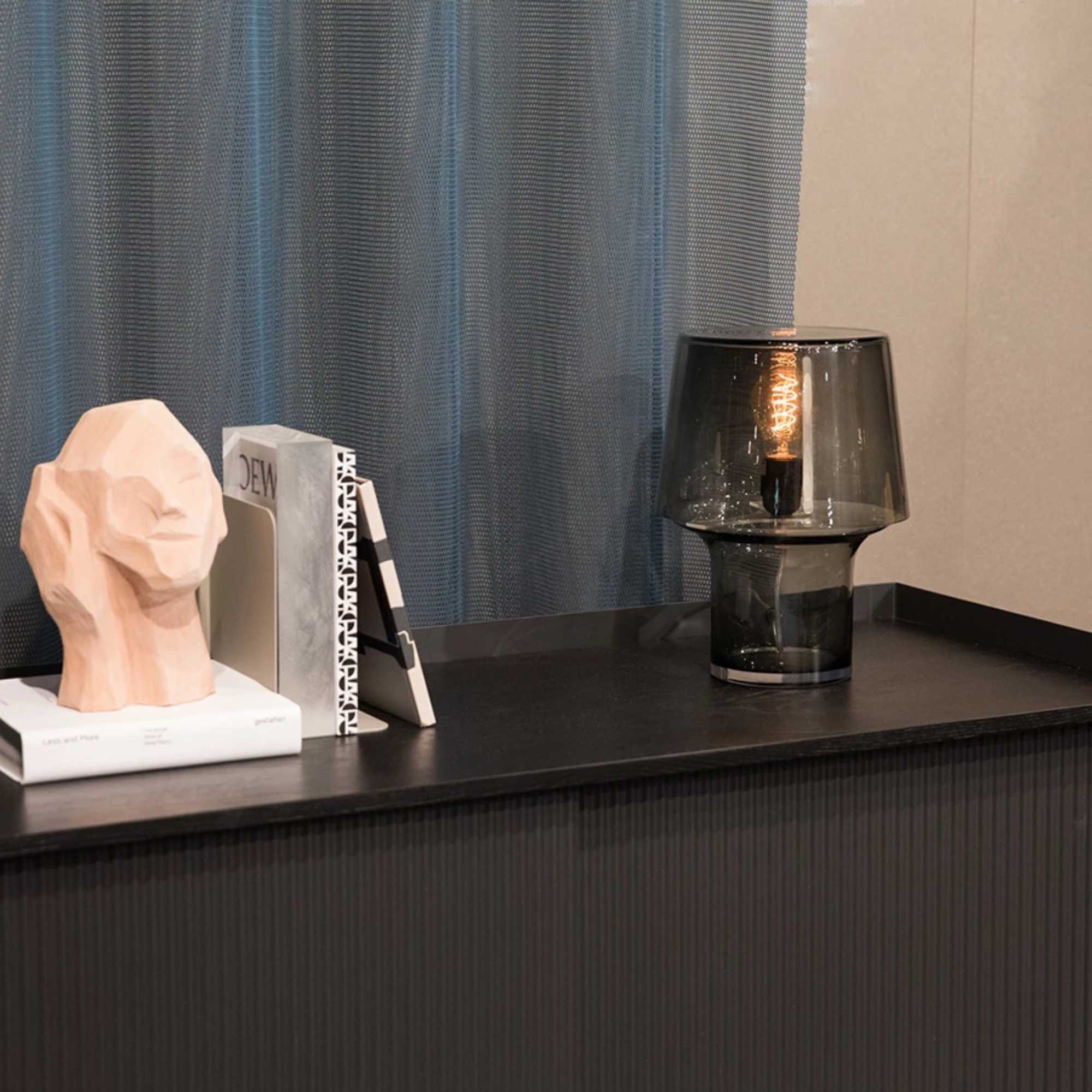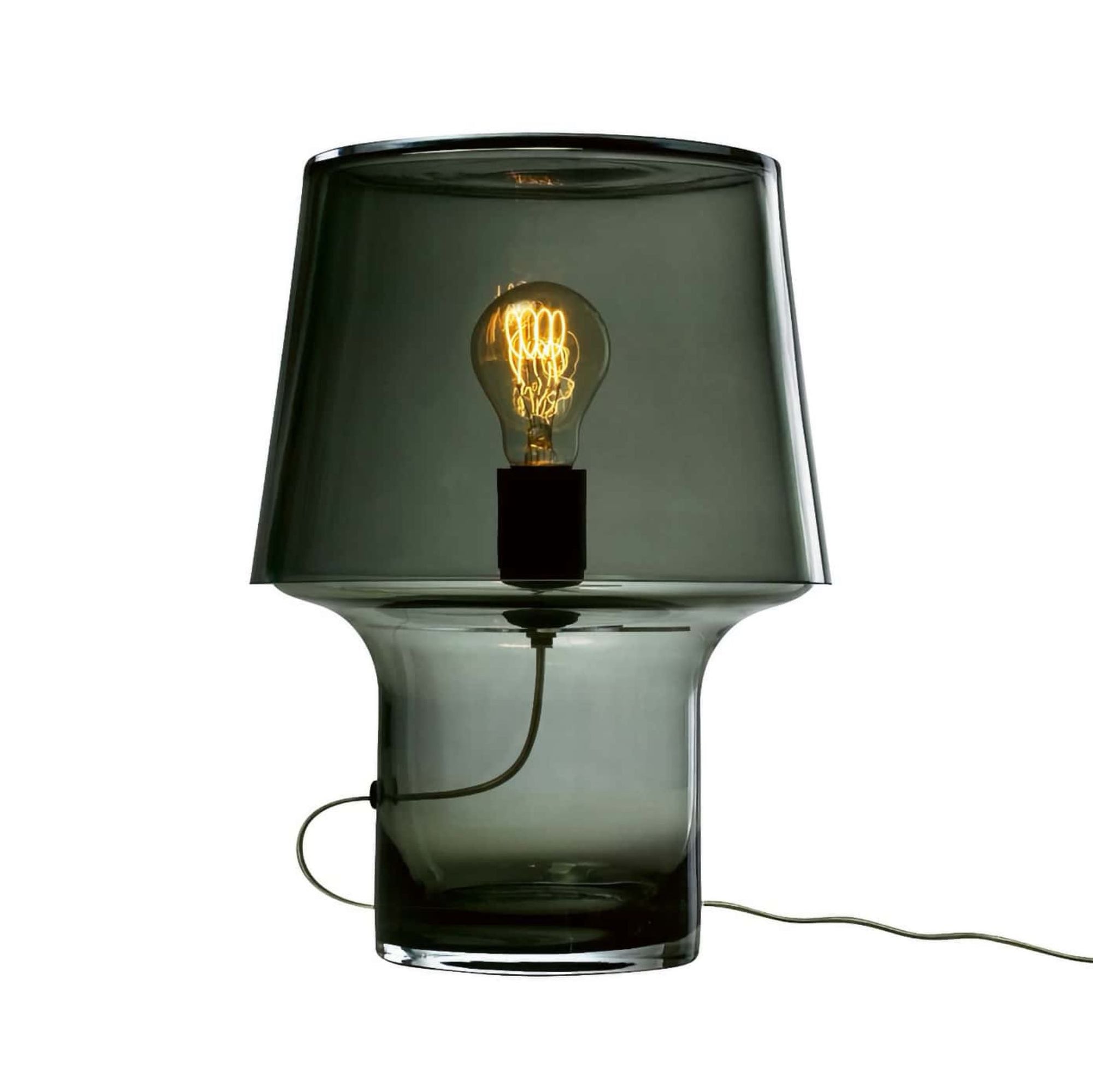 With its modern shape in mouth-blown glass, the Cosy In Grey Table Lamp provides gentle lighting through its dimmable naked bulb, encased in smoked grey glass. Place the Cosy In Grey Table Lamp in any space for a new perspective on ambient lighting.
