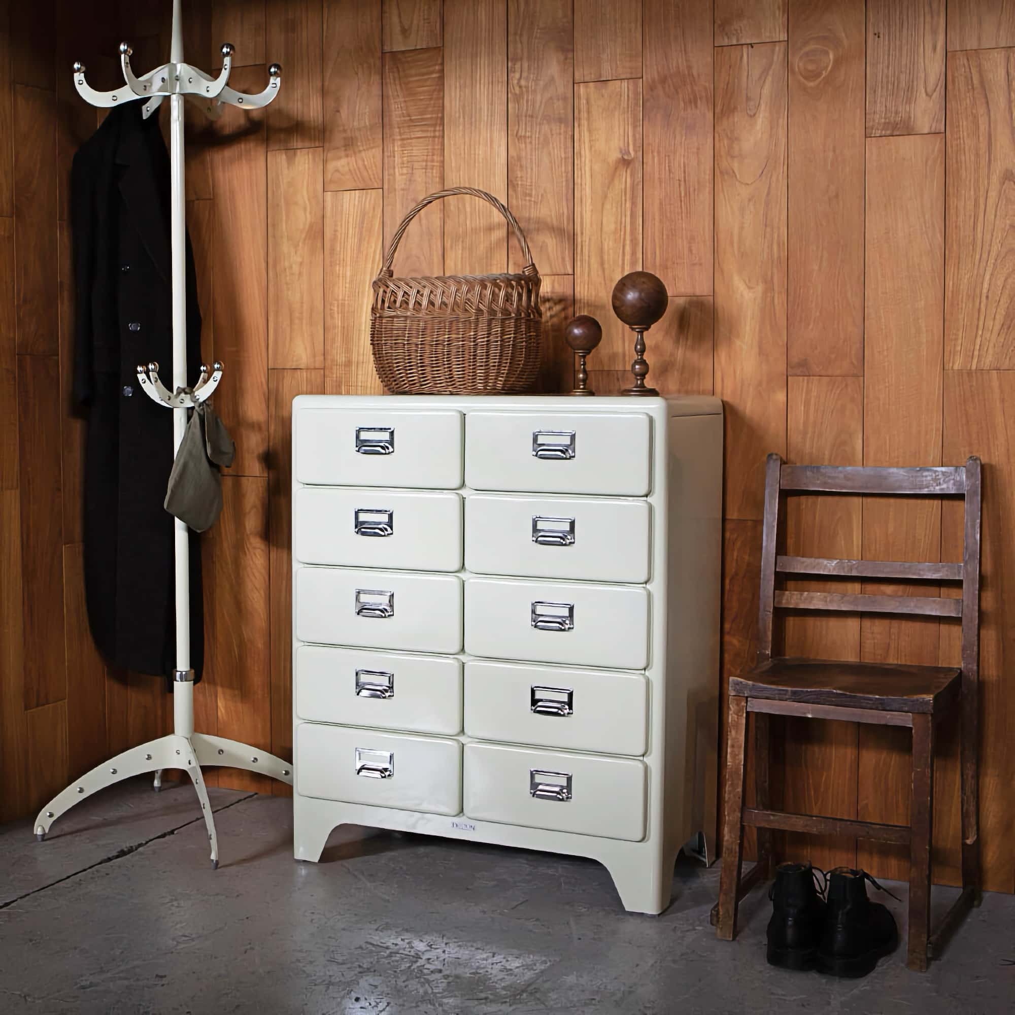 This Yasu Sasamoto designed furniture is not only functional but also| a centre point feature for the home and office. Its unique retro industrial design is hand-made from sturdy powder-coated steel.