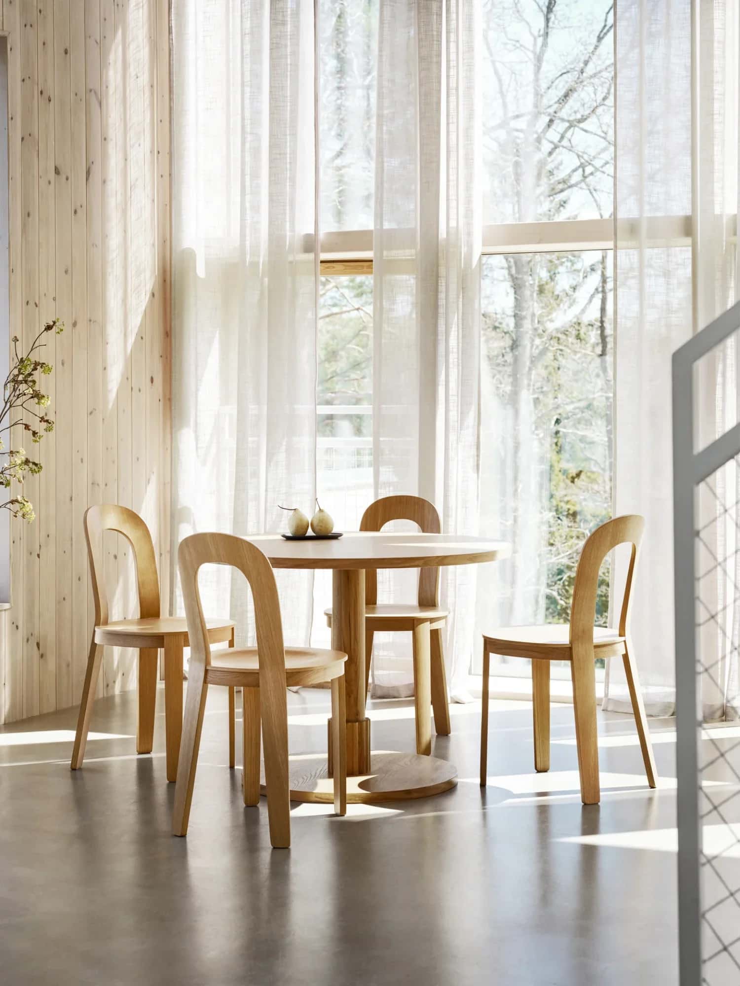 Olivia Chair explores how to balance lightness, sturdiness, and comfort: slender in appearance and comfortable to sit on.
