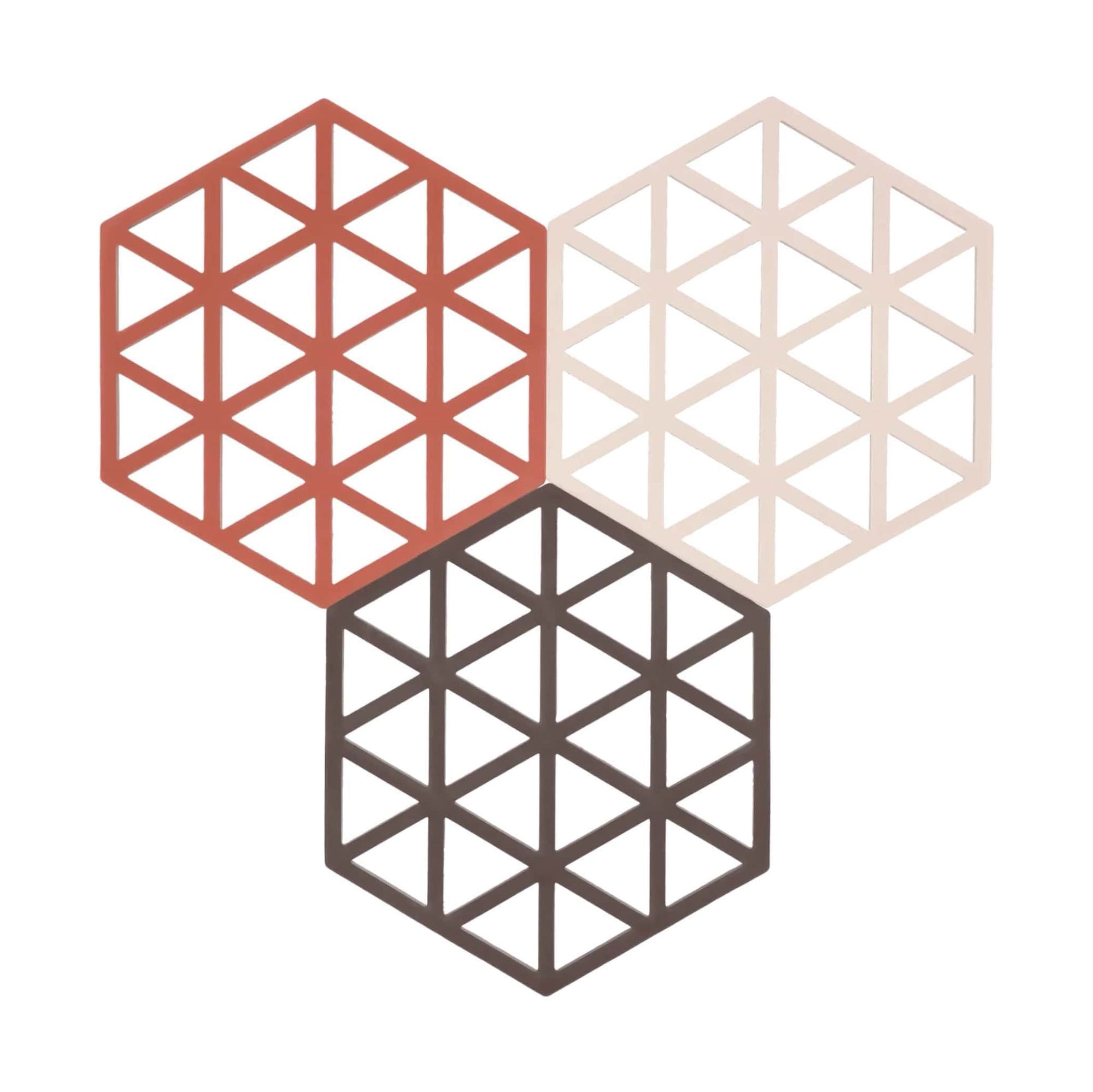 Triangles trivets made from silicone are so graphically decorative that they invite you to spread an entire set along the length of the table, even without placing anything on them. Heat resistant up to 250 °C, they are also dishwasher safe.